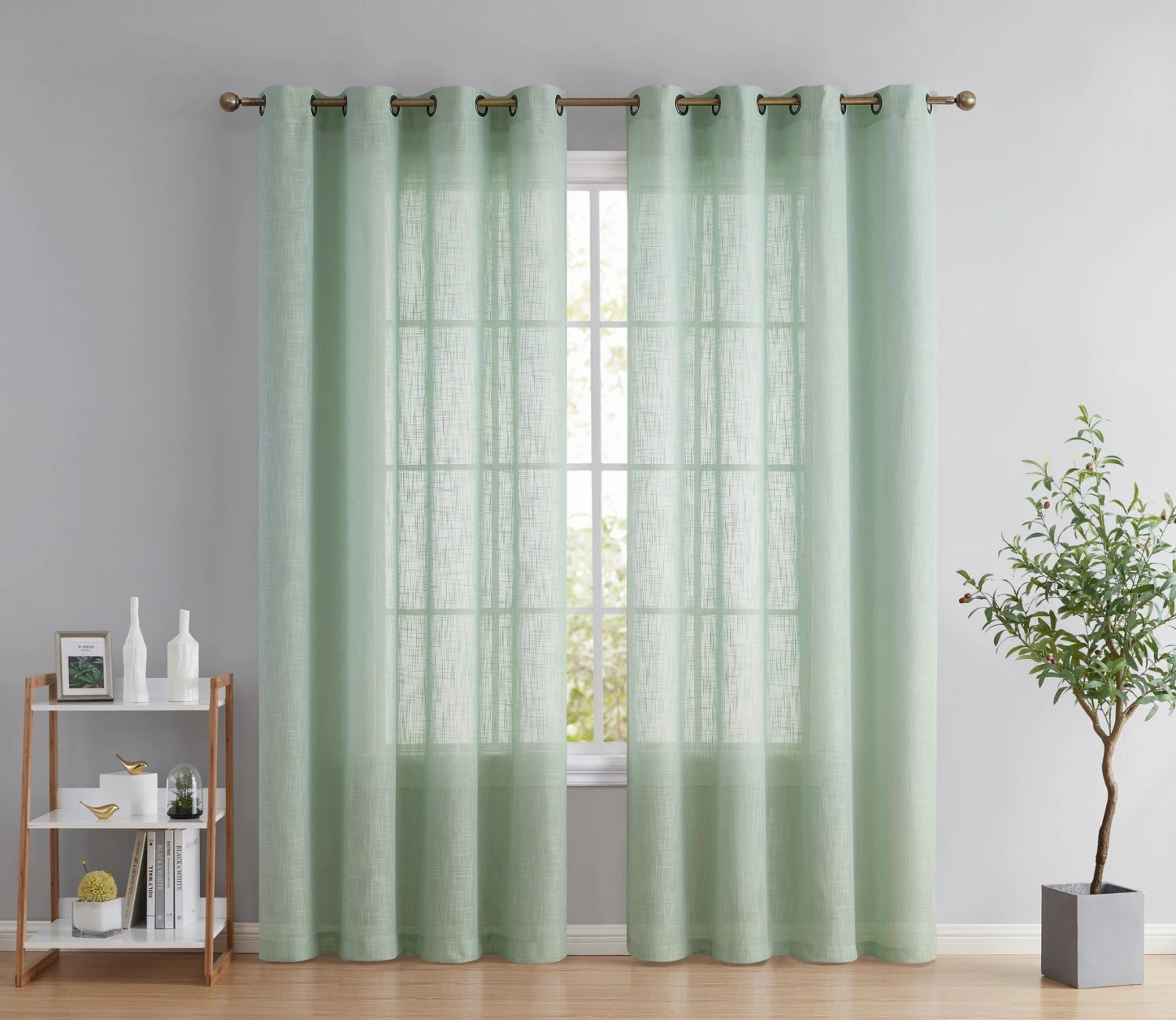HLC.ME Abbey Faux Linen Grommet Curtain Panels – Seafoam Green – Set Of 2