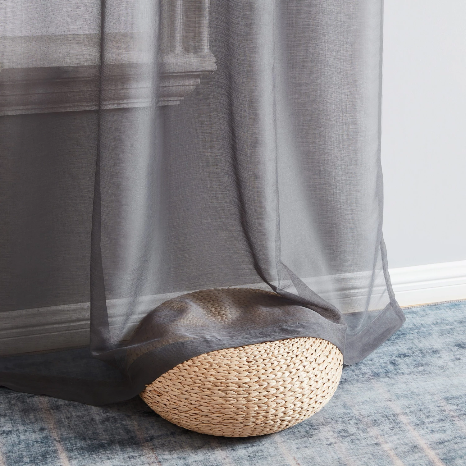 HLC.ME Addison Sheer Tab Top Panels – Charcoal Grey – Set Of 2 Sheer Curtains