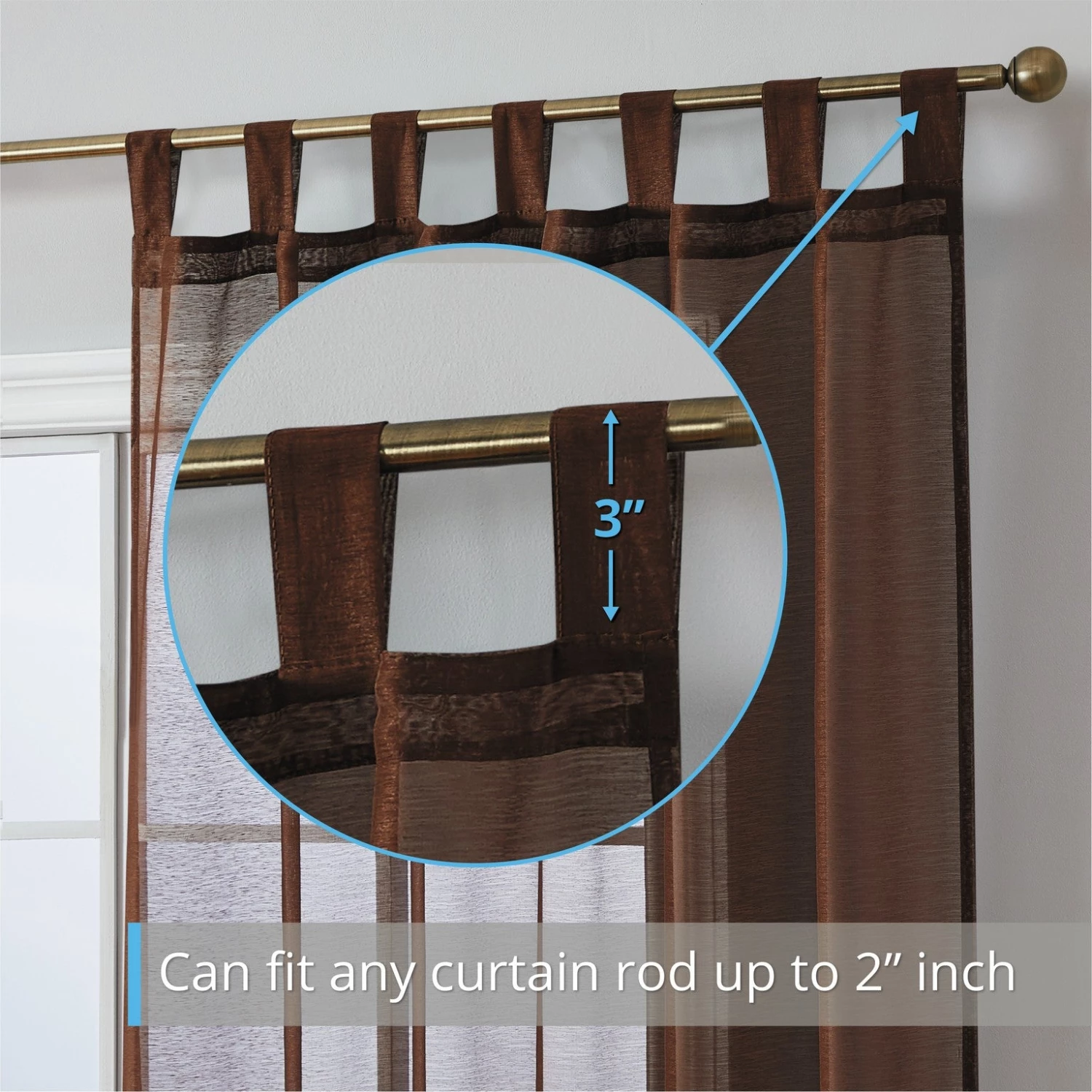 HLC.ME Addison Sheer Tab Top Panels – Chocolate Brown – Set Of 2