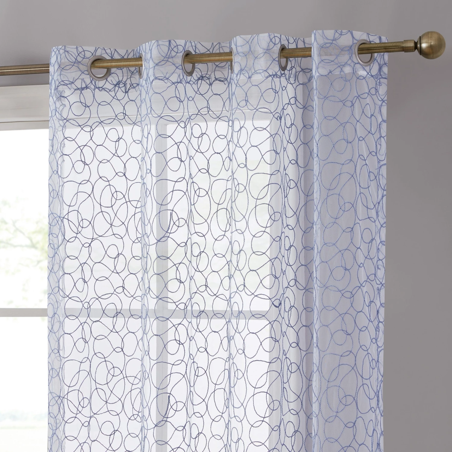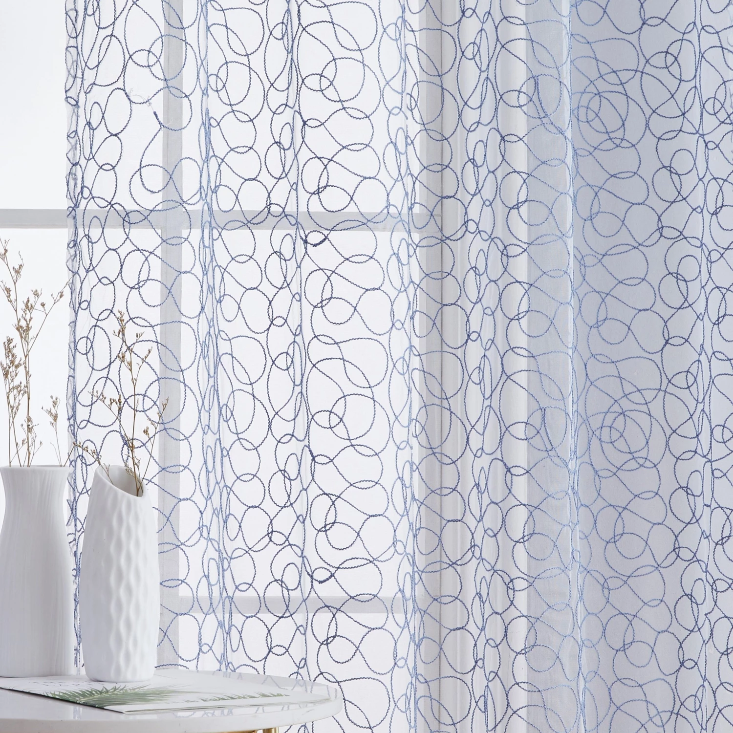 HLC.ME Audrey Embroidered Grommet Curtain Panels – Dusty Blue – Set Of 2 Faux Linen Curtains
