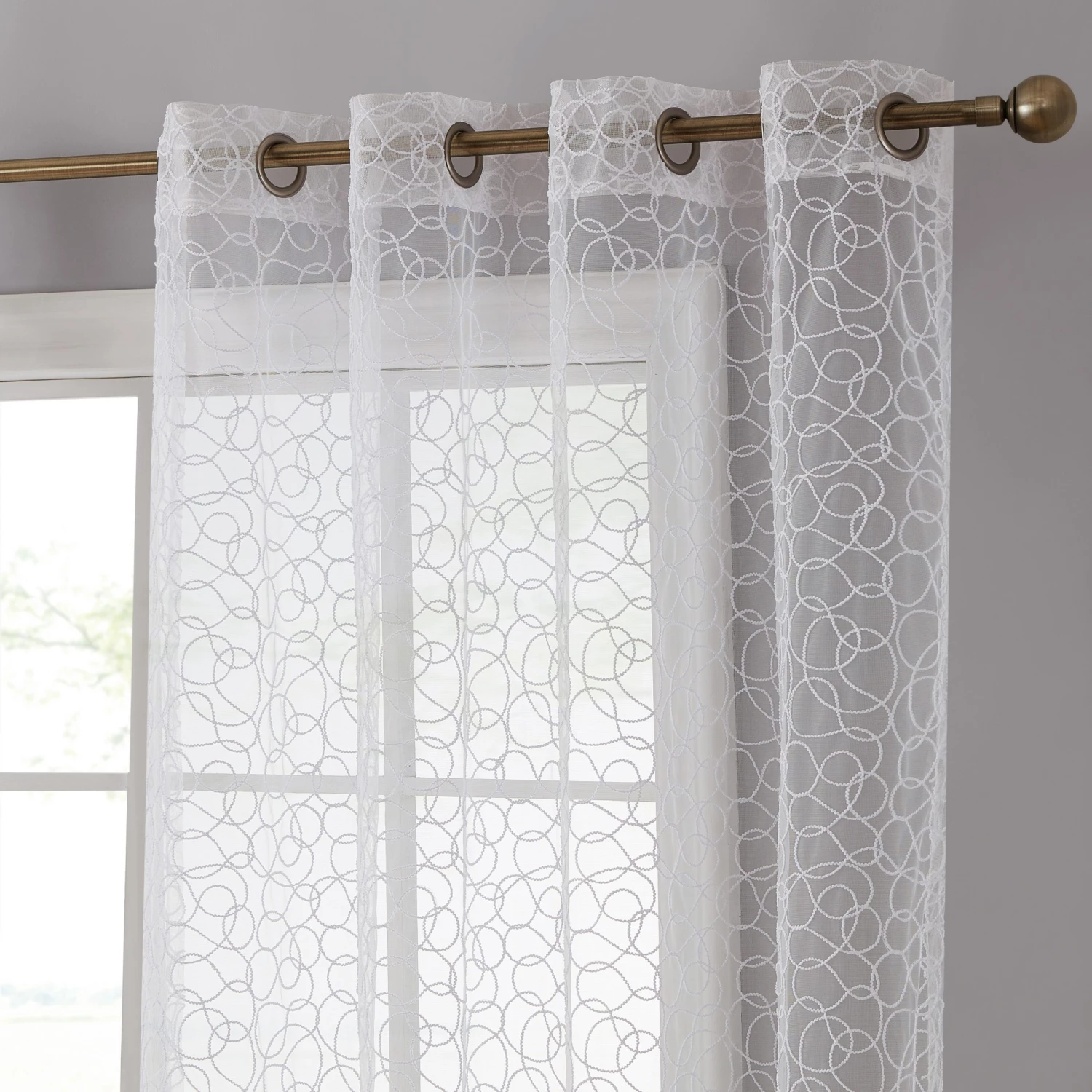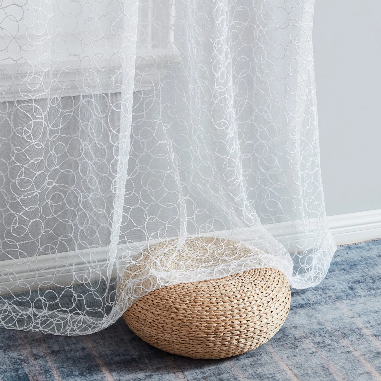 HLC.ME Audrey Embroidered Grommet Curtain Panels – White – Set Of 2 Faux Linen Curtains