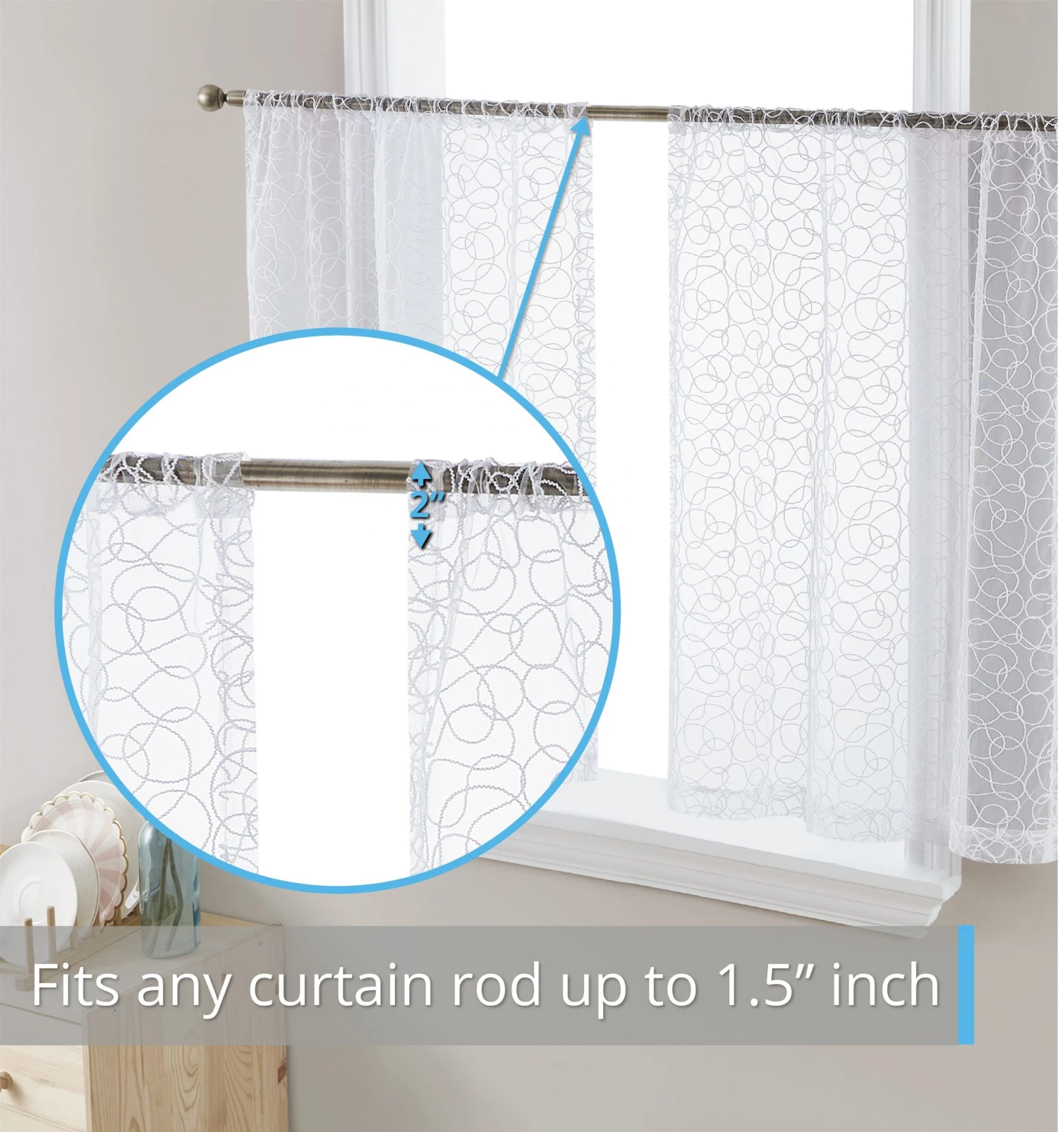 HLC.ME Audrey Embroidered Grommet Curtain Tiers – White – Set Of 2 Faux Linen Curtains