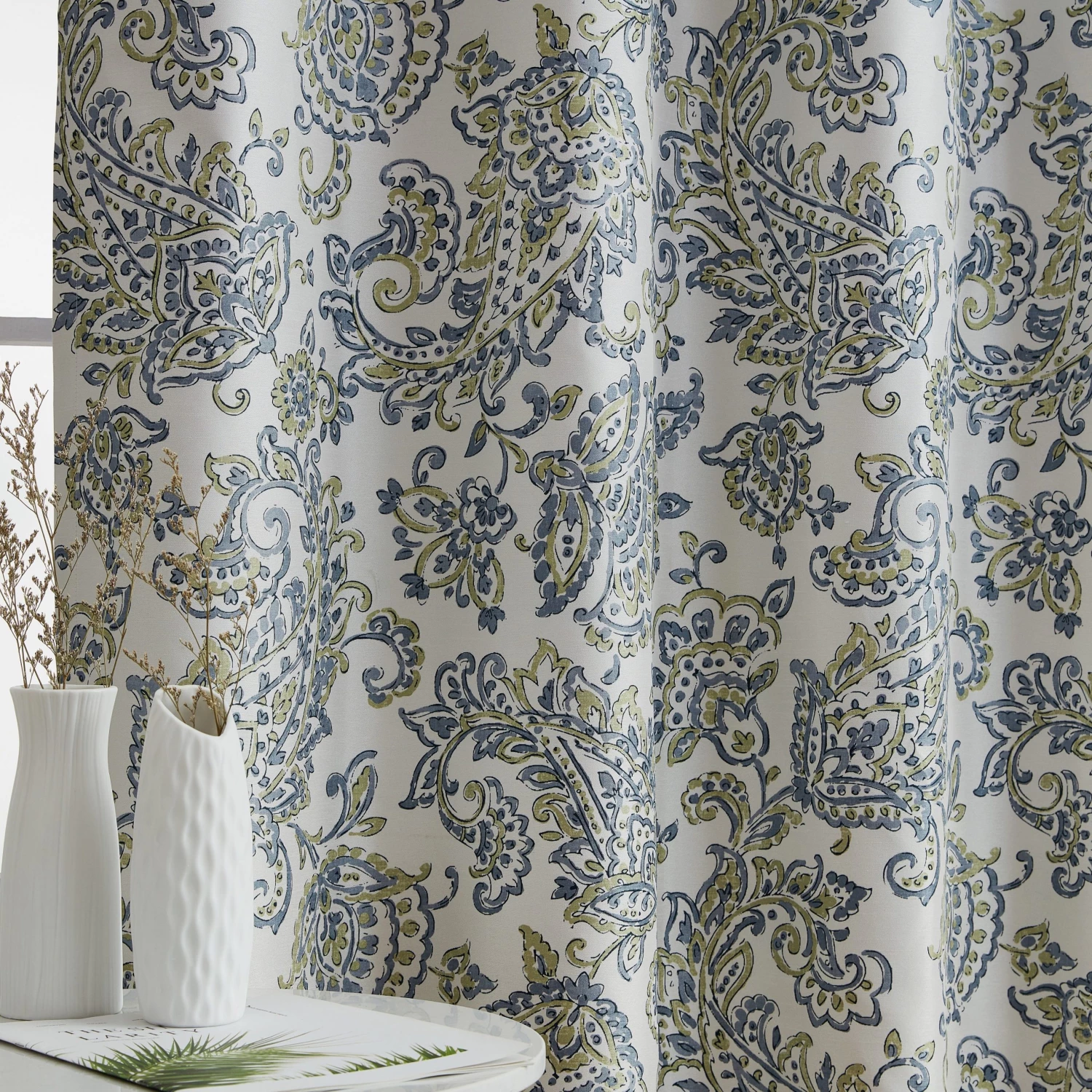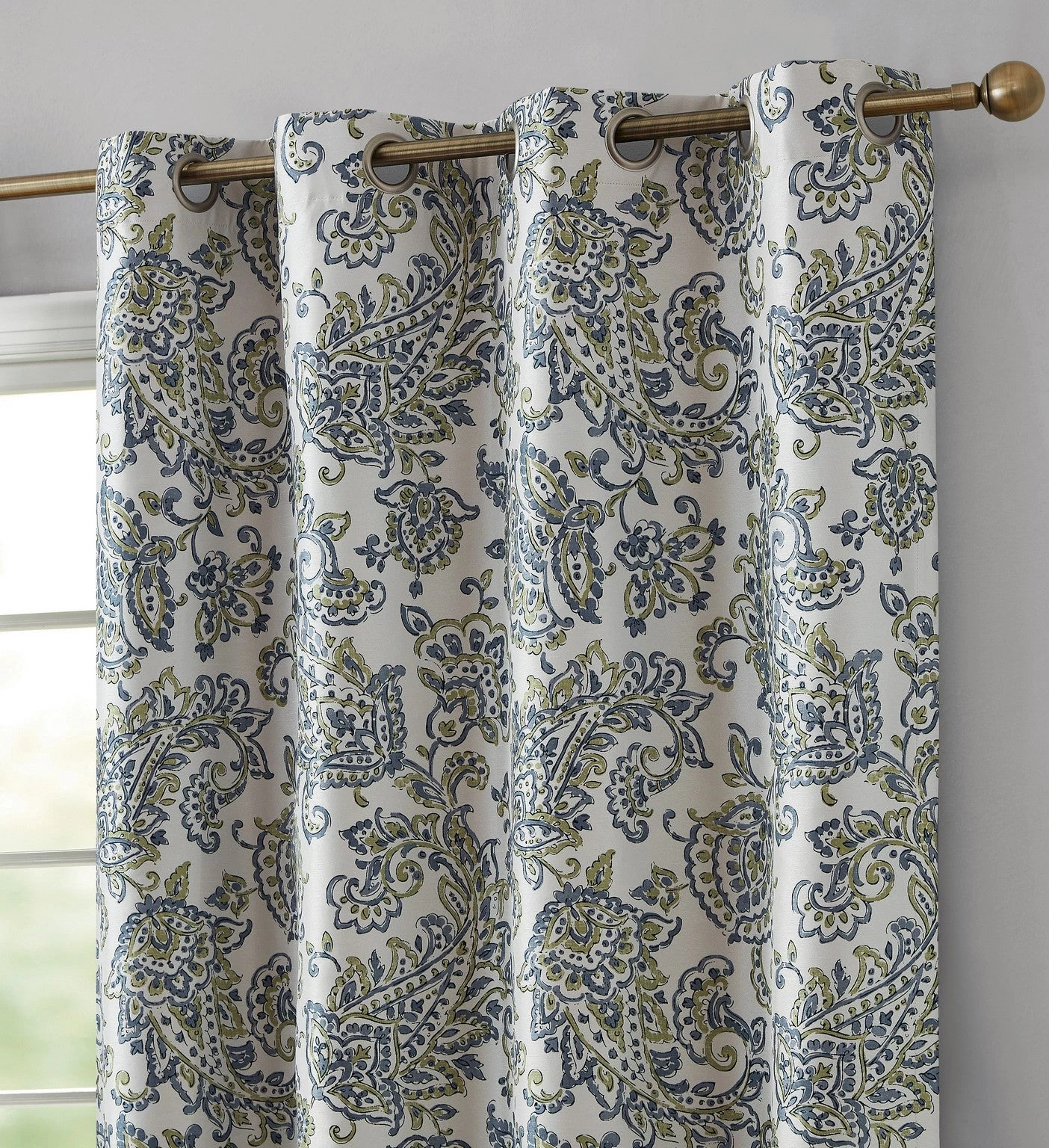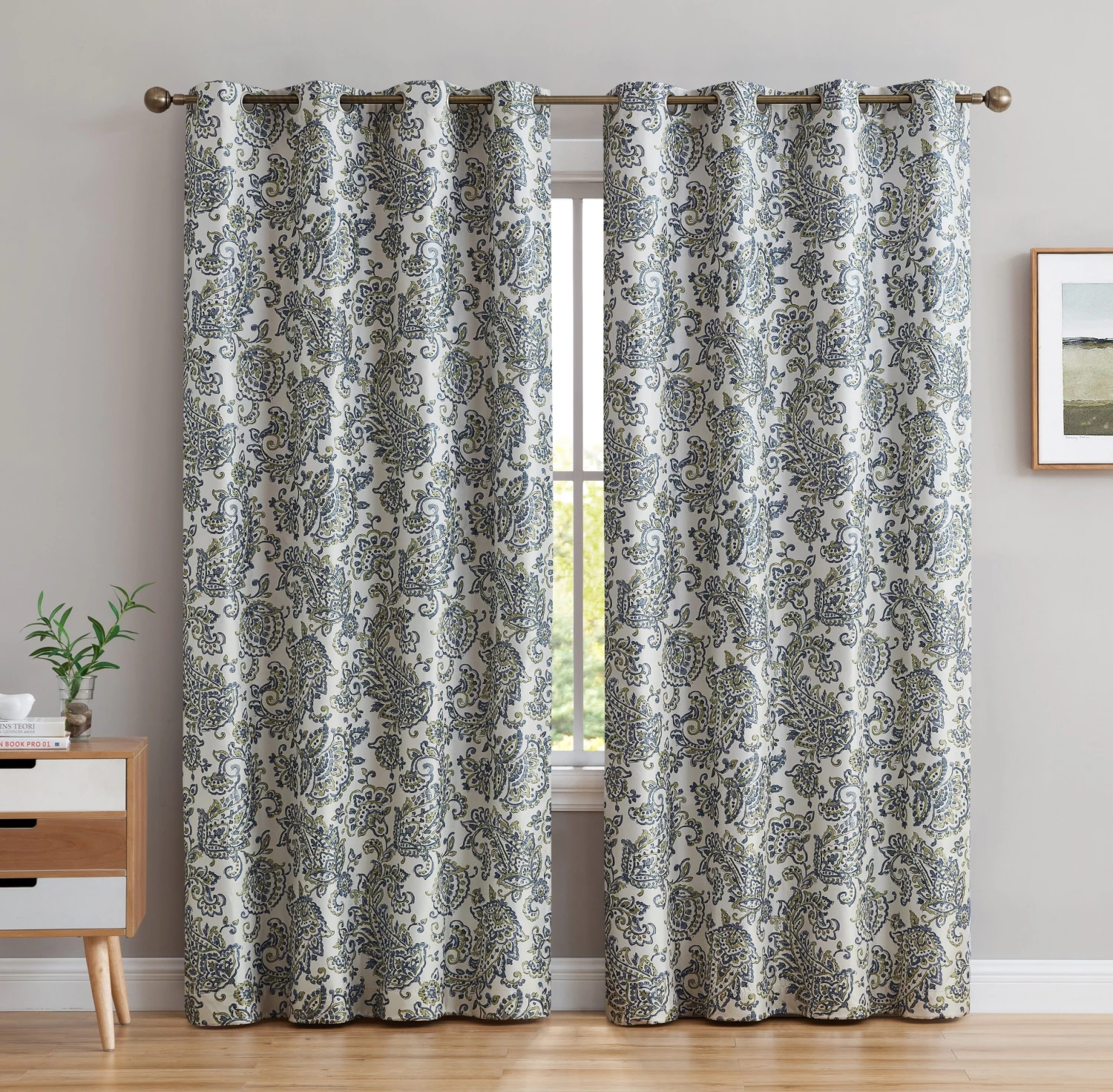 HLC.ME Blackout Curtains Amalfi Paisley 100% Blackout Grommet Curtain Panels – Grey/Yellow – Set Of 2