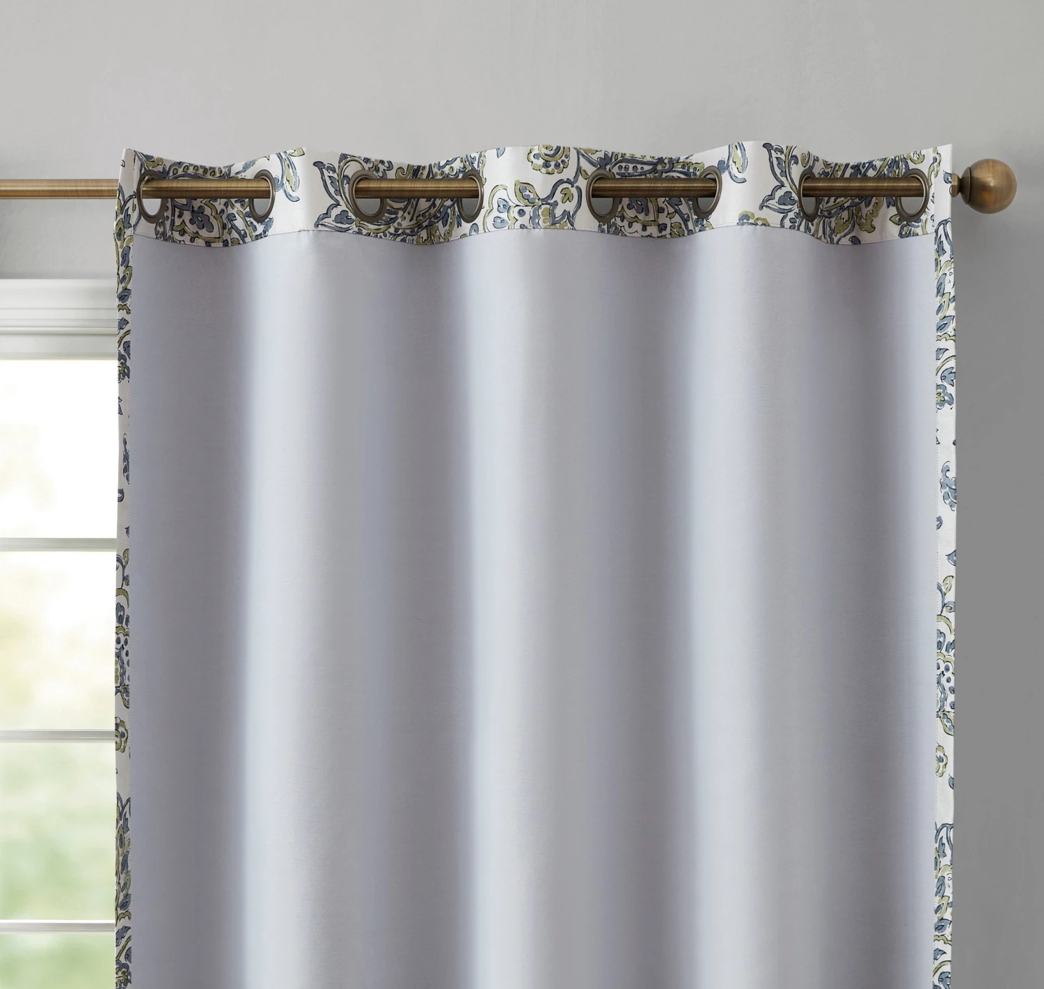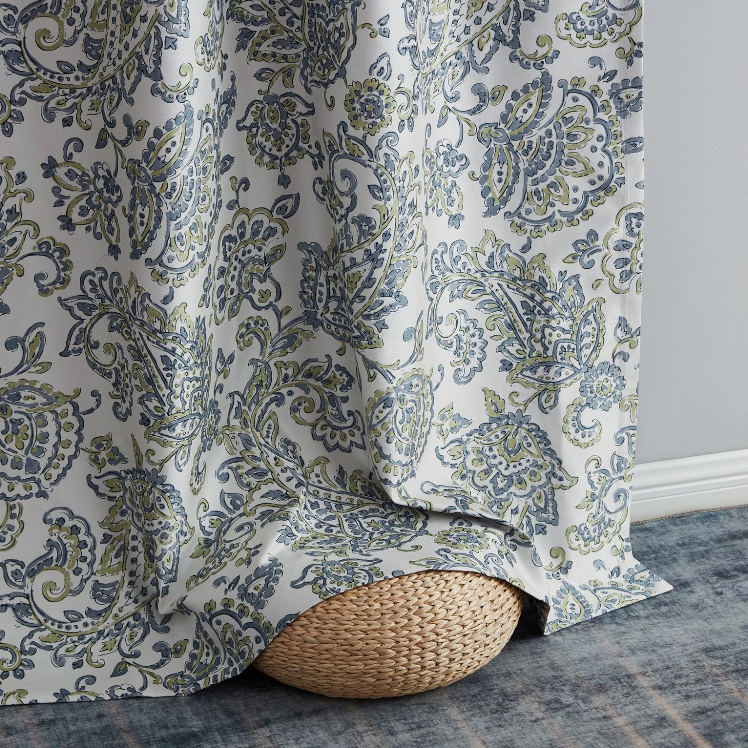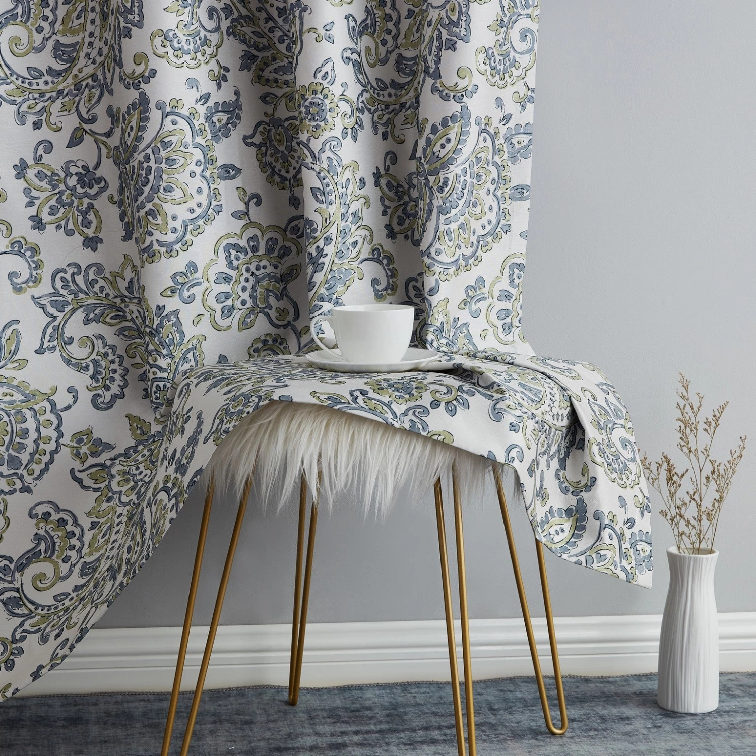 HLC.ME Blackout Curtains Amalfi Paisley 100% Blackout Grommet Curtain Panels – Grey/Yellow – Set Of 2