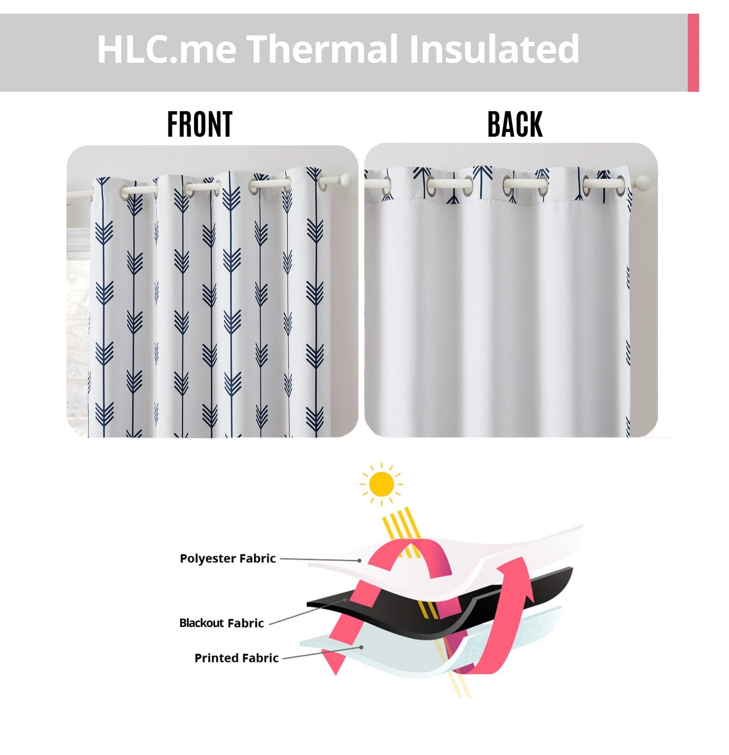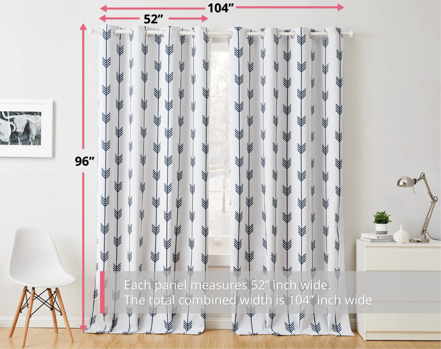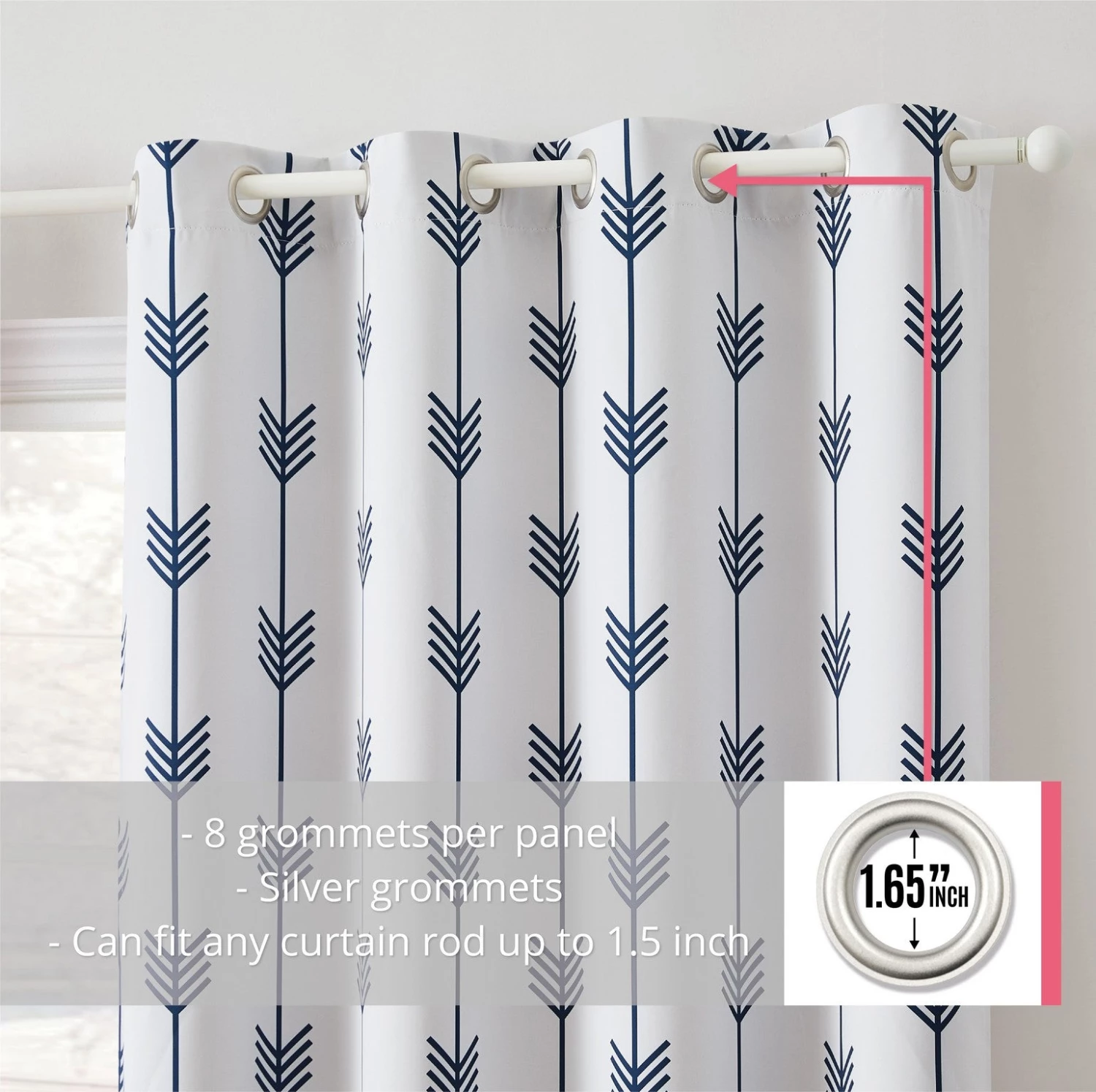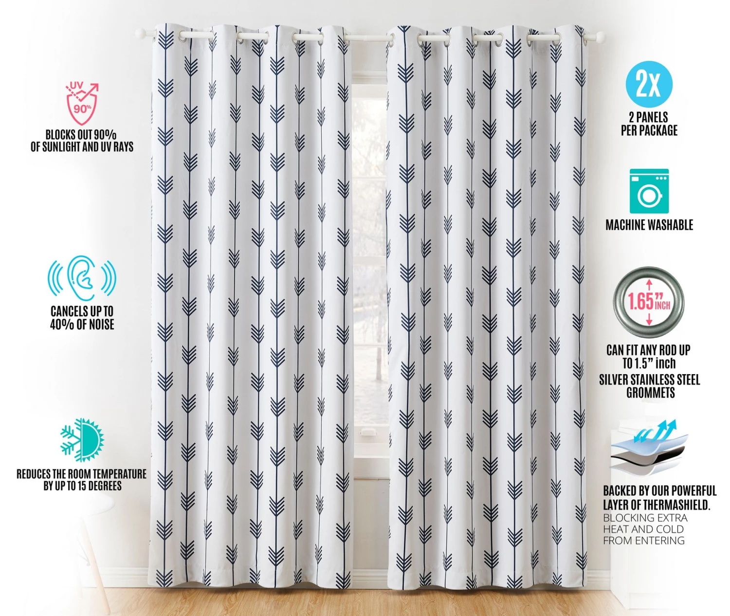 HLC.ME Blackout Curtains Arrow Print Blackout Grommet Curtain Panels – Platinum White/Navy Blue – Set Of 2