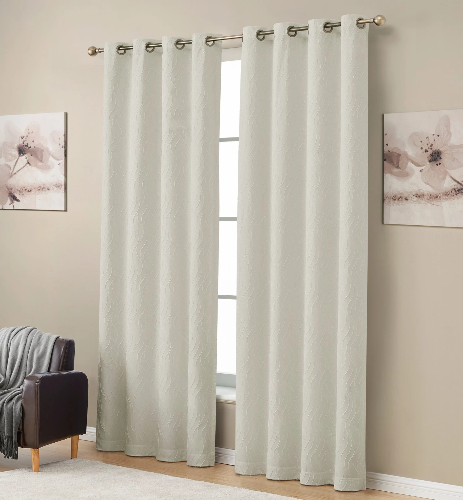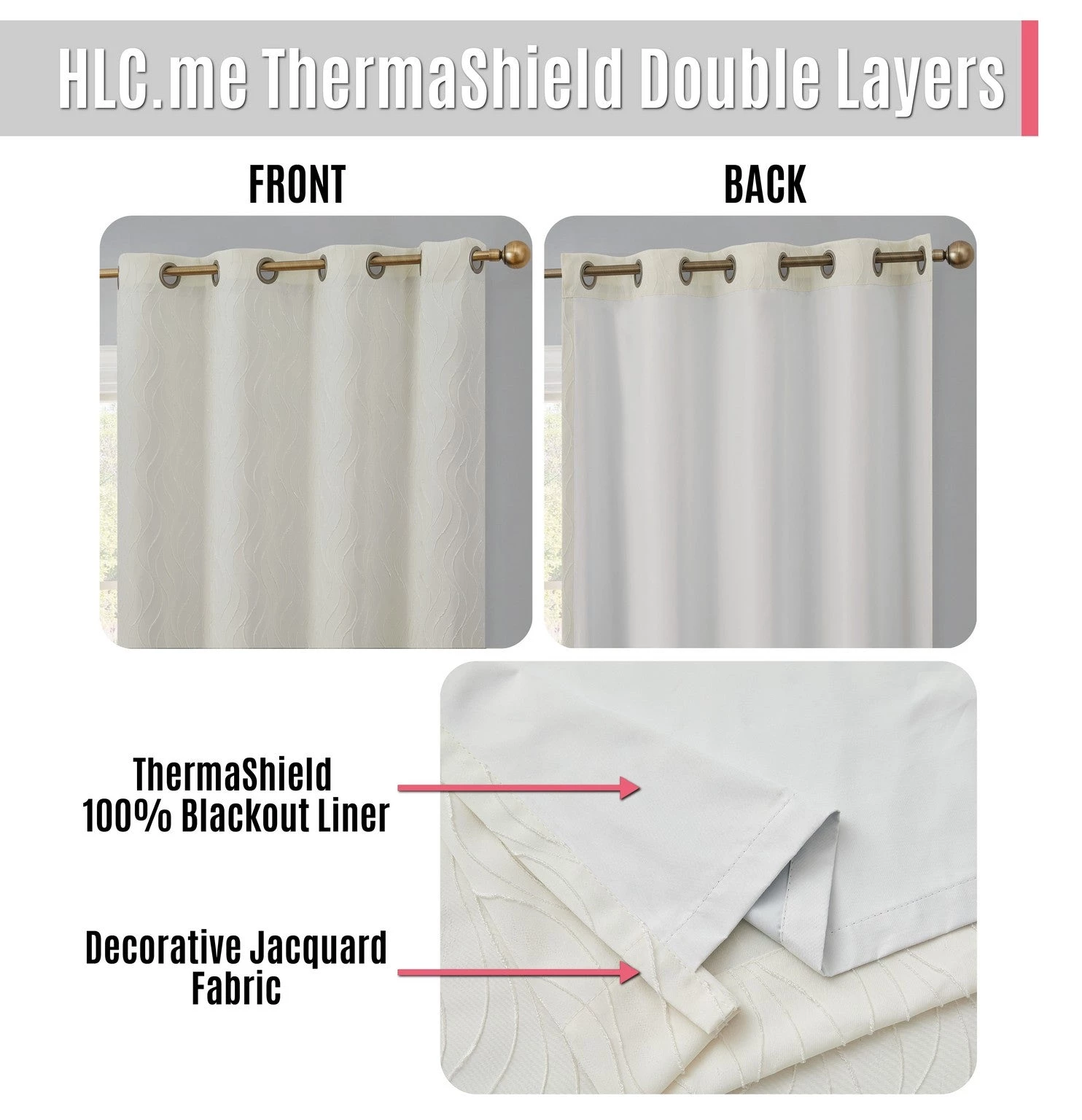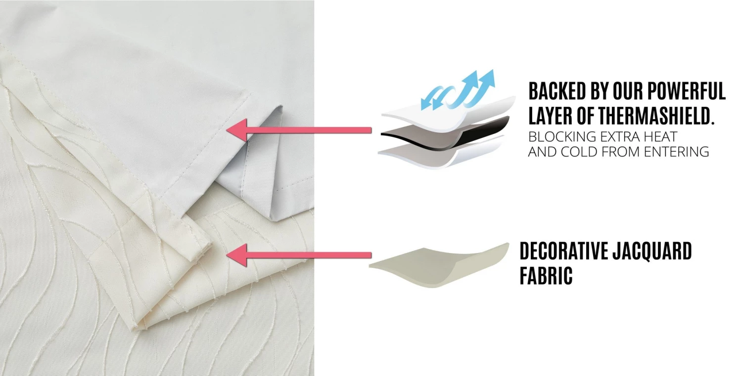 HLC.ME Blackout Curtains Camden Jacquard 100% Blackout Grommet Curtain Panels – Ivory – Set Of 2