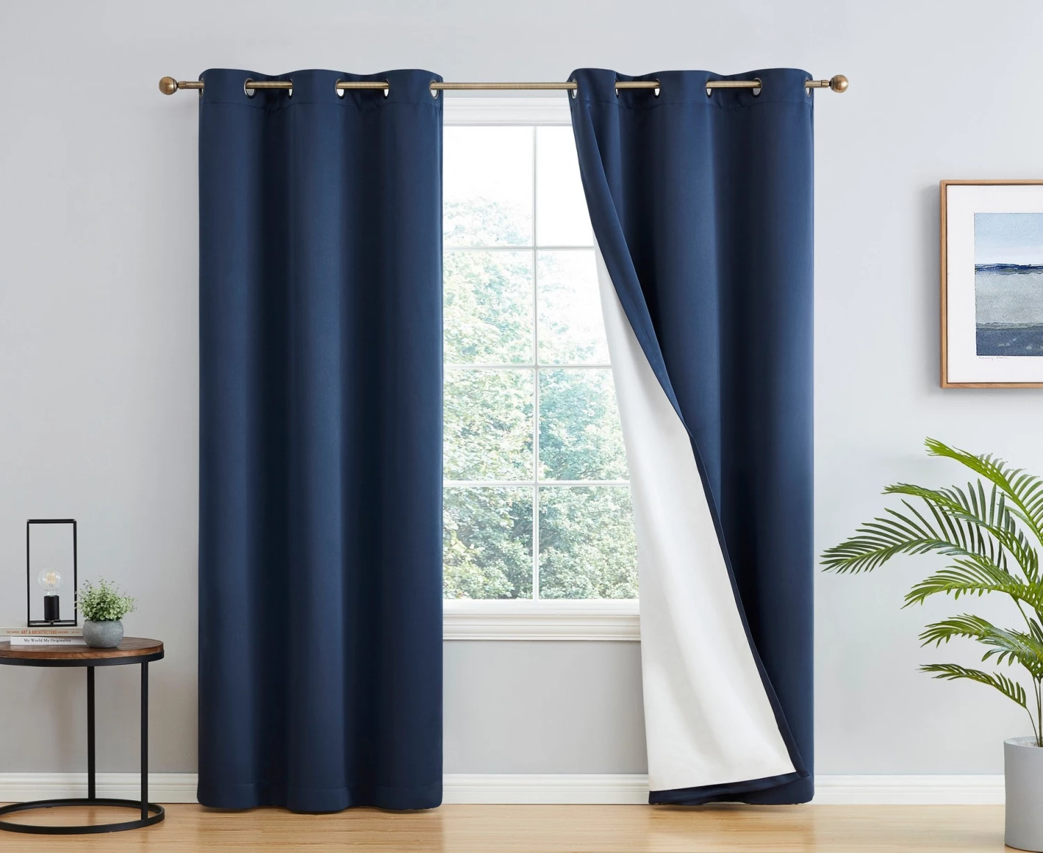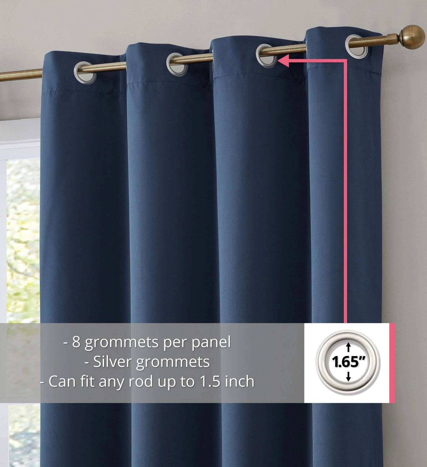 HLC.ME Blackout Curtains Dakota 100% Blackout Grommet Curtain Panels – Navy Blue – Set Of 2