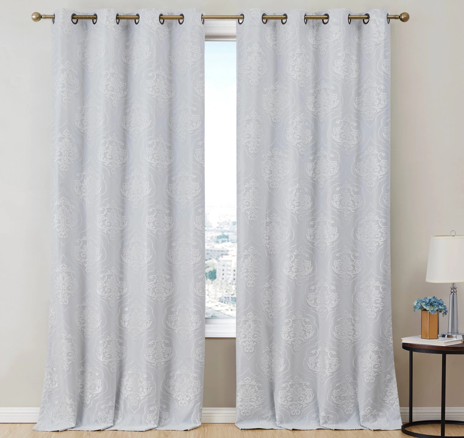 HLC.ME Blackout Curtains Damask Flocked 100% Blackout Grommet Curtain Panels – Ivory – Set Of 2
