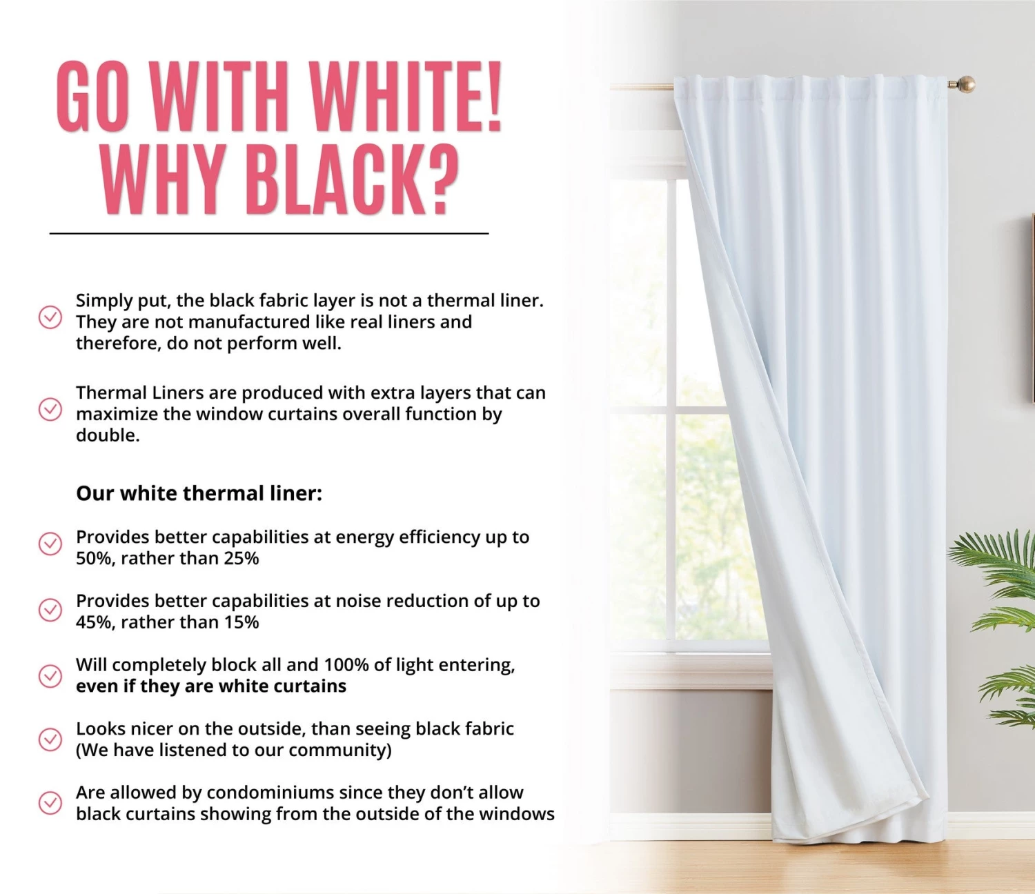 HLC.ME Blackout Curtains Hamilton 100% Blackout Curtain Panels – White – Set Of 2