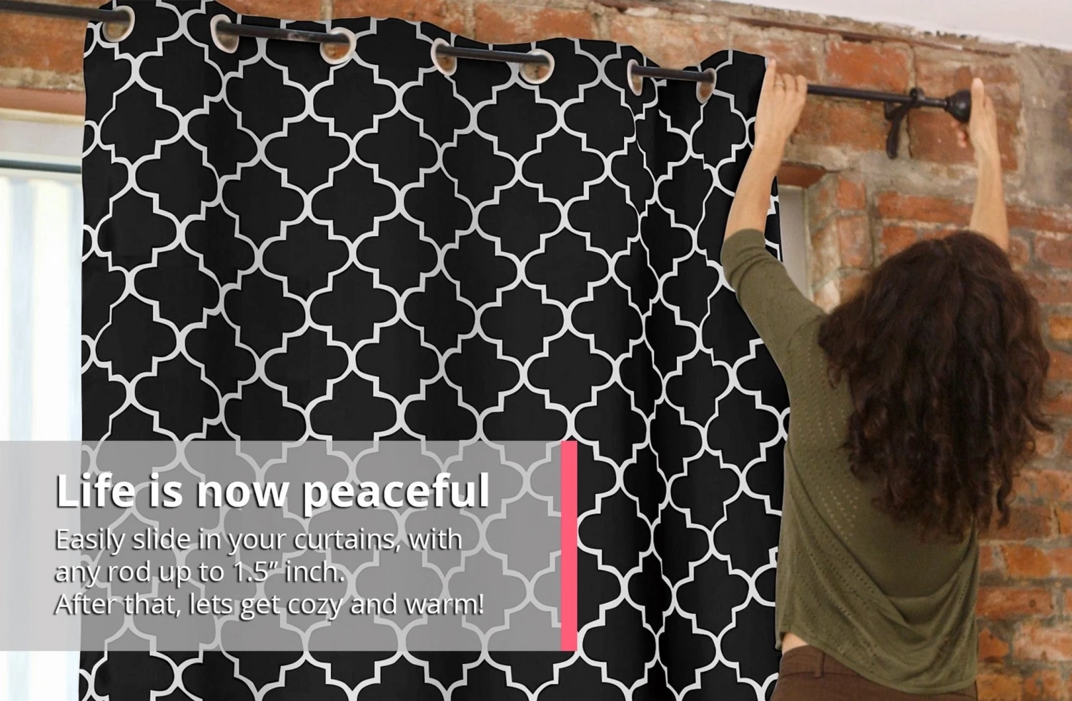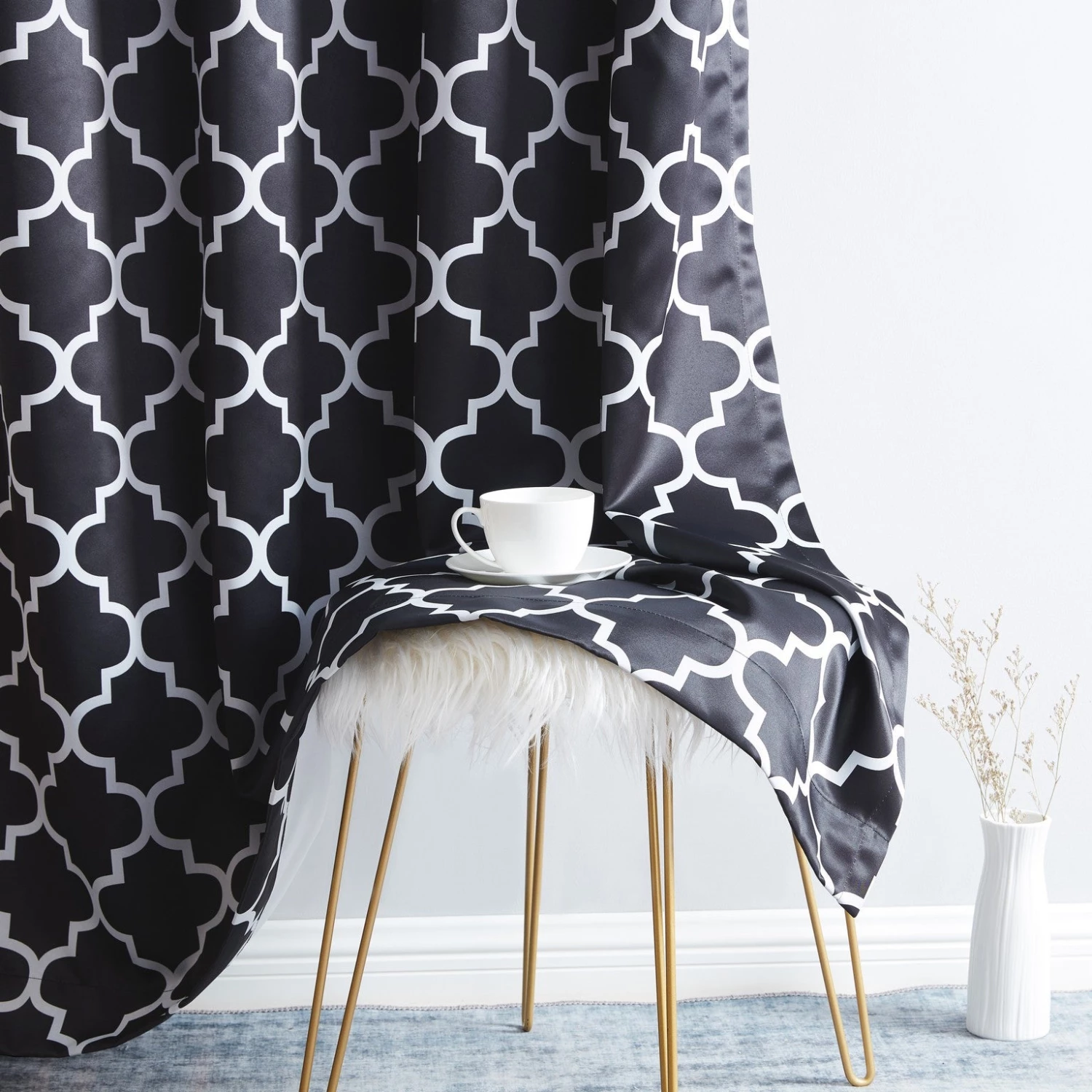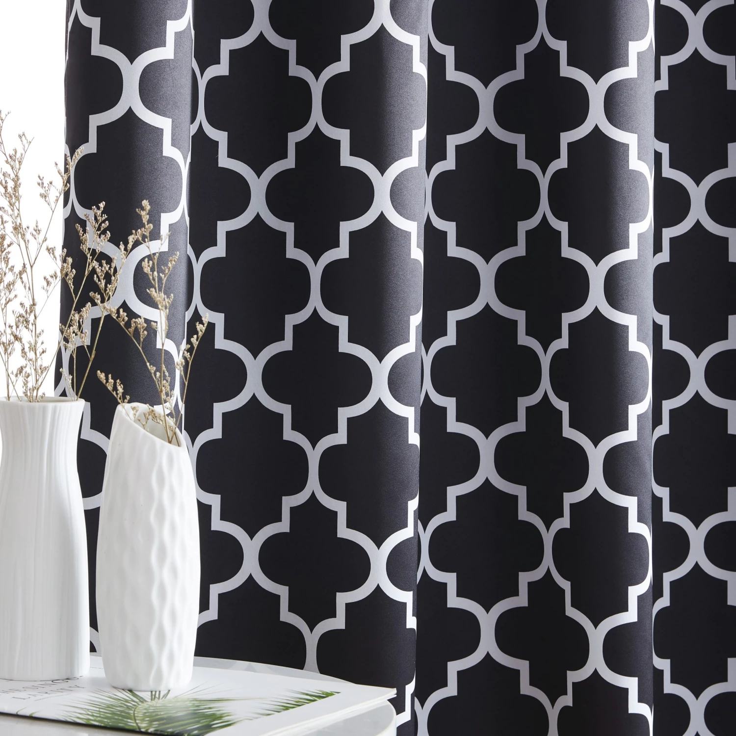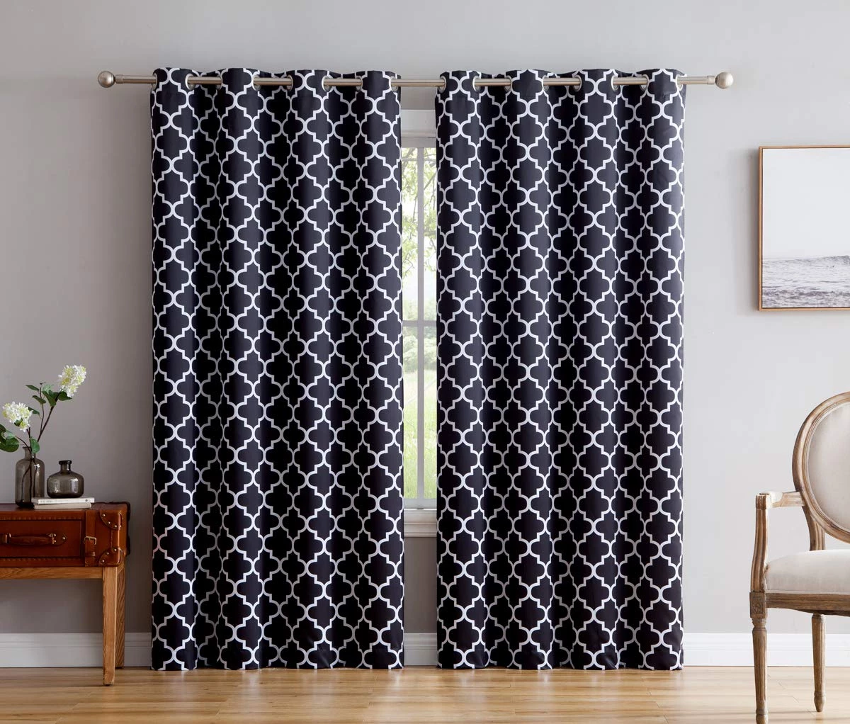 Benefits of blackout curtains: Energy efficient:They can decrease the amount of money spent on heating and air conditioning because of the curtain’s ability to reduce the amount of heat lost in cooler months and reflect heat in the summer. Sunlight:These blackout curtains are made of tightly woven, dense fabric inter sewn into a triple weave technology to reduce unwanted sunlight. These curtains will stop light from passing through thanks to special treatments and extra tight woven fabrics to help you control the light levels in your room. Creative Design:A moroccan geometric pattern offers a pleasing accent for any window. A lattice pattern interwoven to complete a chic and versatile look to compliment any room. Privacy: If you’ve ever been kept awake by irritating little noises from the street below that pull you back from the edge of blissful sleep, you’ll appreciate the noise reduction abilities of our blackout drapes. The thick blackout fabric of our readymade blackout curtains helps to dampen noises, contributing further to the peaceful sanctuary you need when you are drifting off to sleep. MACHINE WASHABLE: Machine Wash Cold, delicate cycle with mild detergent. Do not bleach. Tumble Dry Low. Cool iron if needed.