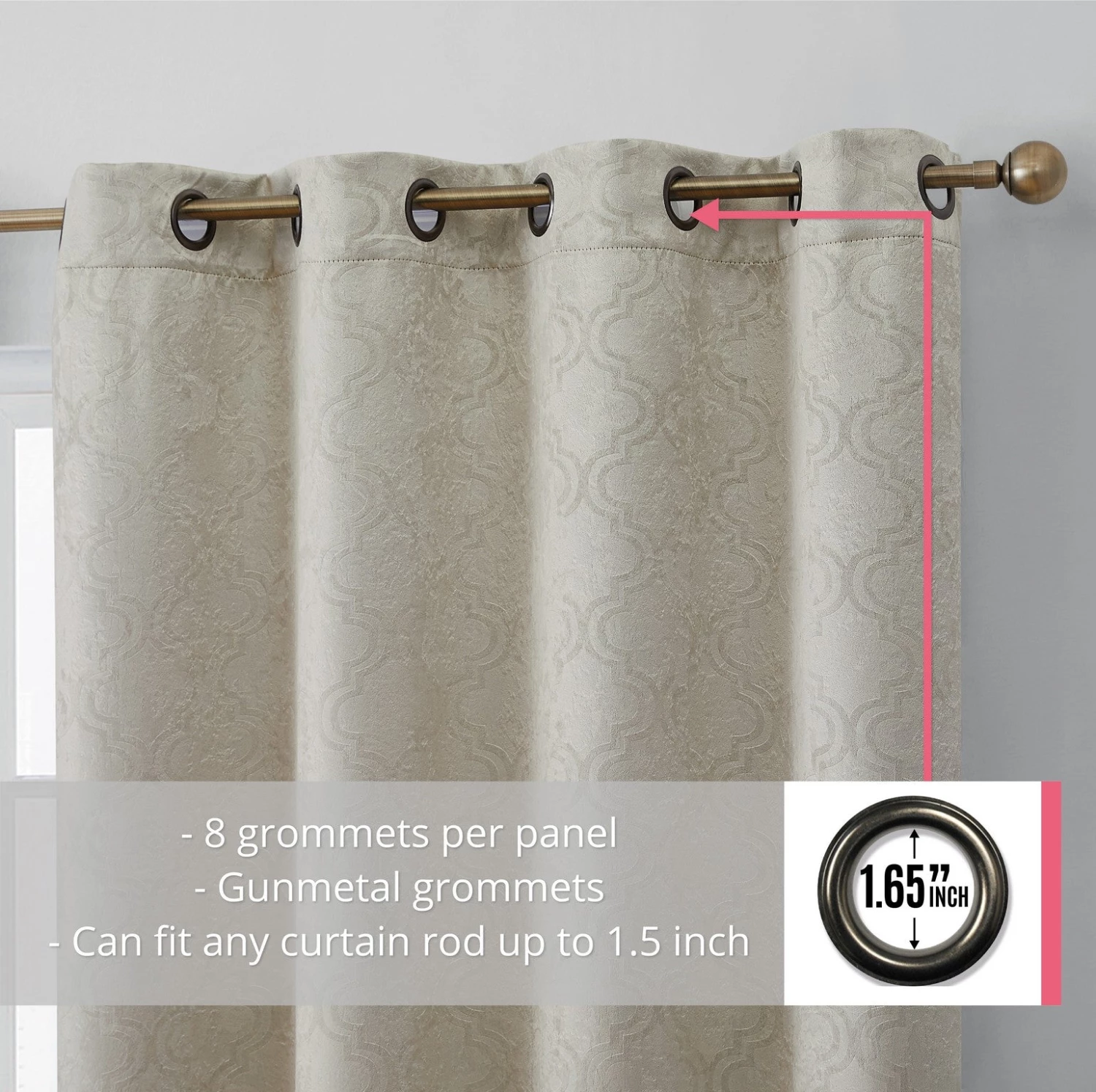 HLC.ME Blackout Curtains Redmont Lattice Blackout Grommet Curtain Panels – Beige – Set Of 2