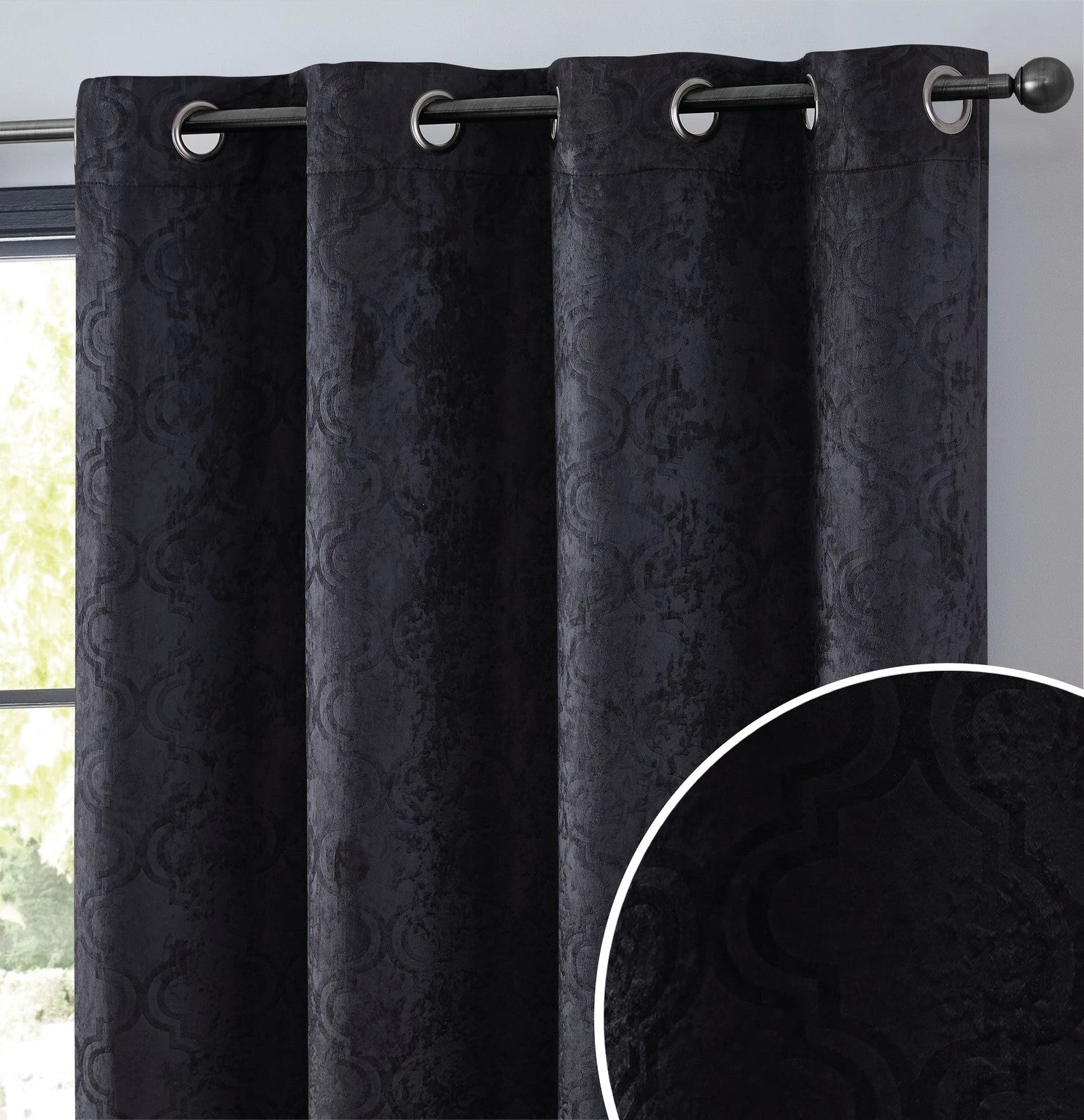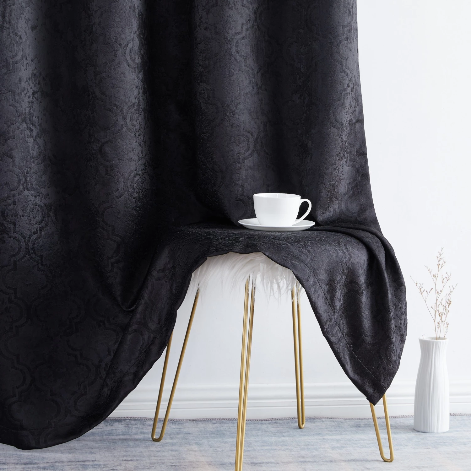 HLC.ME Blackout Curtains Redmont Lattice Blackout Grommet Curtain Panels – Black – Set Of 2