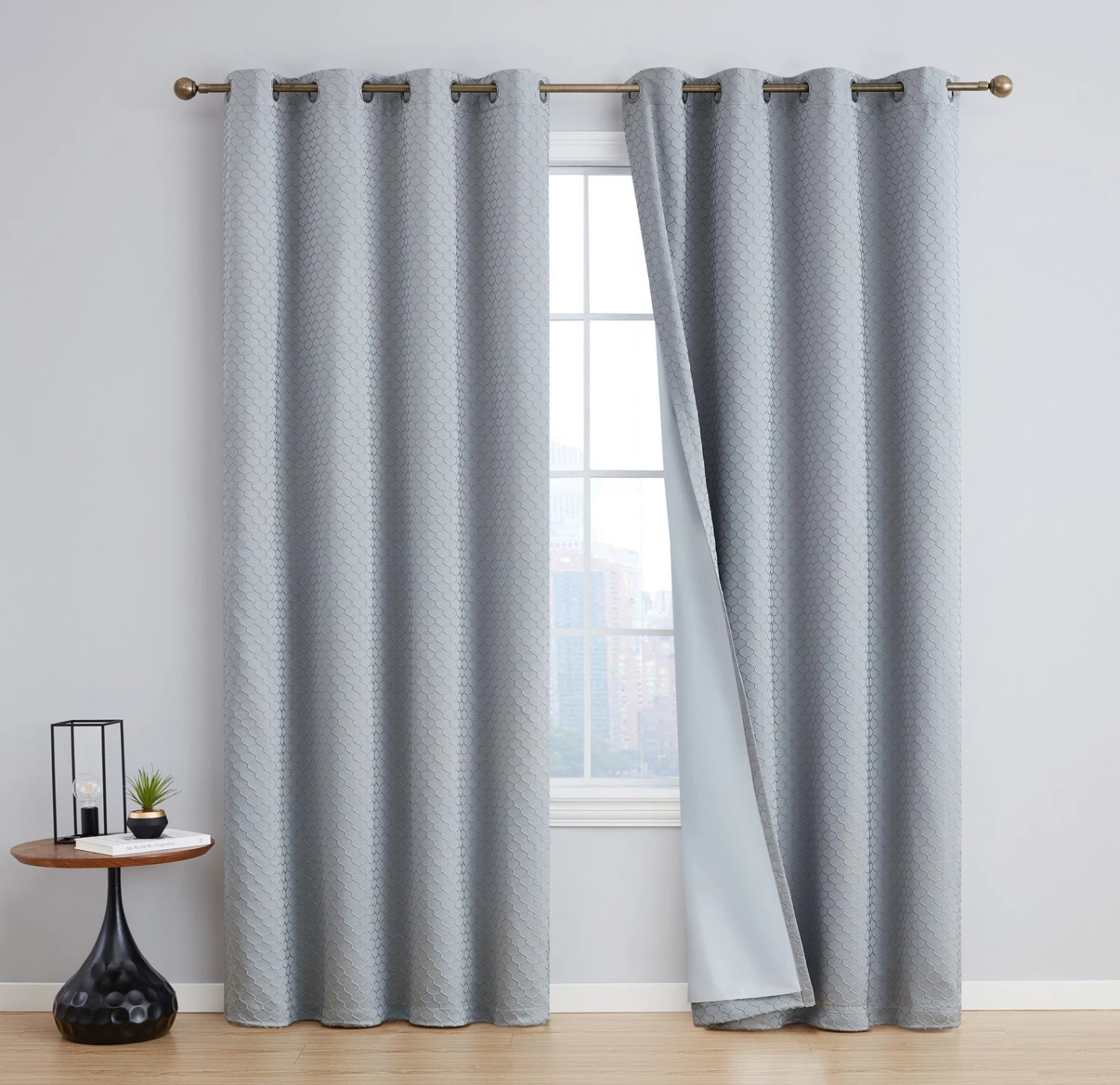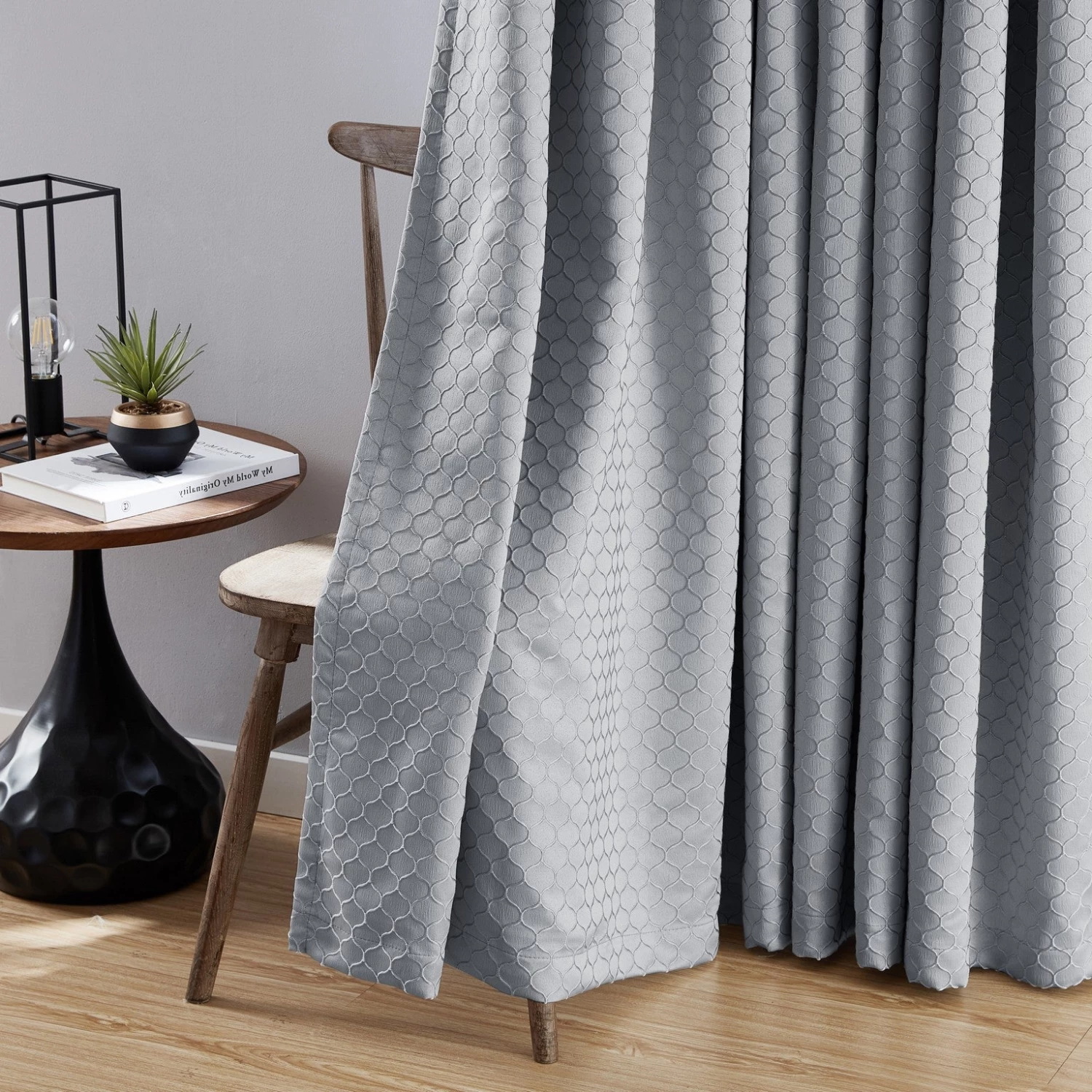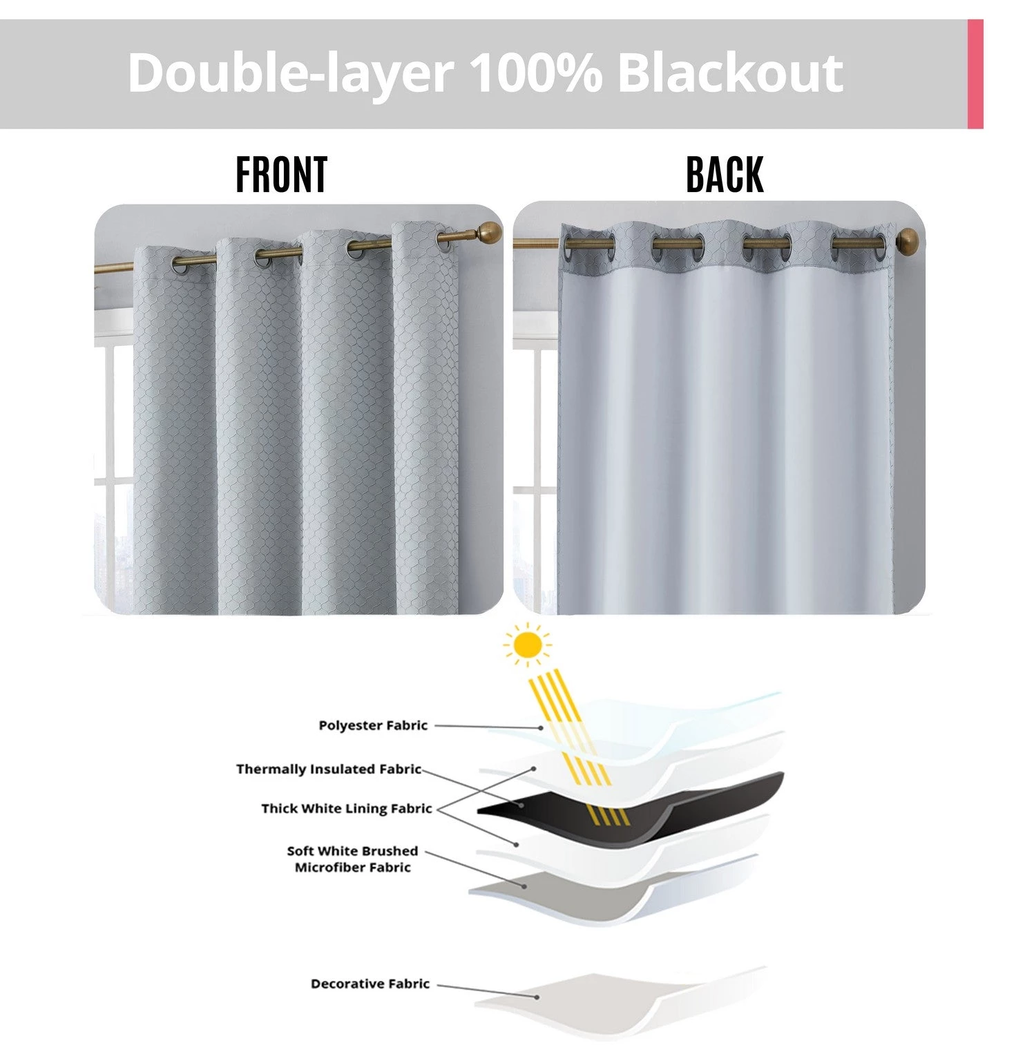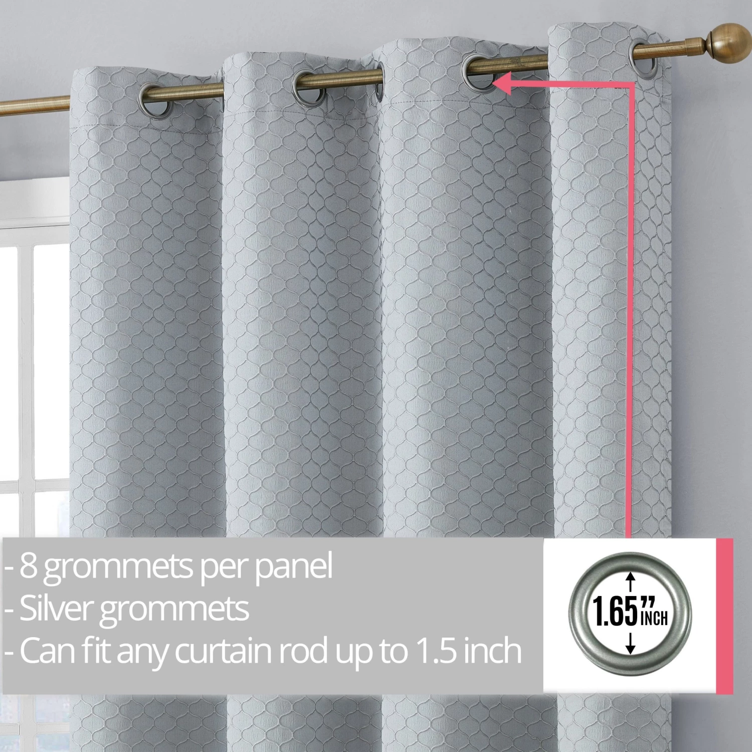 HLC.ME Blackout Curtains Siena Geometric 100% Blackout Grommet Curtains – Light Grey – Set Of 2