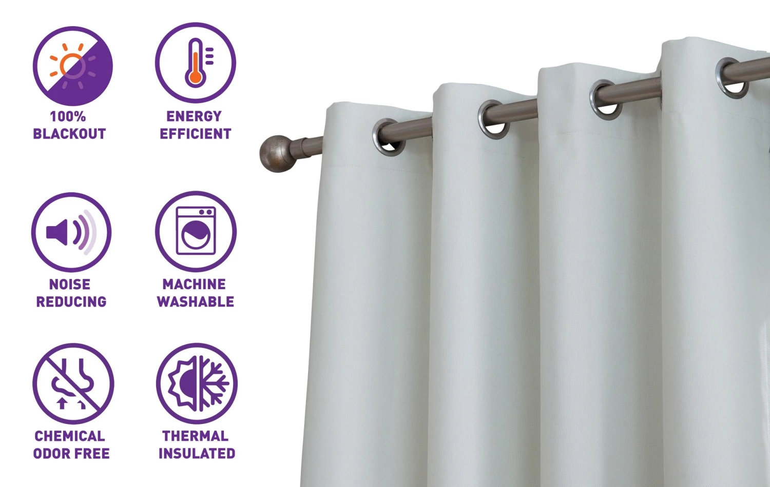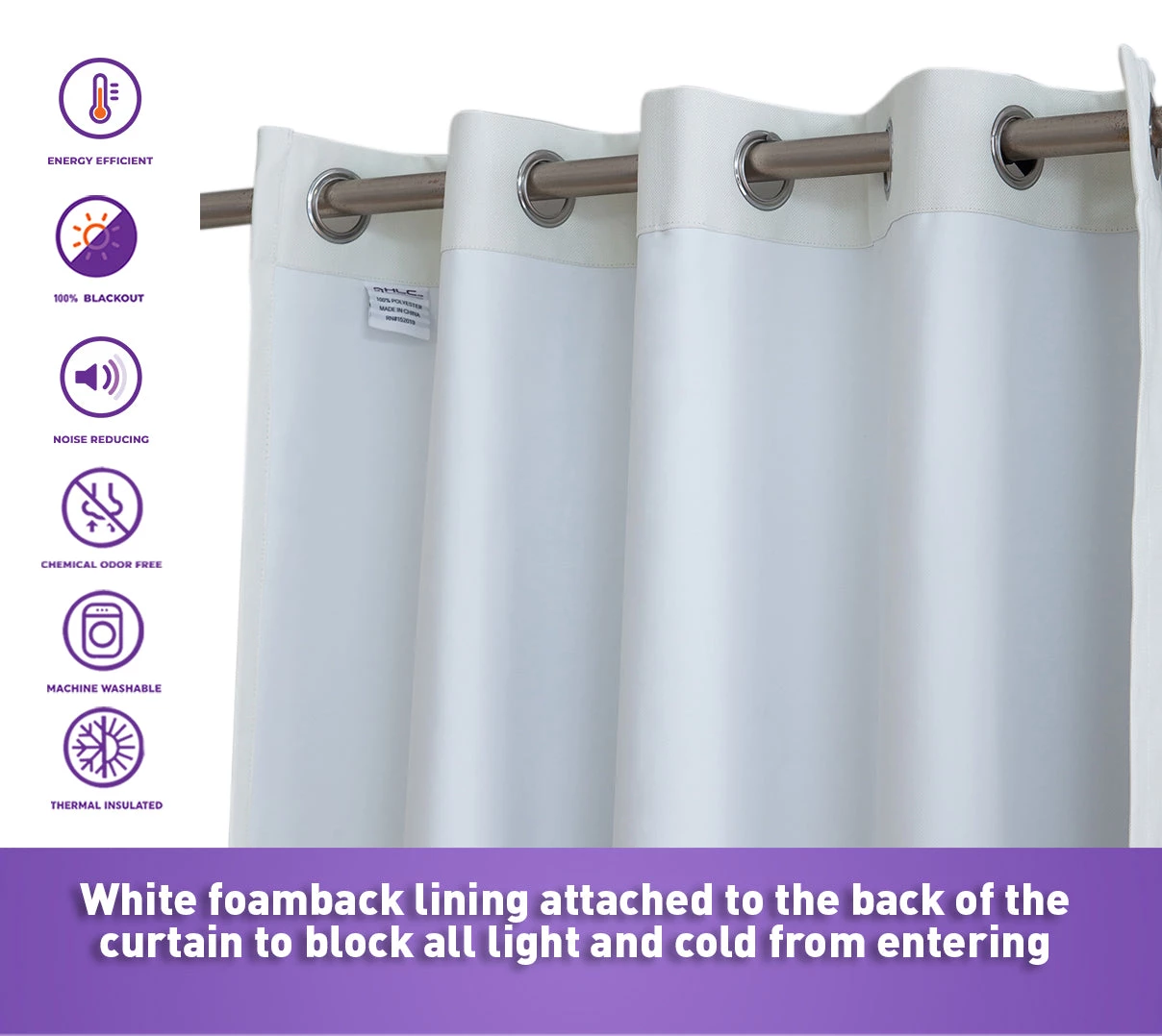 HLC.ME Blackout Curtains Textured Lined 100% Blackout Grommet Curtain Panels – Ivory – Set Of 2