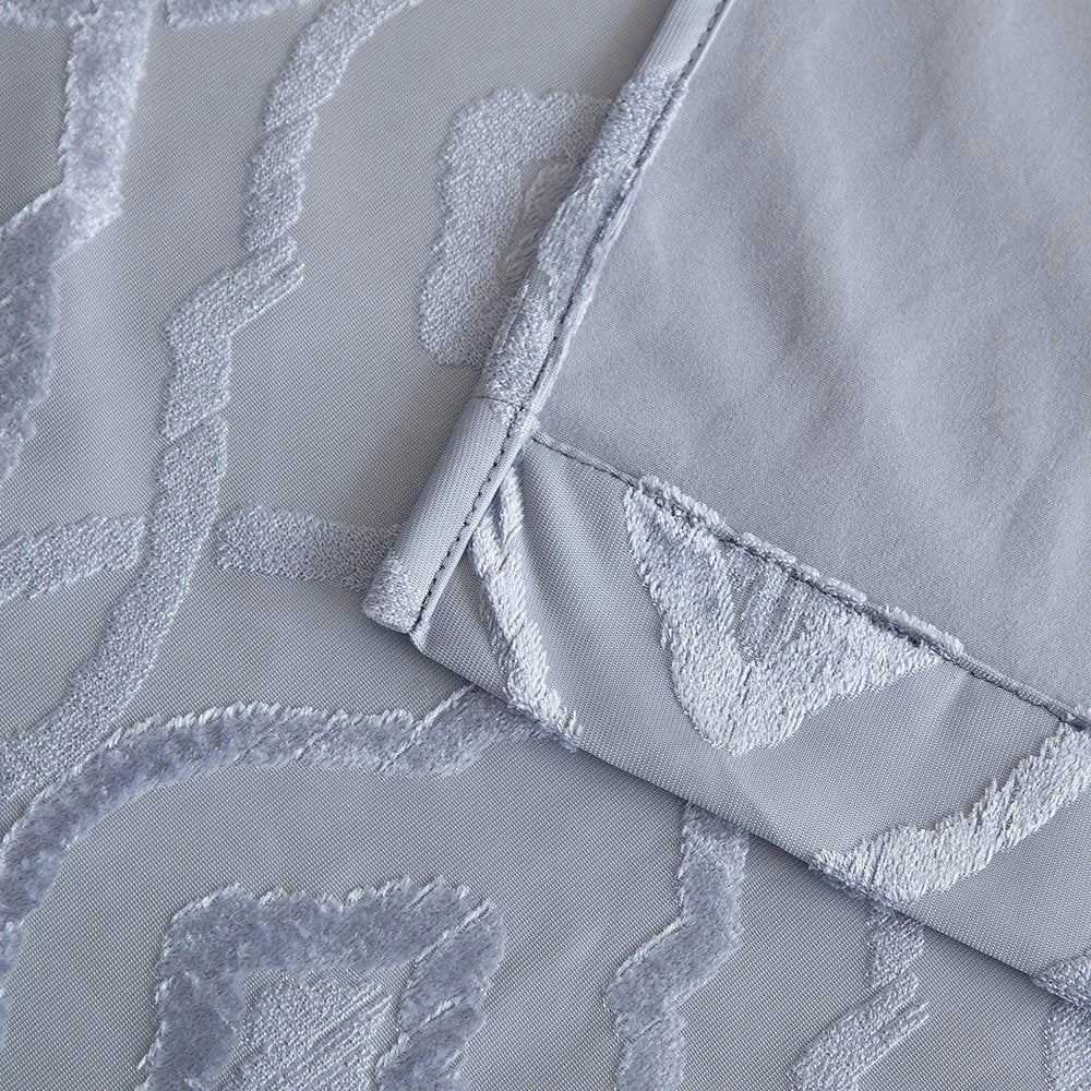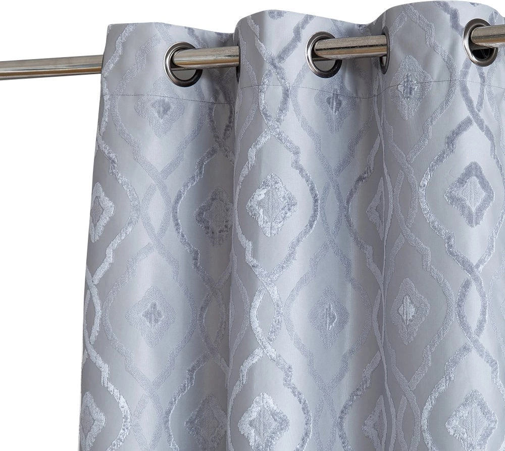 HLC.ME Blackout Curtains Trellis Flocked 100% Blackout Grommet Curtain Panels – Light Grey – Set Of 2