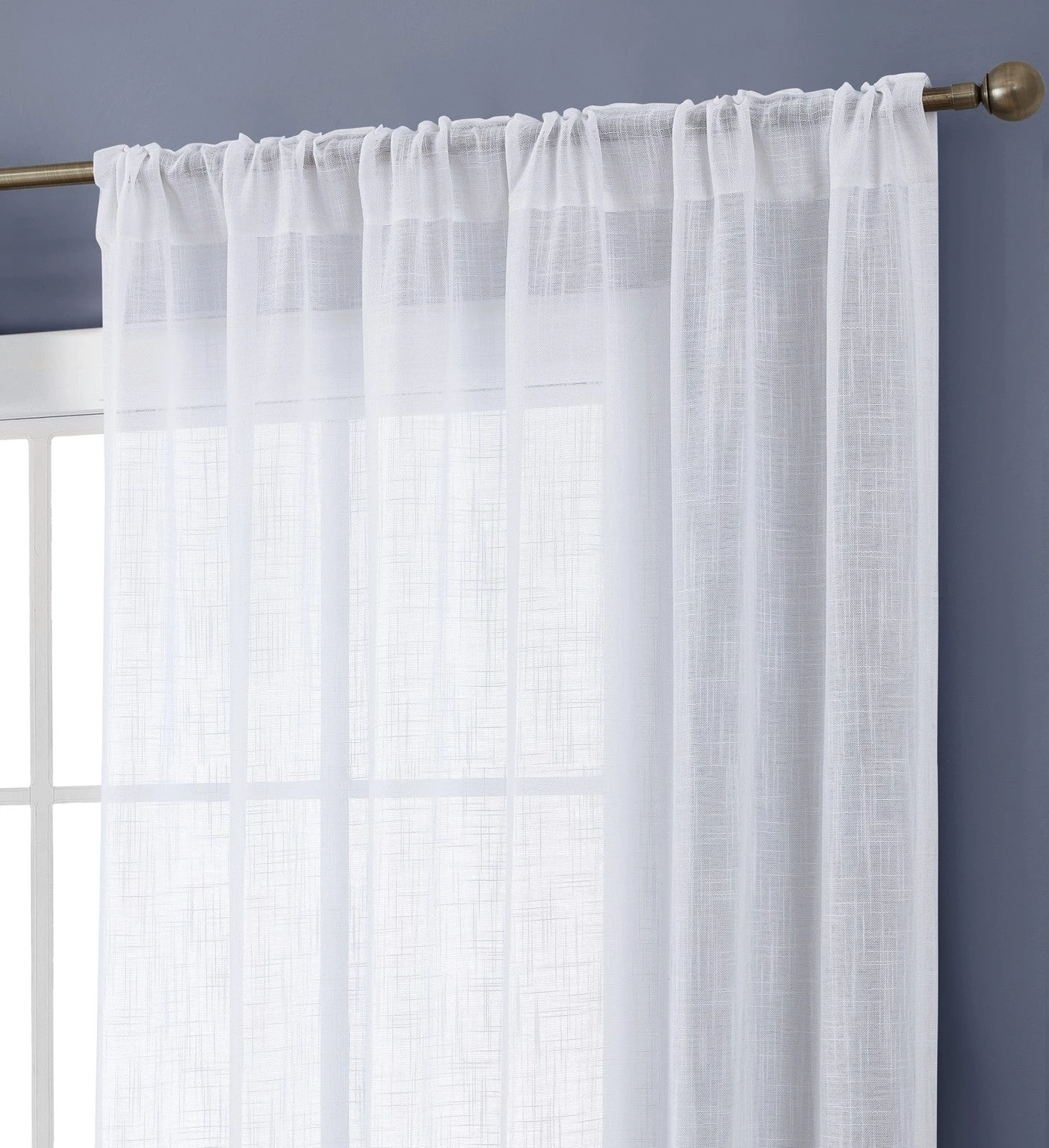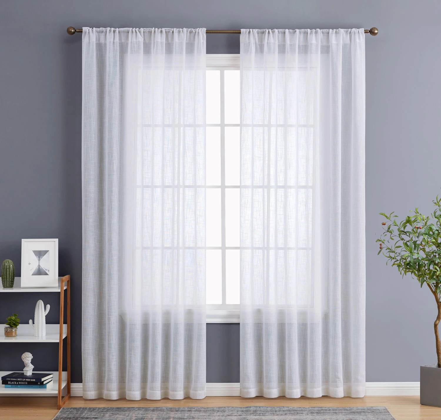 HLC.ME Brenda Faux Linen Sheer Rod Pocket / Back Tab Curtain Panels Sheer Curtains
