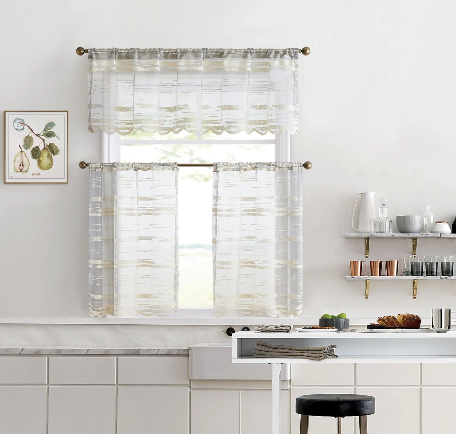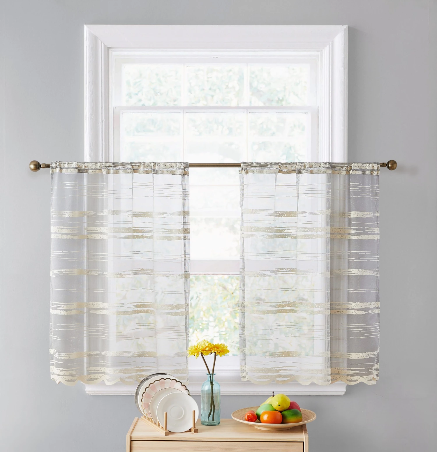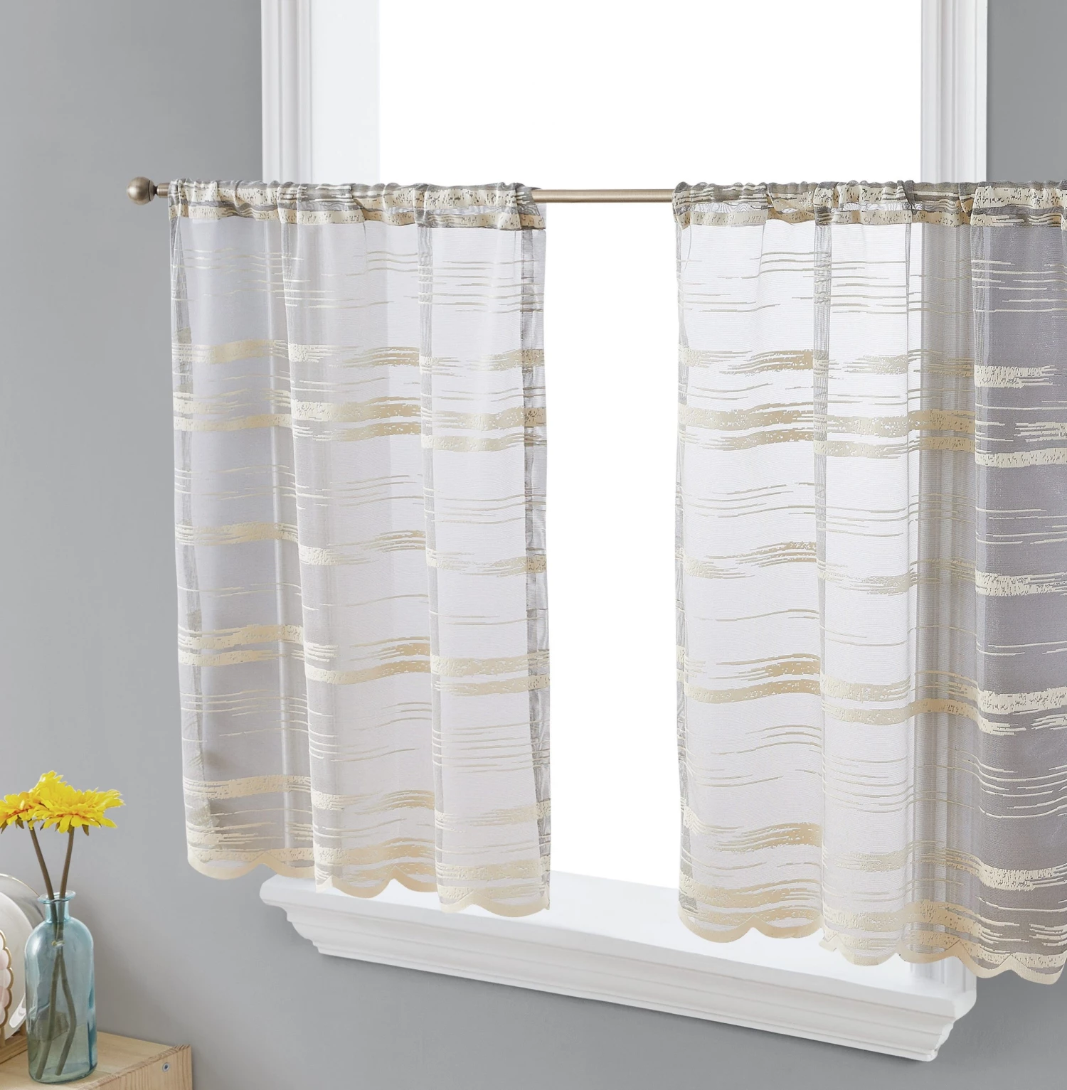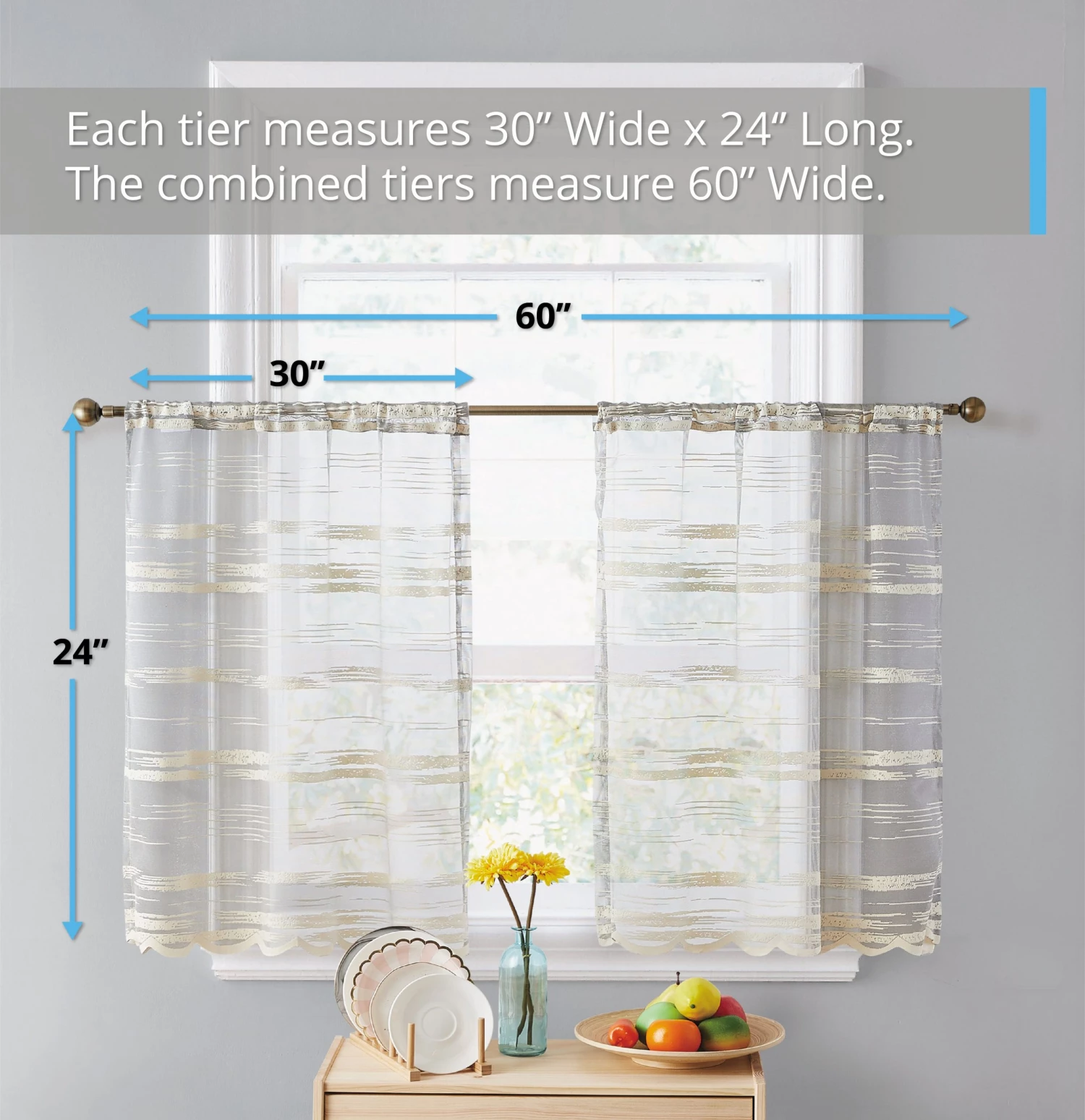 HLC.ME Broadway Sheer Striped Rod Pocket Curtain Tiers – Beige – Set Of 2