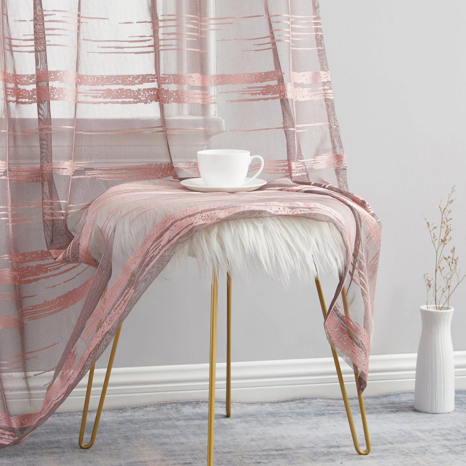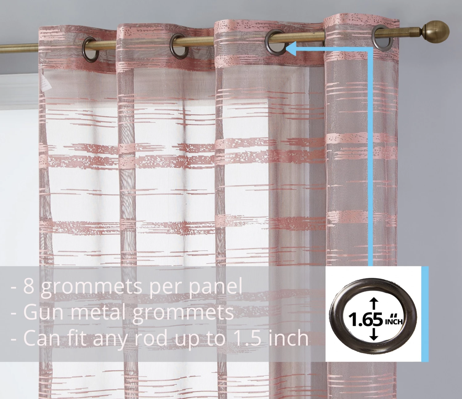HLC.ME Broadway Stripe Sheer Grommet Panels – Blush Pink – Set Of 2