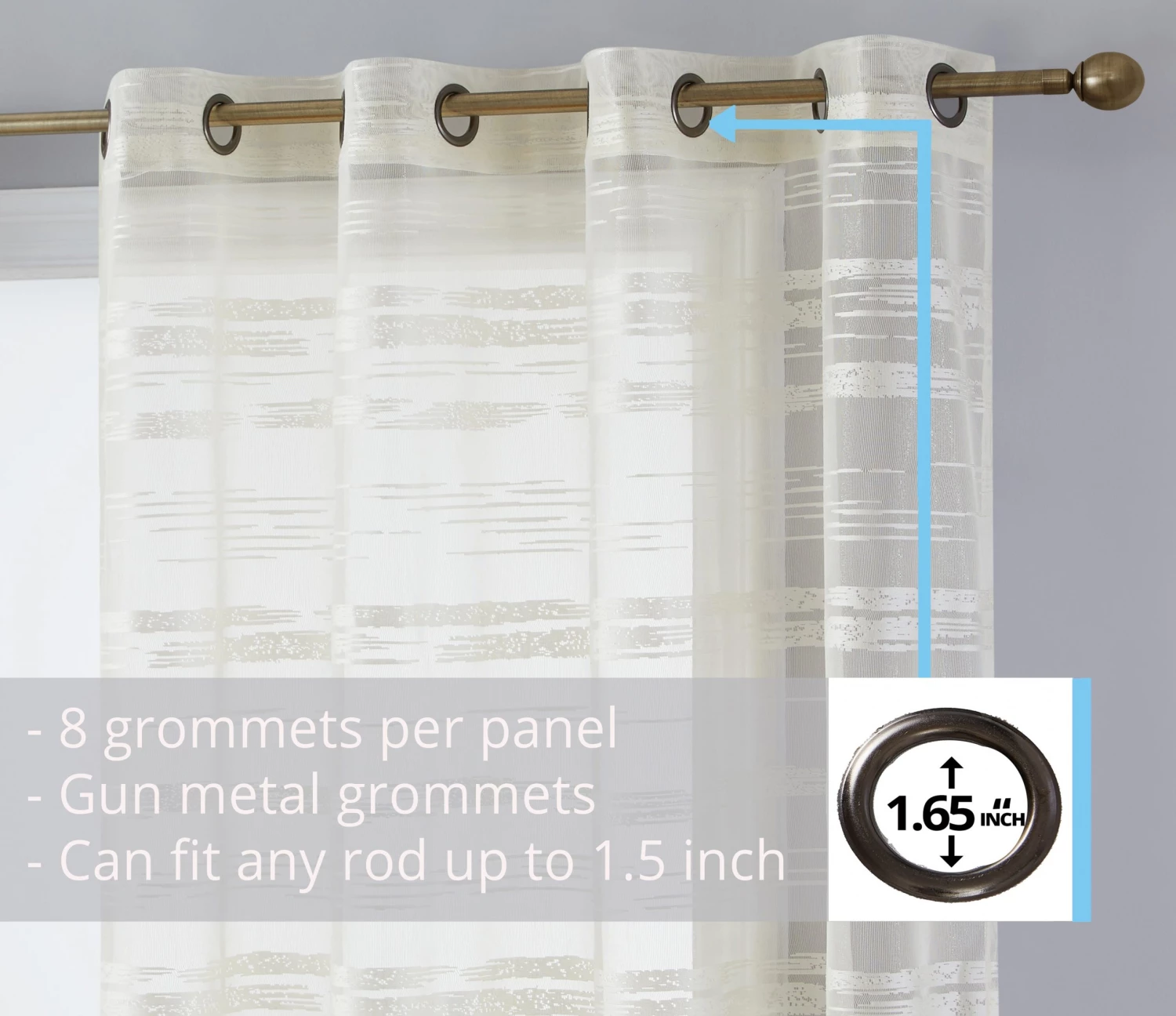 HLC.ME Broadway Stripe Sheer Grommet Panels – Ivory – Set Of 2