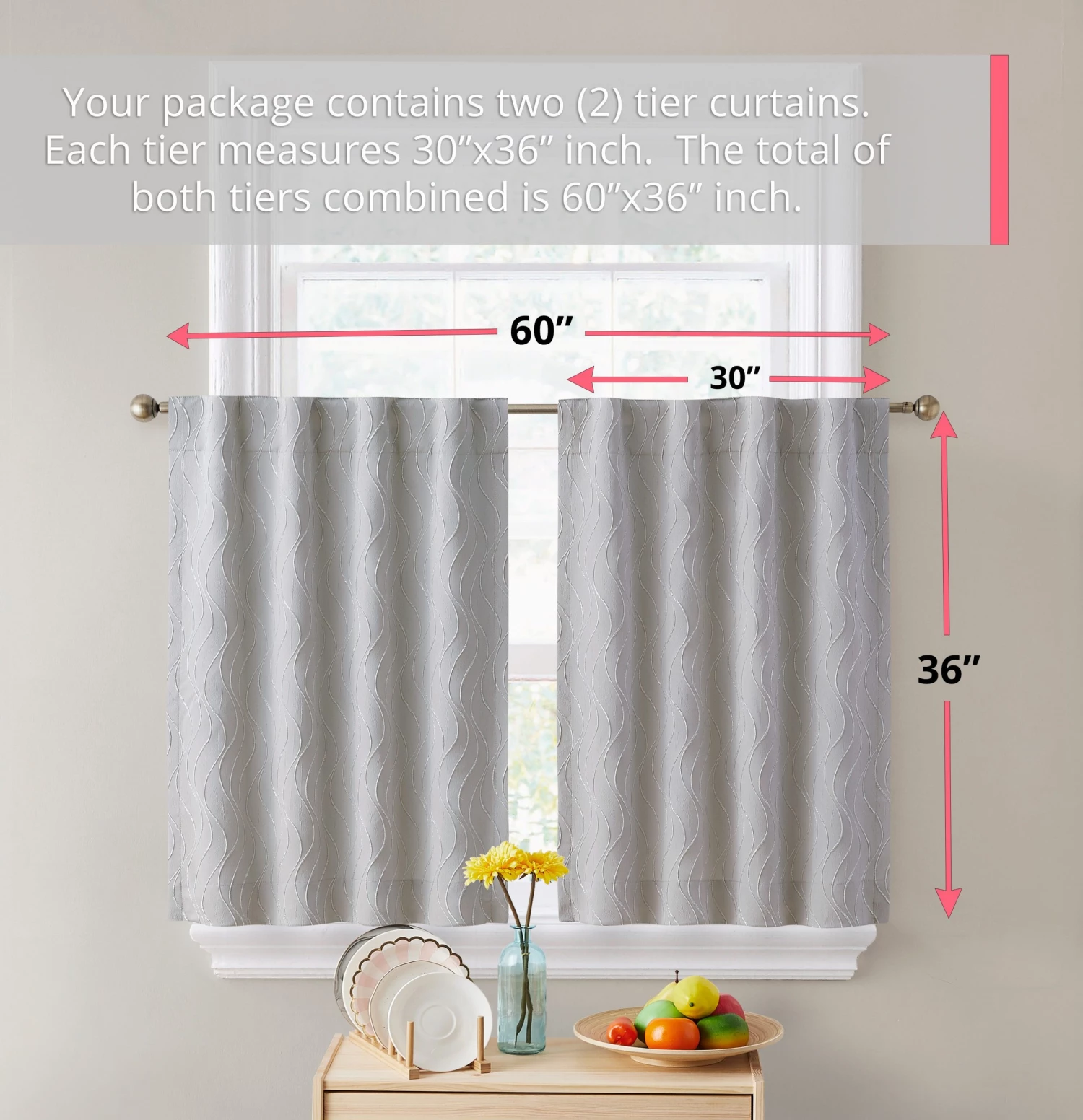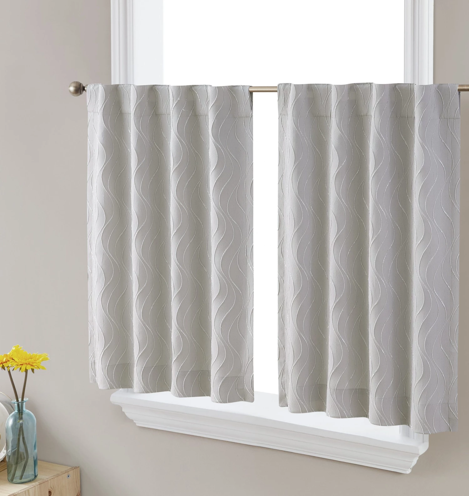 HLC.ME Camden Jacquard 100% Blackout Back Tab Tiers – Light Grey – Set Of 2