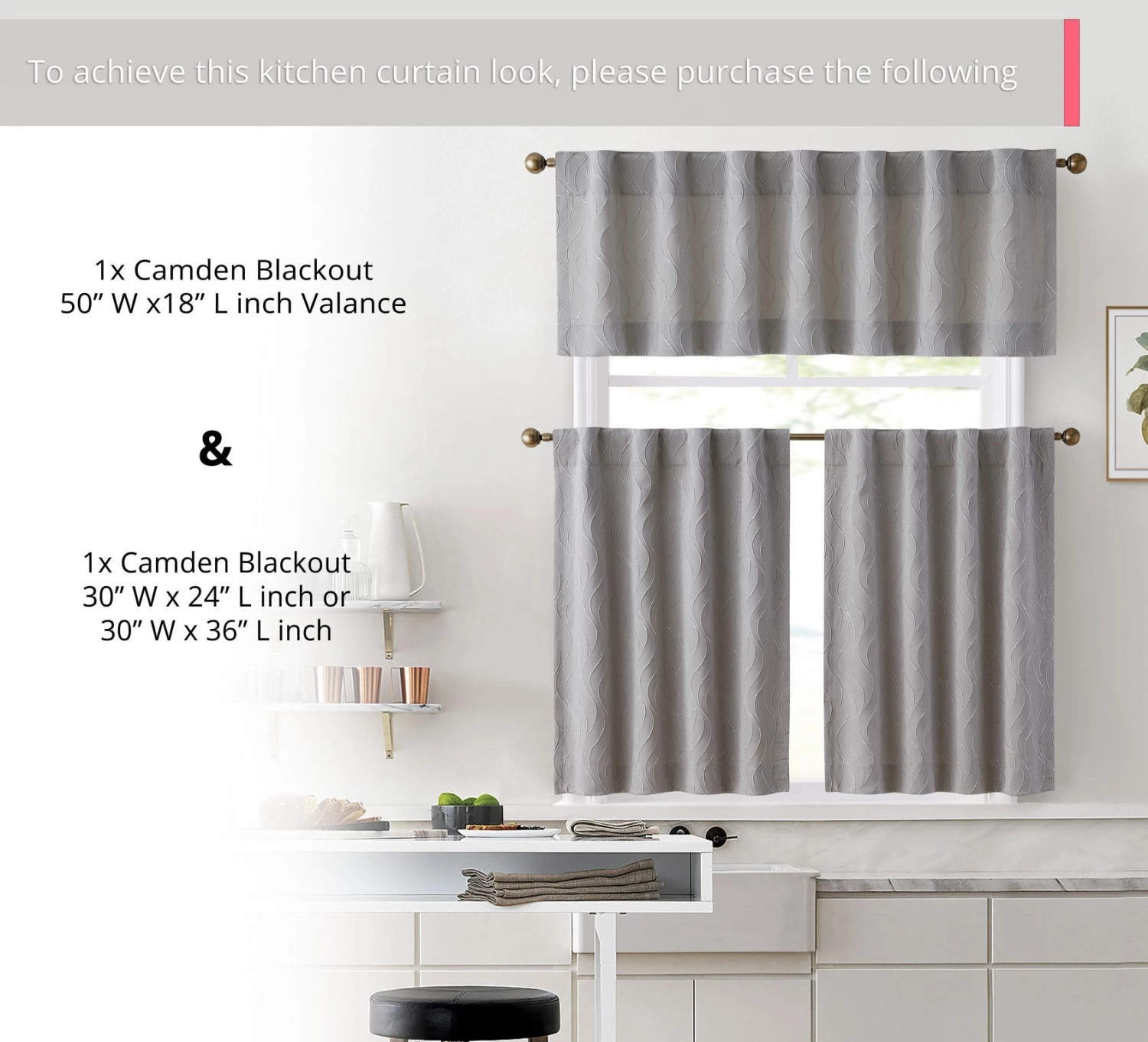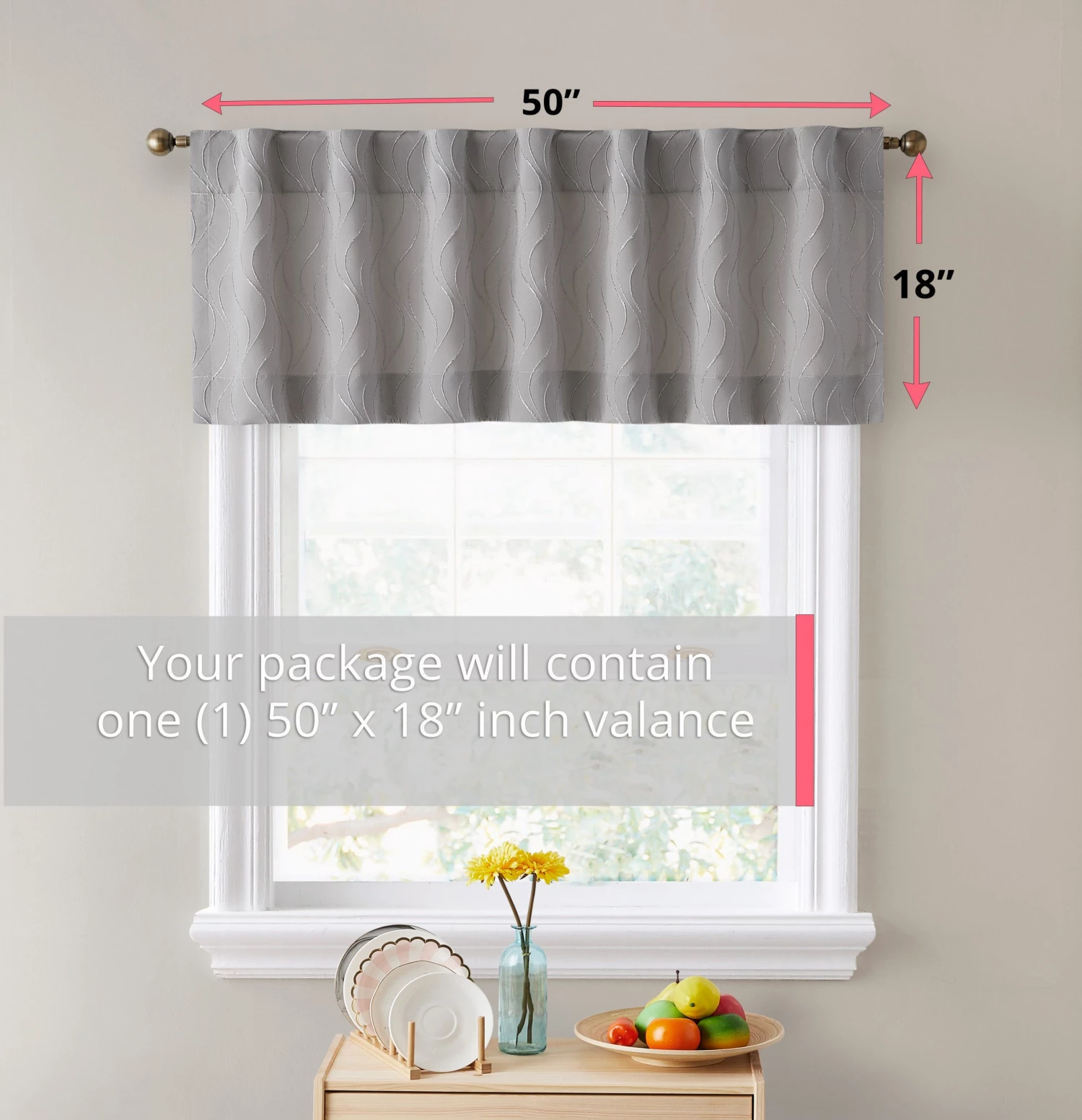 Window Treatment Kitchen Valances give a romantic and airy look to a room by allowing sunlight to pass through the curtains. The fabric of our Camden valances make for a unique window treatment that allows you to see outside but still allowing for privacy. For most home owners this is a great feature of jacquard double layer microfiber valance. They can be used for in many other ways as well such as layering over drapes or using them for those small bay windows in your basement. Package contains one (1) valance. 100% Polyester