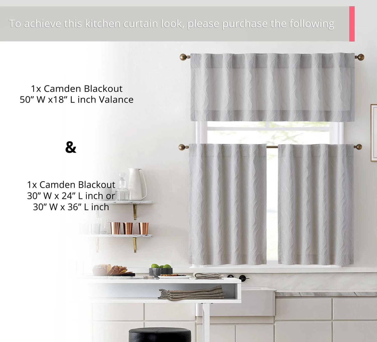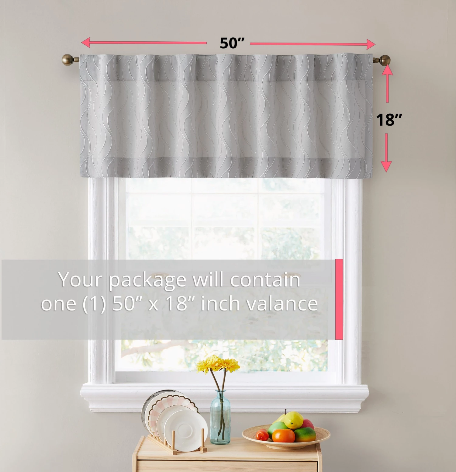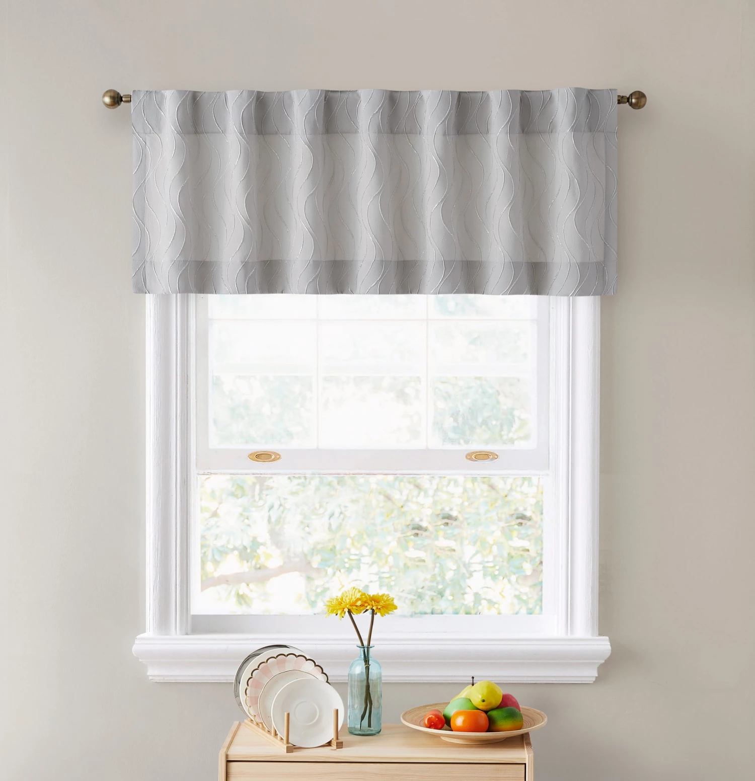 Window Treatment Kitchen Valances give a romantic and airy look to a room by allowing sunlight to pass through the curtains. The fabric of our Camden valances make for a unique window treatment that allows you to see outside but still allowing for privacy. For most home owners this is a great feature of jacquard double layer microfiber valance. They can be used for in many other ways as well such as layering over drapes or using them for those small bay windows in your basement. Package contains one (1) valance. 100% Polyester