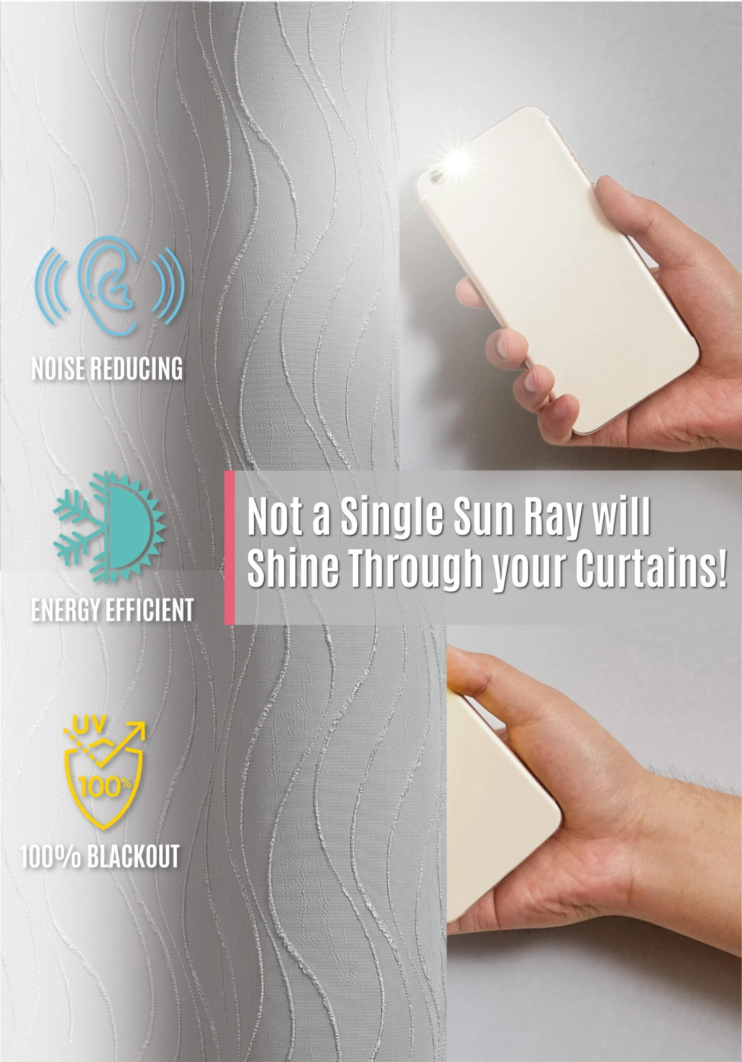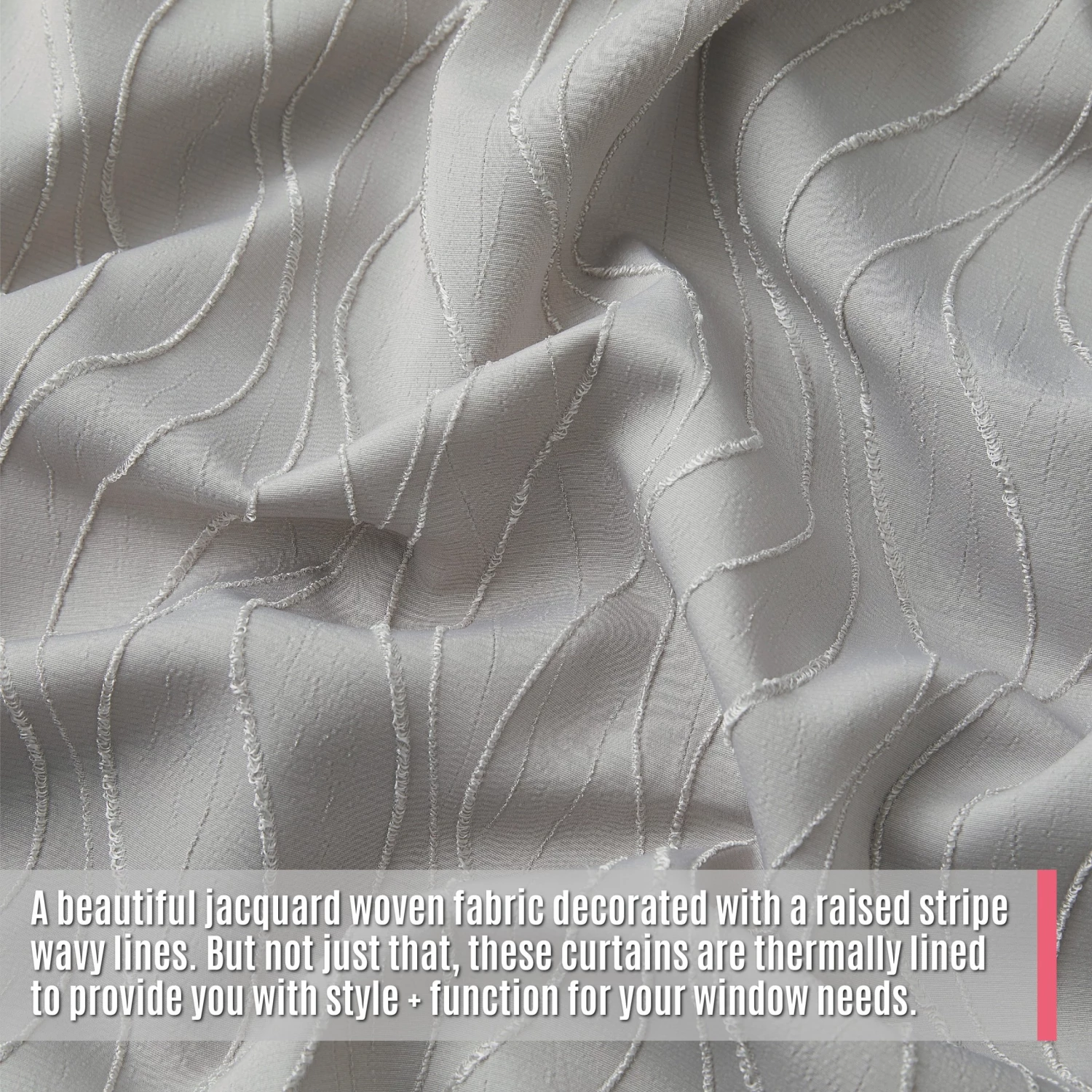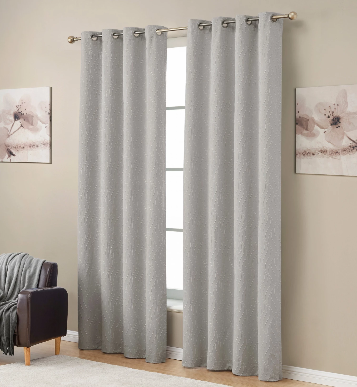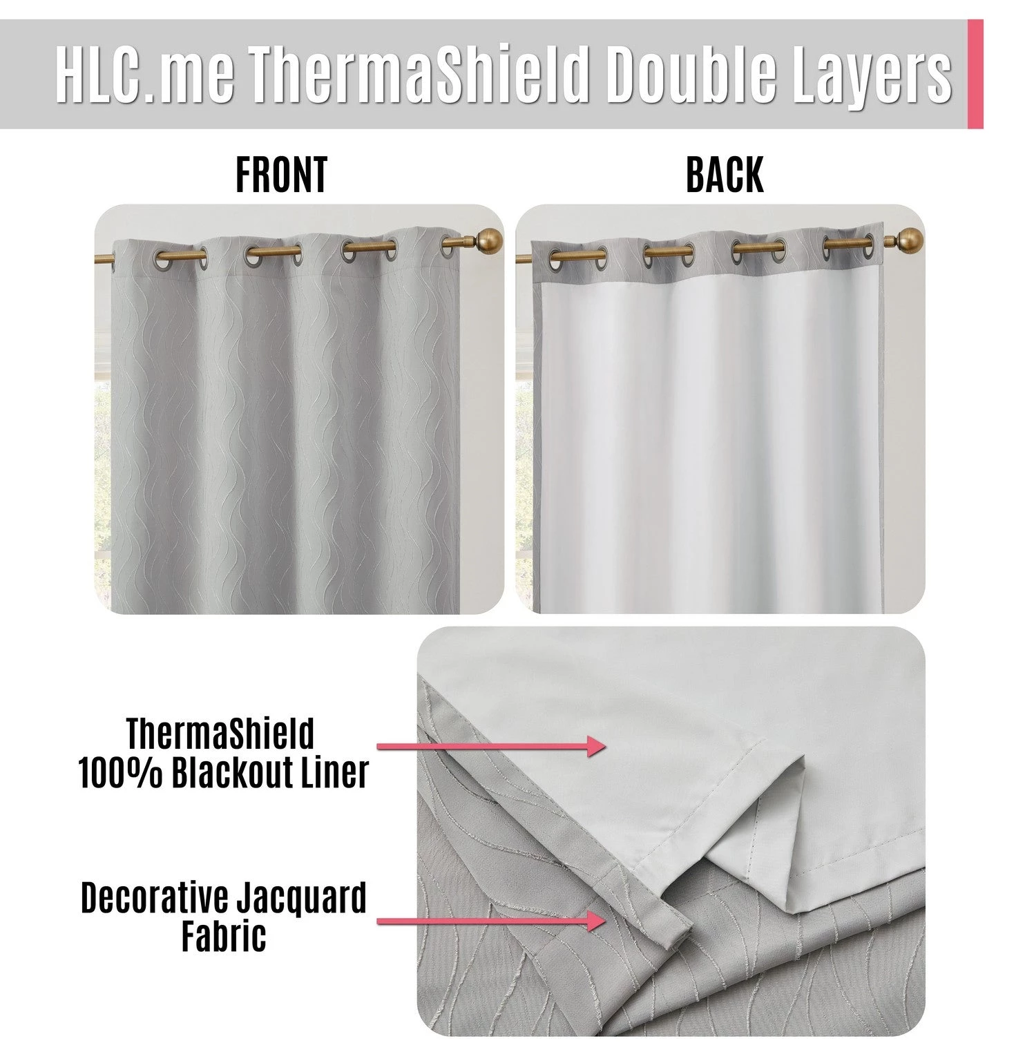 HLC.ME Camden Jacquard 100% Blackout Grommet Curtain Panels – Light Grey/Silver – Set Of 2 Blackout Curtains