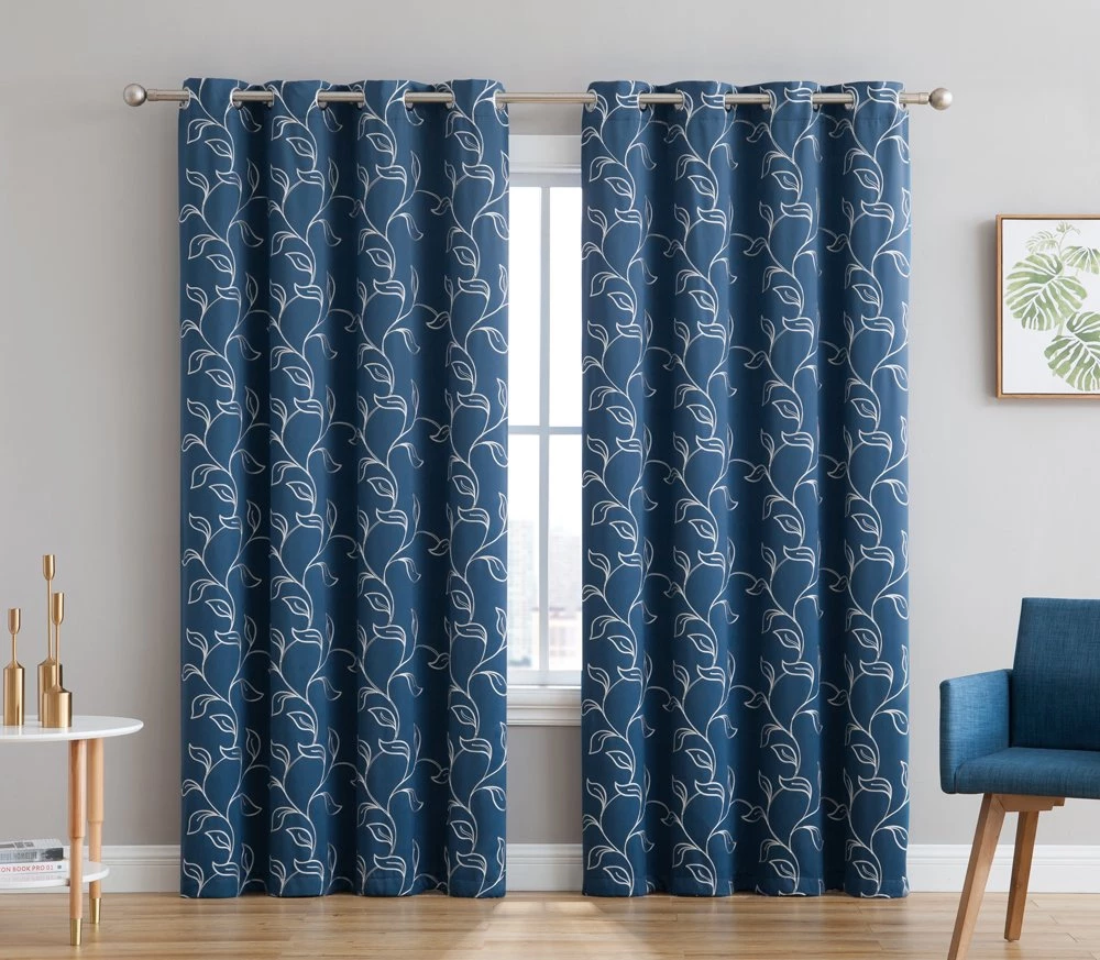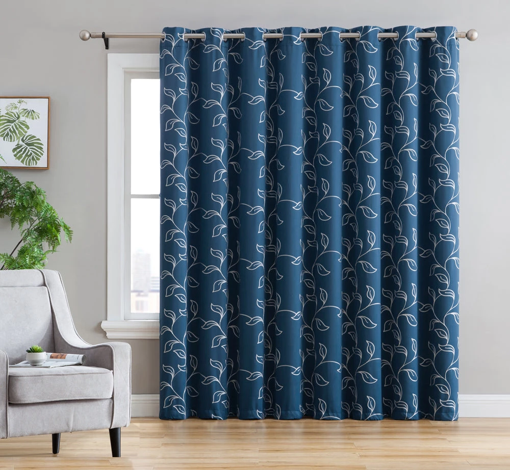 HLC.ME Carol Floral Blackout Grommet Patio Door Panel – Teal Blue/Ivory