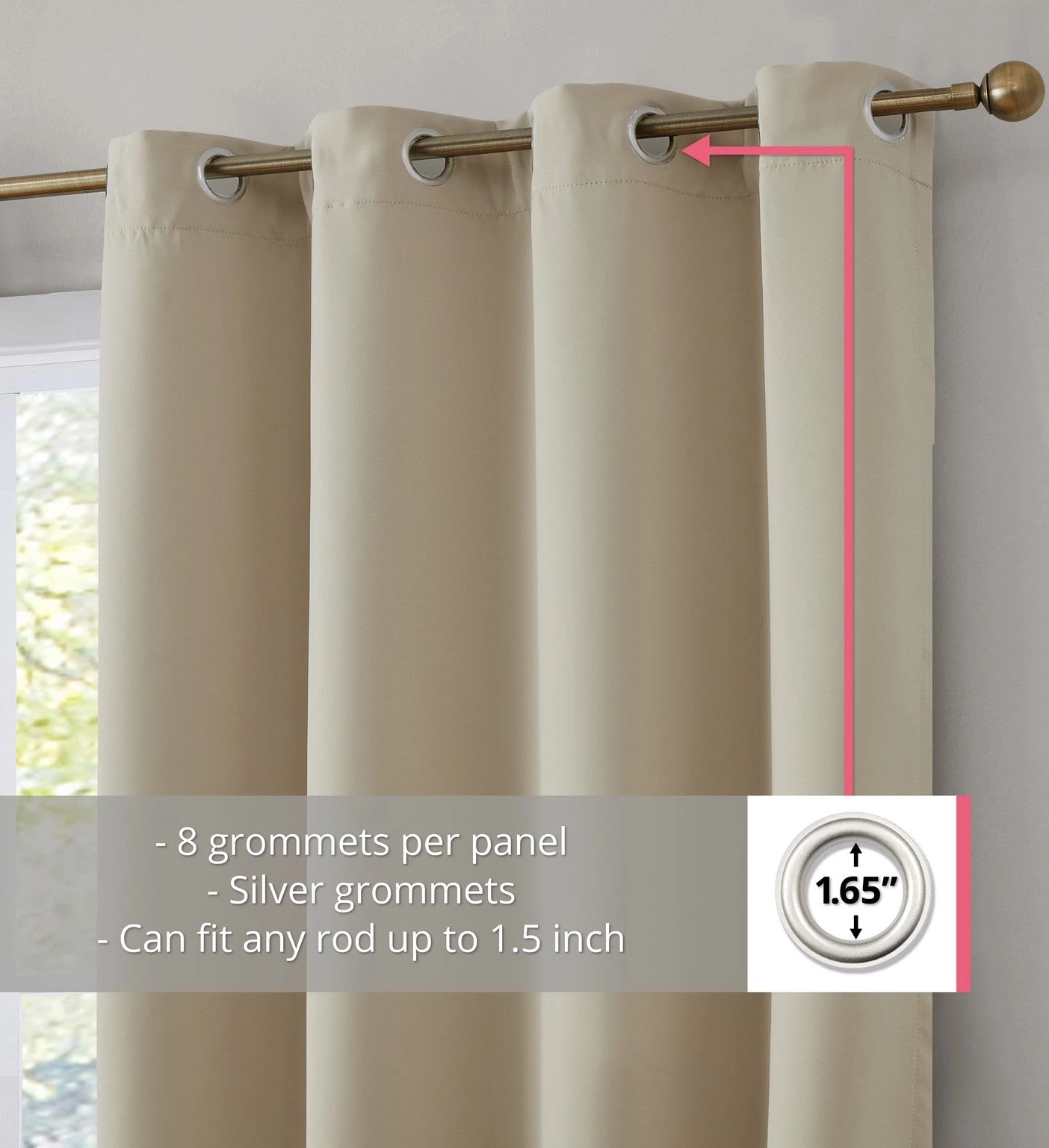 HLC.ME Dakota 100% Blackout Grommet Curtain Panels – Beige – Set Of 2 Blackout Curtains