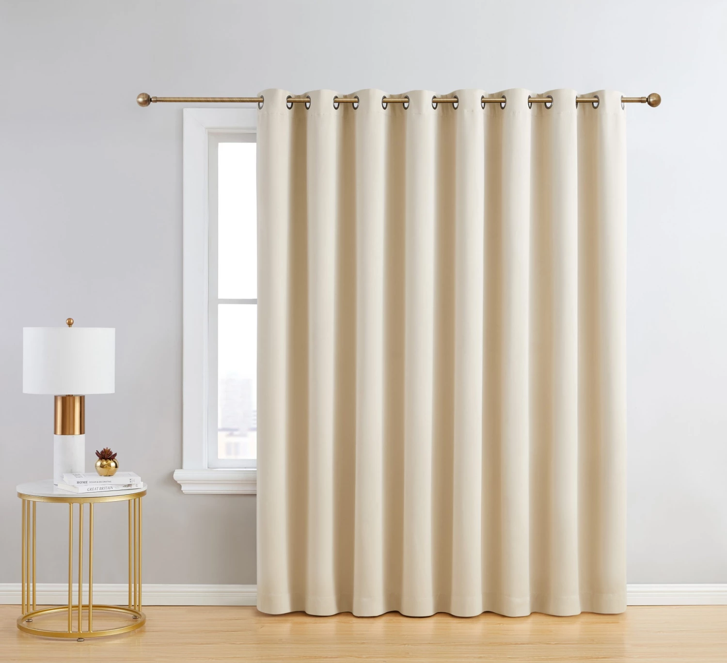 HLC.ME Dakota 100% Blackout Grommet Patio Door Panel – Beige Faux Linen Curtains