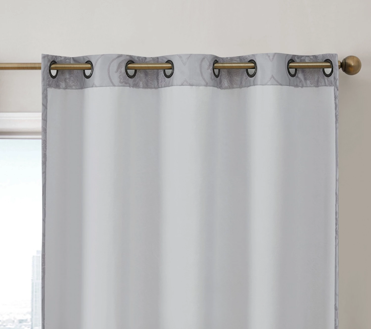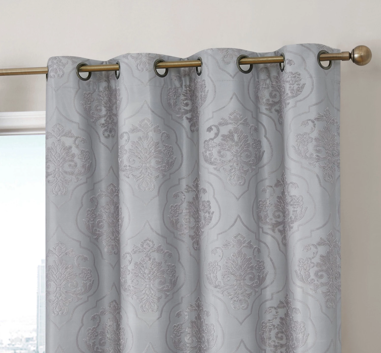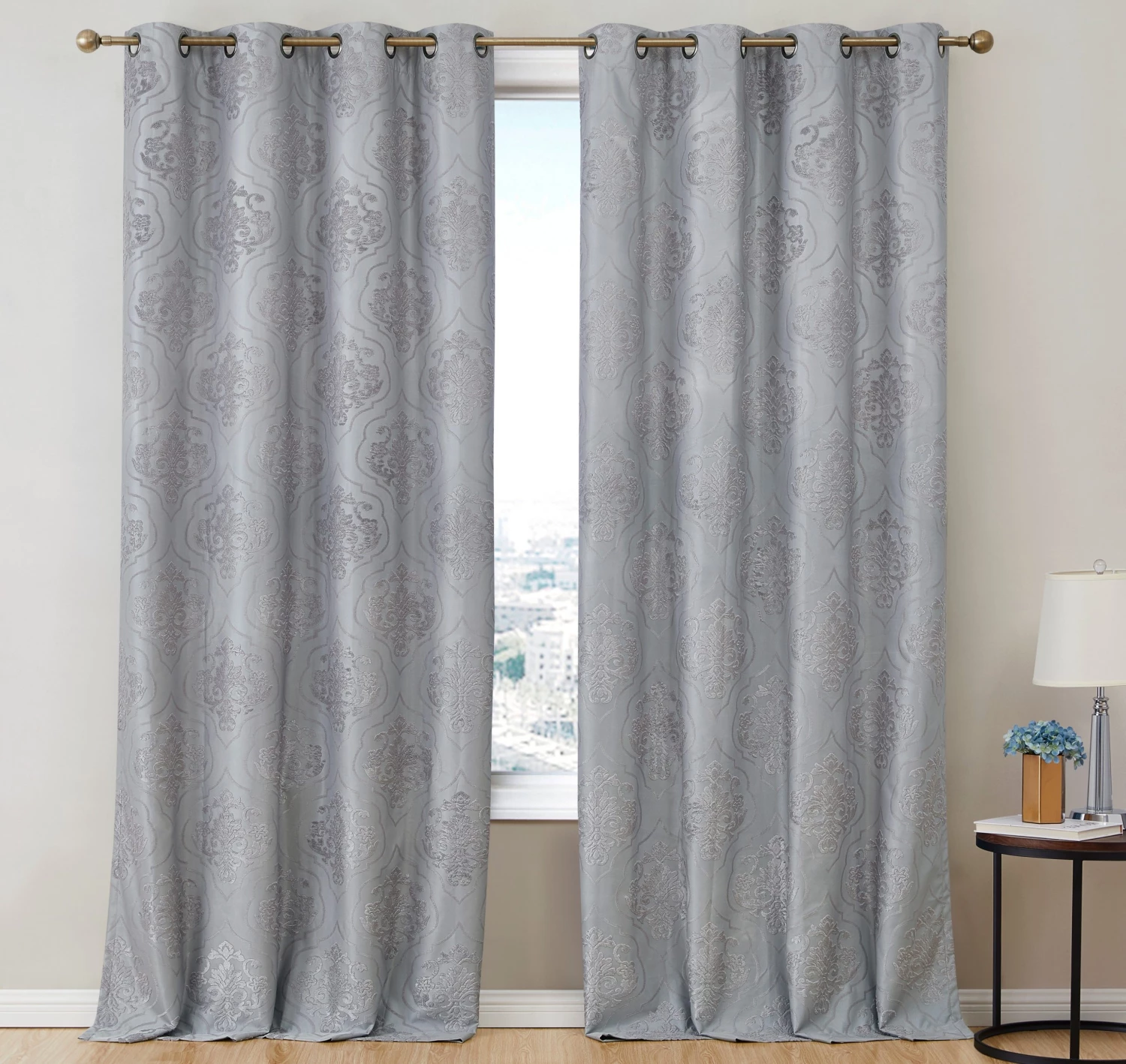 HLC.ME Damask Flocked 100% Blackout Grommet Curtain Panels – Grey – Set Of 2