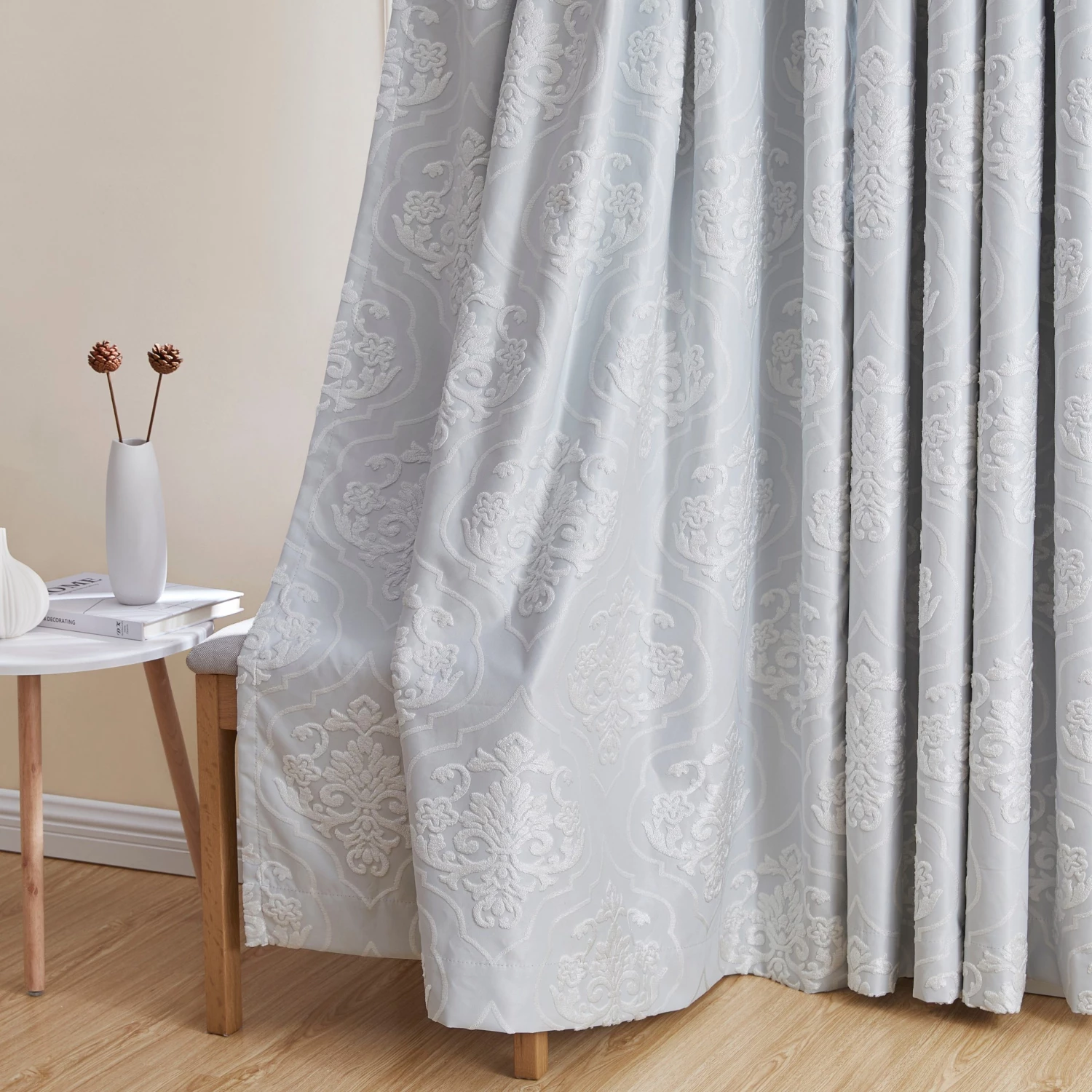 HLC.ME Damask Flocked 100% Blackout Grommet Patio Door Panel – White