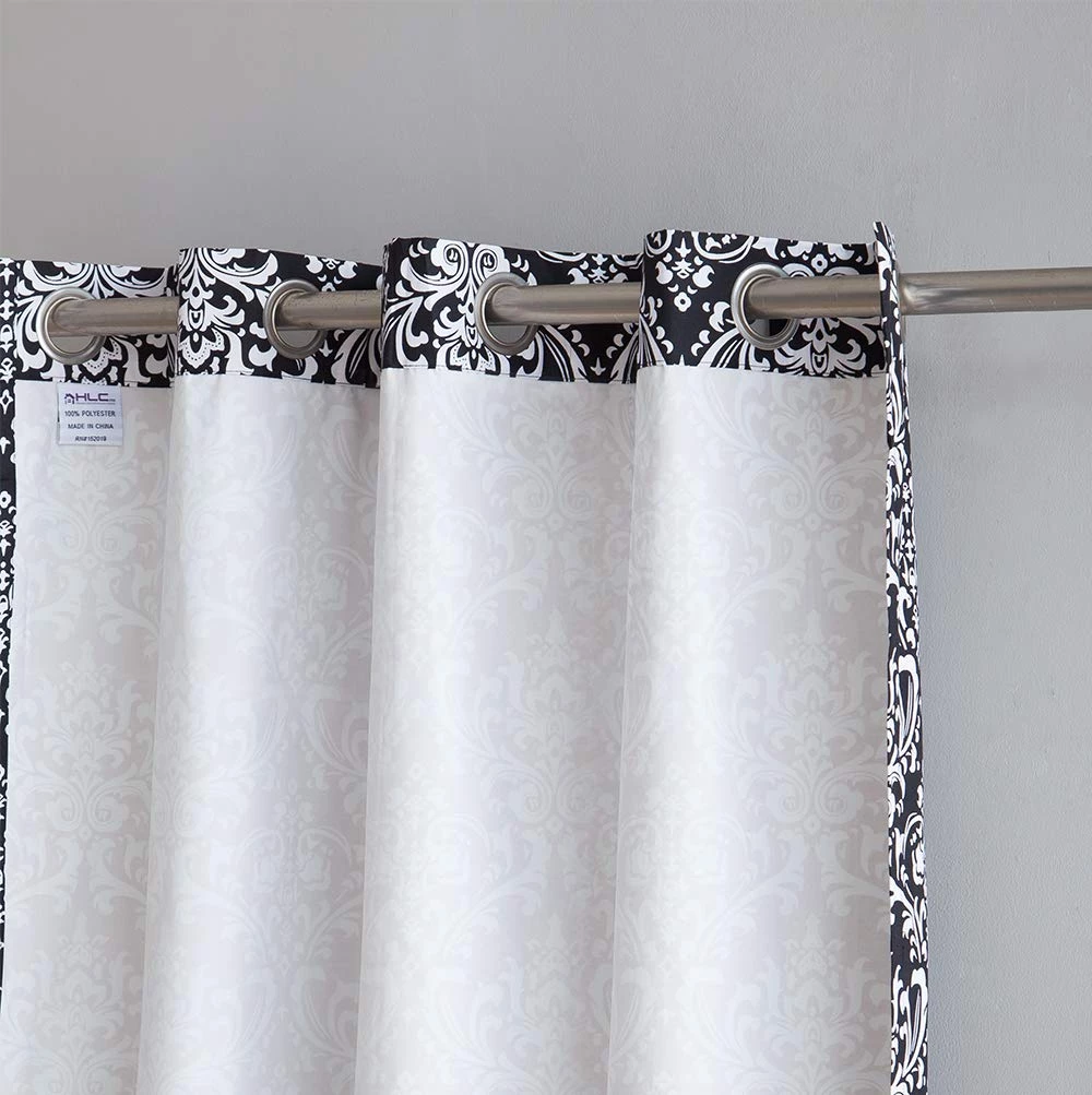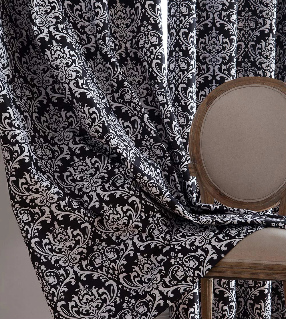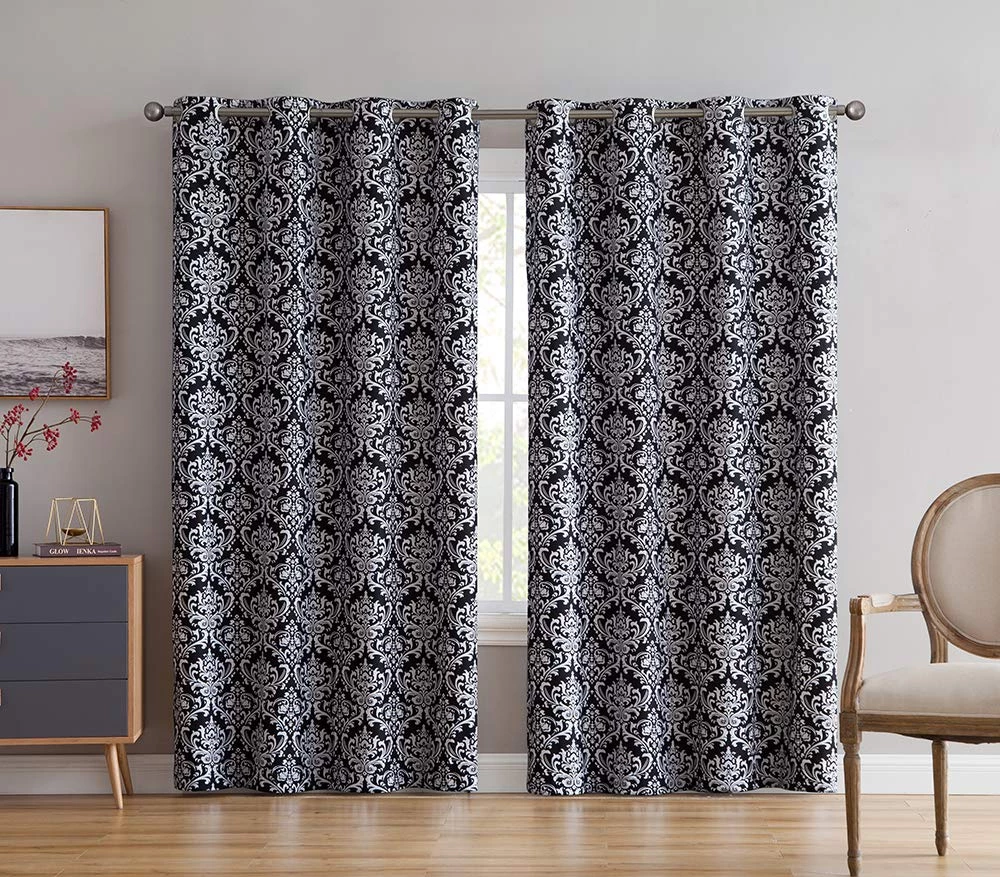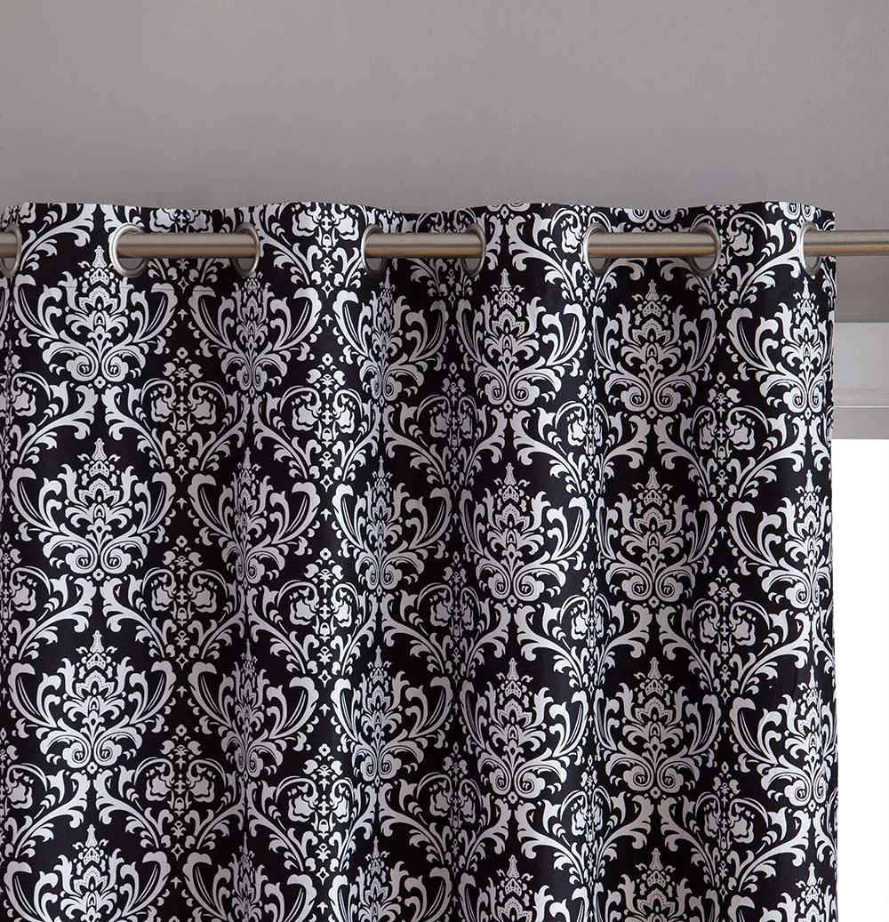 HLC.ME Damask Print 100% Blackout Grommet Curtain Panels – Black – Set Of 2