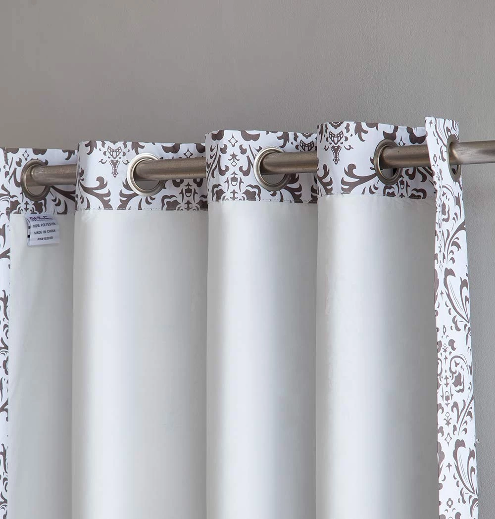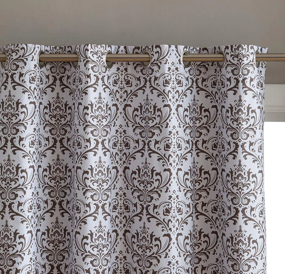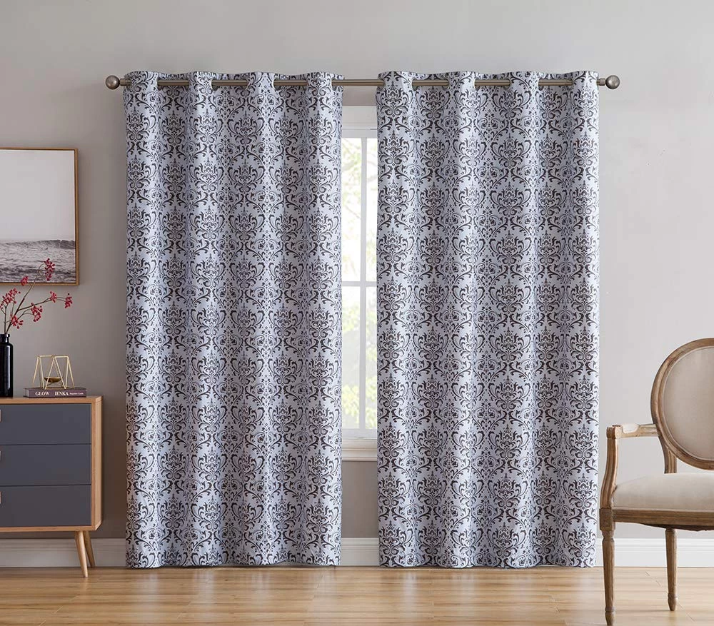 HLC.ME Damask Print 100% Blackout Grommet Curtain Panels – Platinum White & Grey – Set Of 2