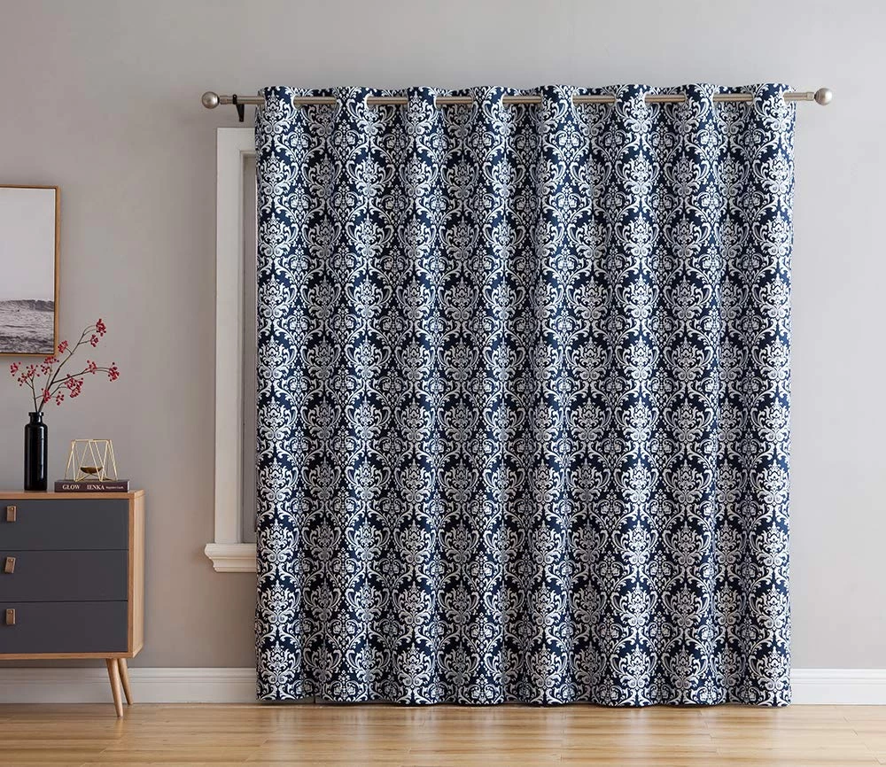 HLC.ME Damask Print 100% Blackout Grommet Patio Door Panel – Navy Blue