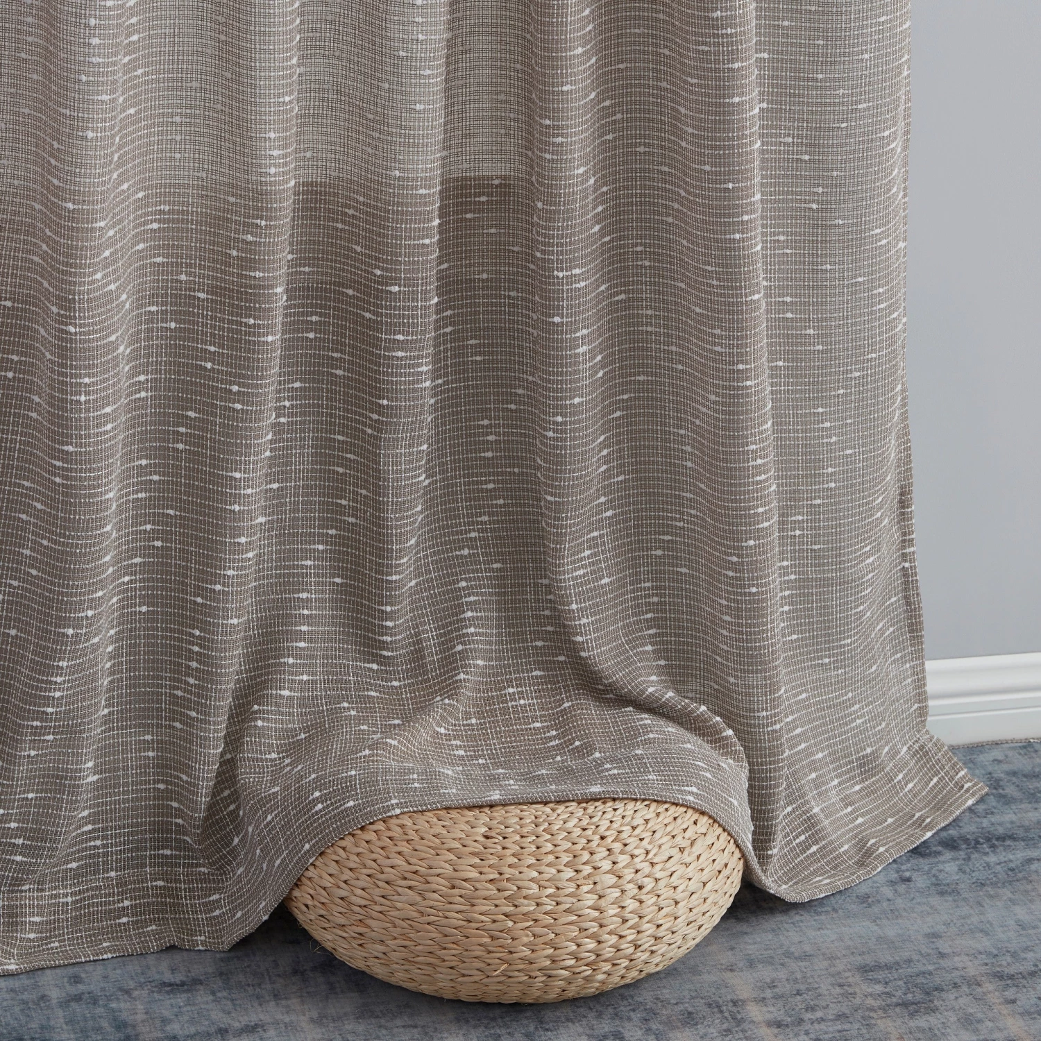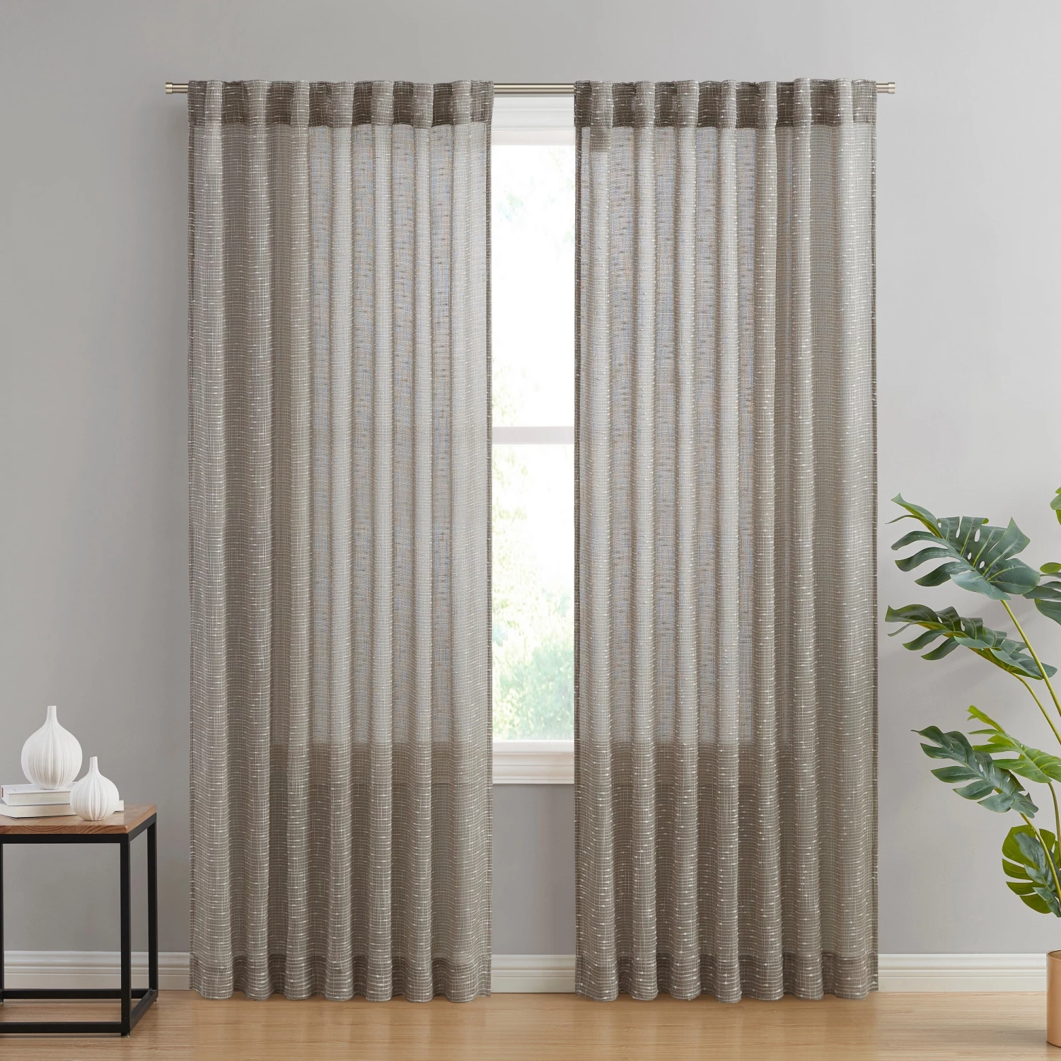 Sub look faux linen semi sheer curtains give a light, romantic and airy look to a room by allowing sunlight to pass through the curtains. The fabric of faux linen curtains makes a unique window treatment that allows you to see outside but still allowing for privacy. For most home owners this is a great feature of semi sheer curtains. Light weight faux linen curtains are a very effective decorating tool. Because of the lightness to the fabric allow light to enter the room while still providing privacy. They can be used for in many other ways as well. One of the great qualities to faux linen sheer curtains is that they come in a wide variety of colors and are generally inexpensive. This allows your to use them in every room of the house without breaking your budget. These curtains are very easy to install and make them a great addition to any room as you can create a designer look with little effort. Each curtain panel can fit a curtain rod up to 2 inch. Fiber Content: 100% Polyester. Package contains two (2) faux linen sheer window curtain panels. Care Instructions: Machine wash cold, Gentle Cycle. Use only non-chlorine. Bleach as needed. Tumble Dry Low. Iron on lowest setting as needed.