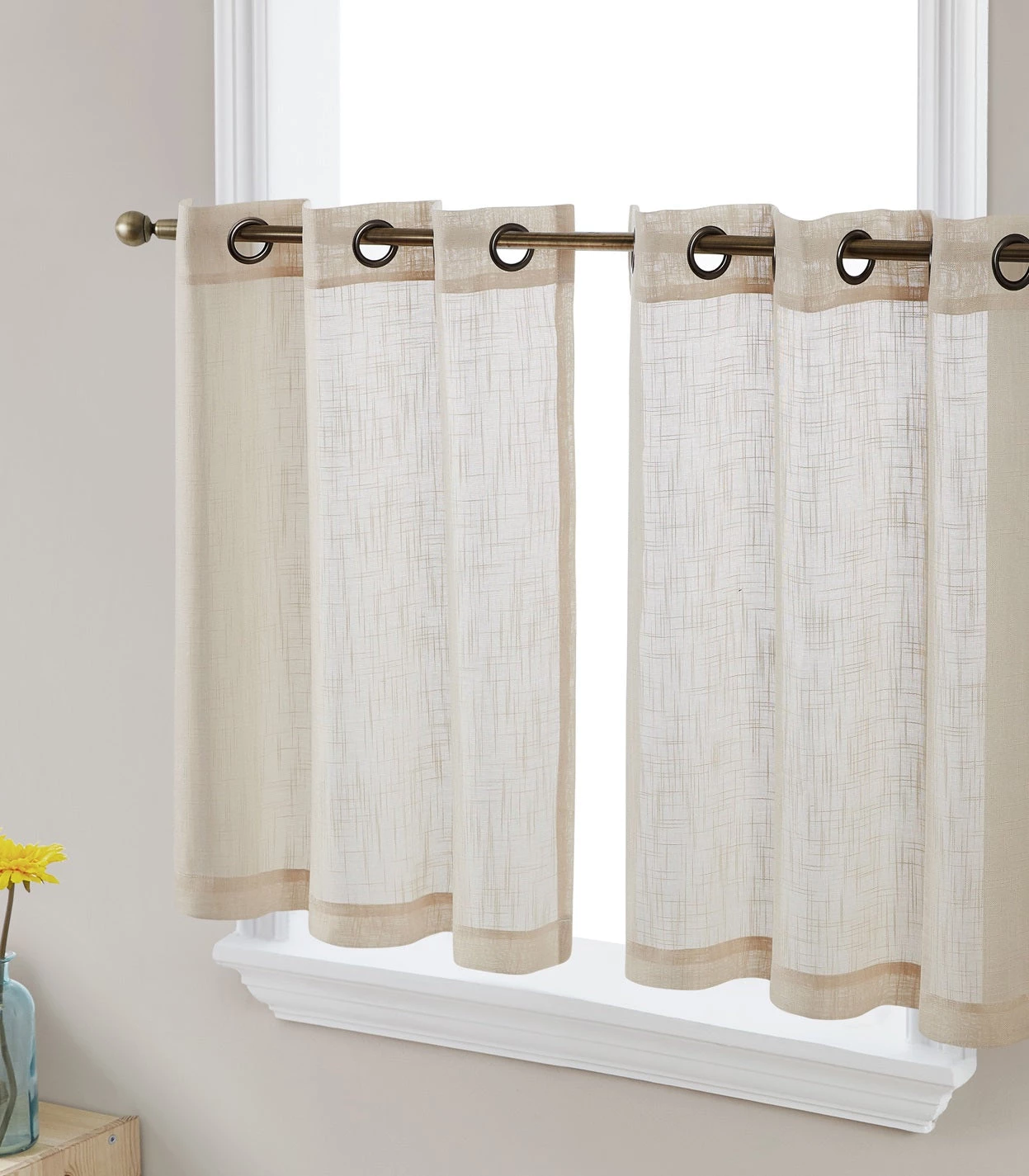 HLC.ME Faux Linen Curtains Abbey Faux Linen Grommet Cafe Tiers – Beige – Set Of 2