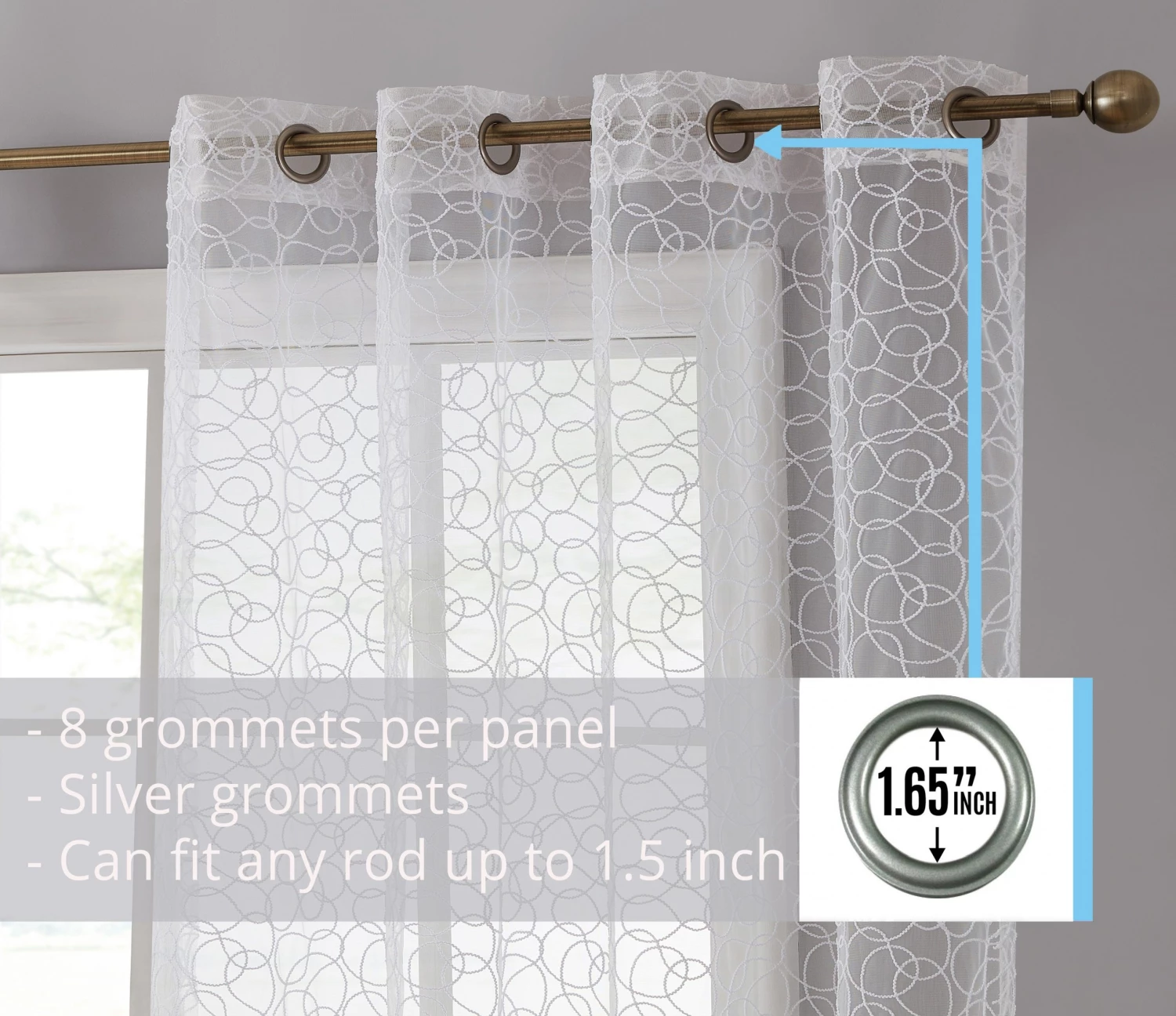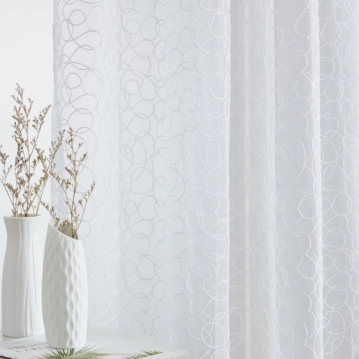 HLC.ME Faux Linen Curtains Audrey Embroidered Grommet Curtain Panels – Off White – Set Of 2