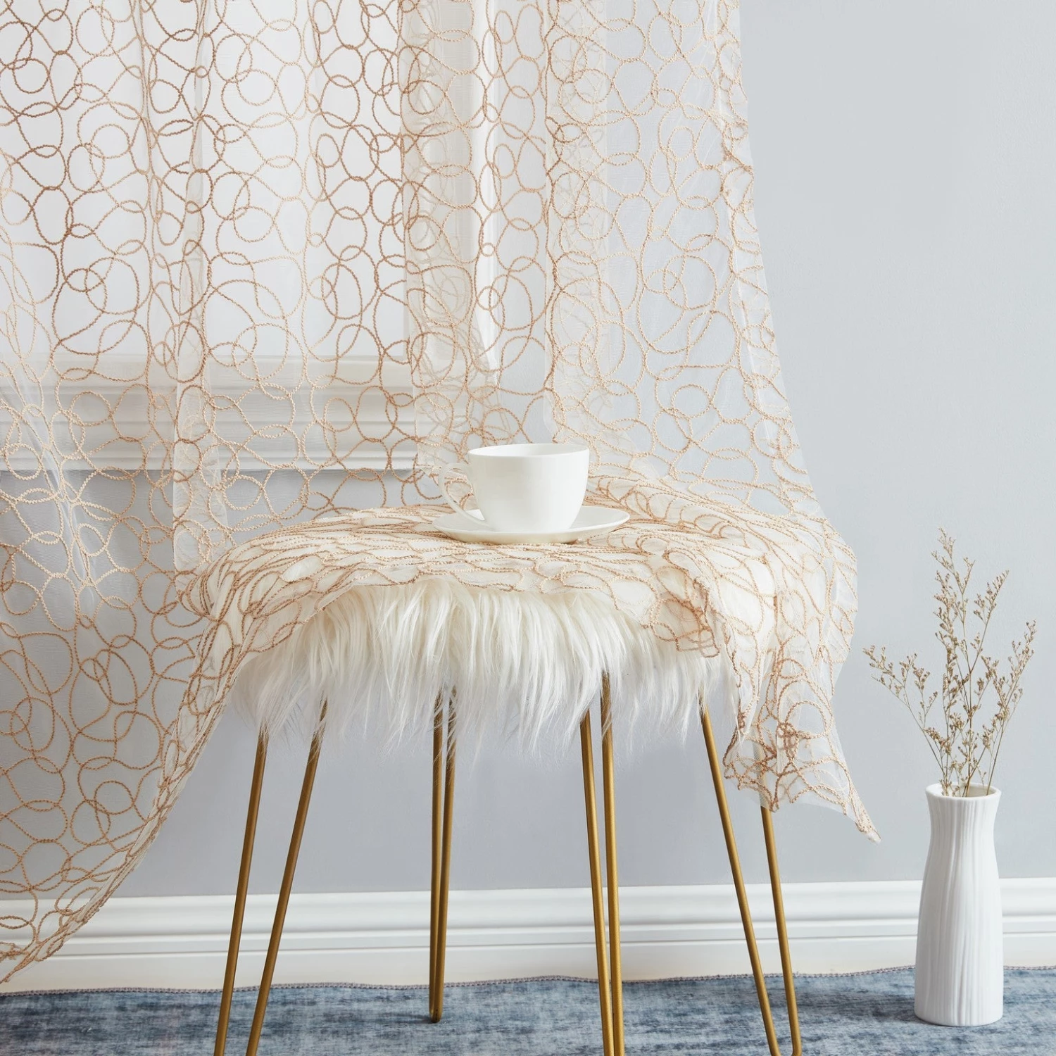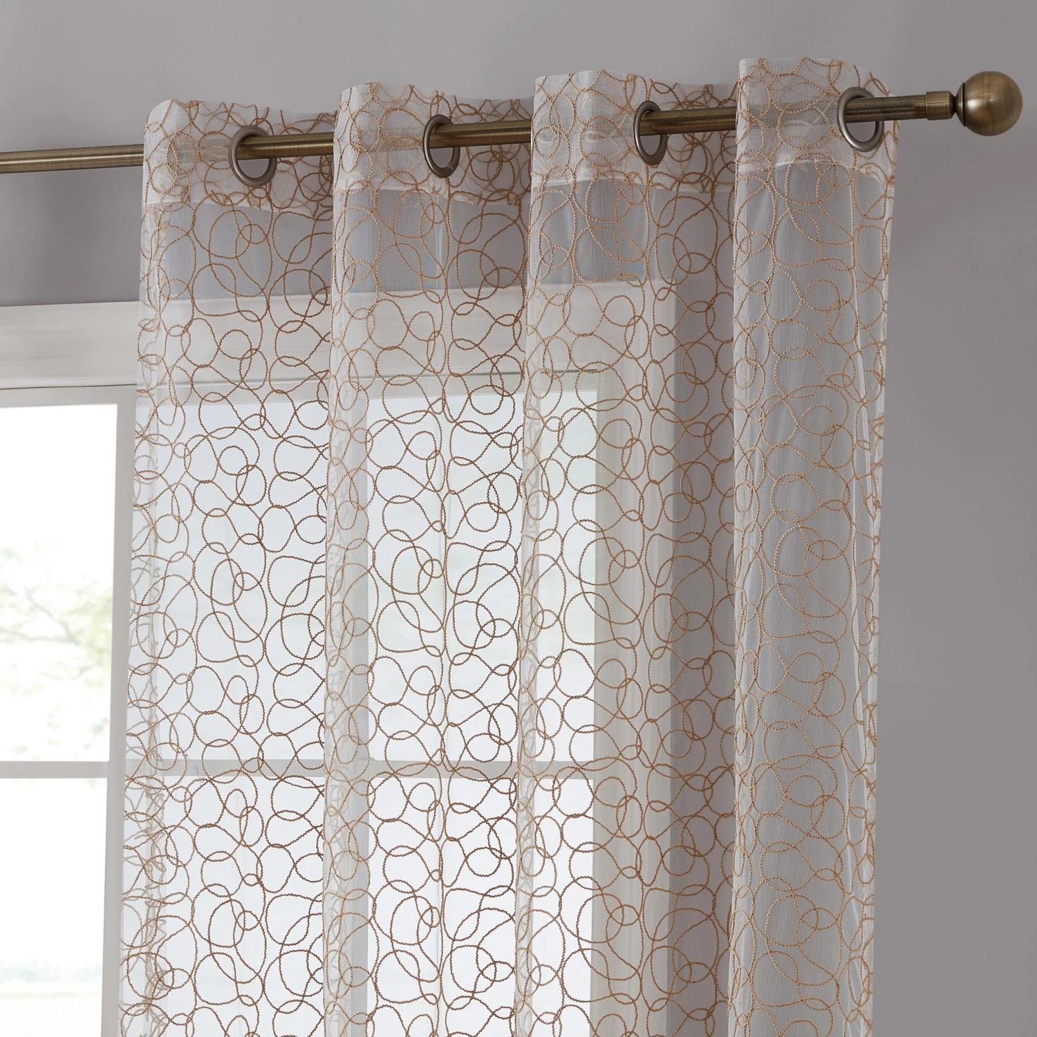 HLC.ME Faux Linen Curtains Audrey Embroidered Grommet Curtain Panels – Taupe – Set Of 2