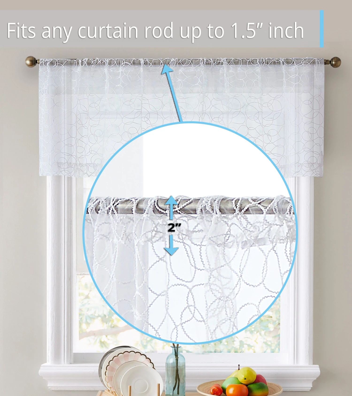 HLC.ME Faux Linen Curtains Audrey Embroidered Rod Pocket Curtain Valance – Off White