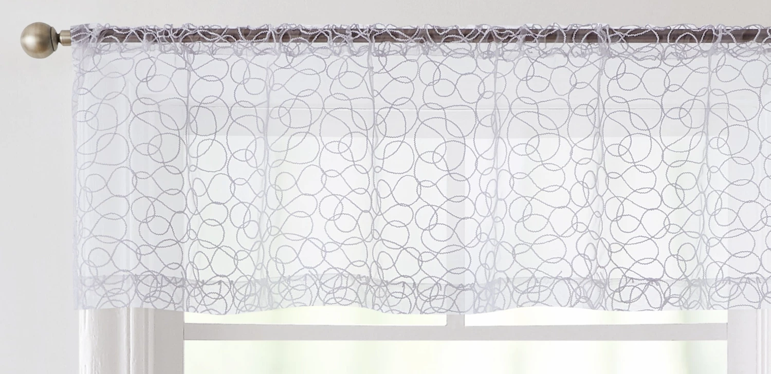 HLC.ME Faux Linen Curtains Audrey Embroidered Rod Pocket Curtain Valance – White