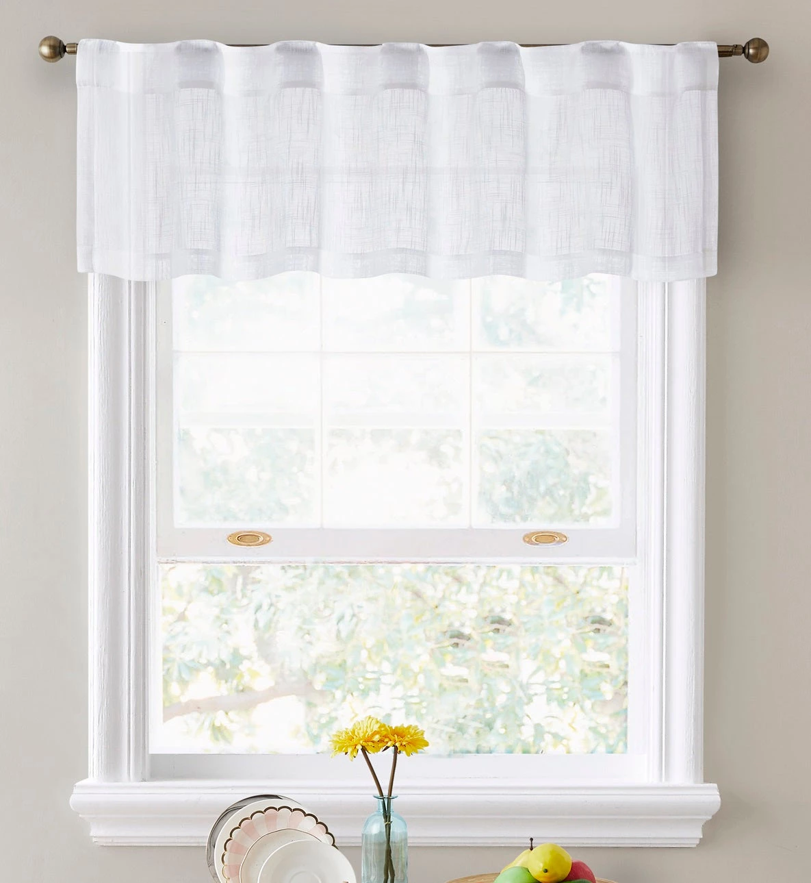 HLC.ME Faux Linen Curtains Brenda Faux Linen Sheer Rod Pocket / Back Tab Valance