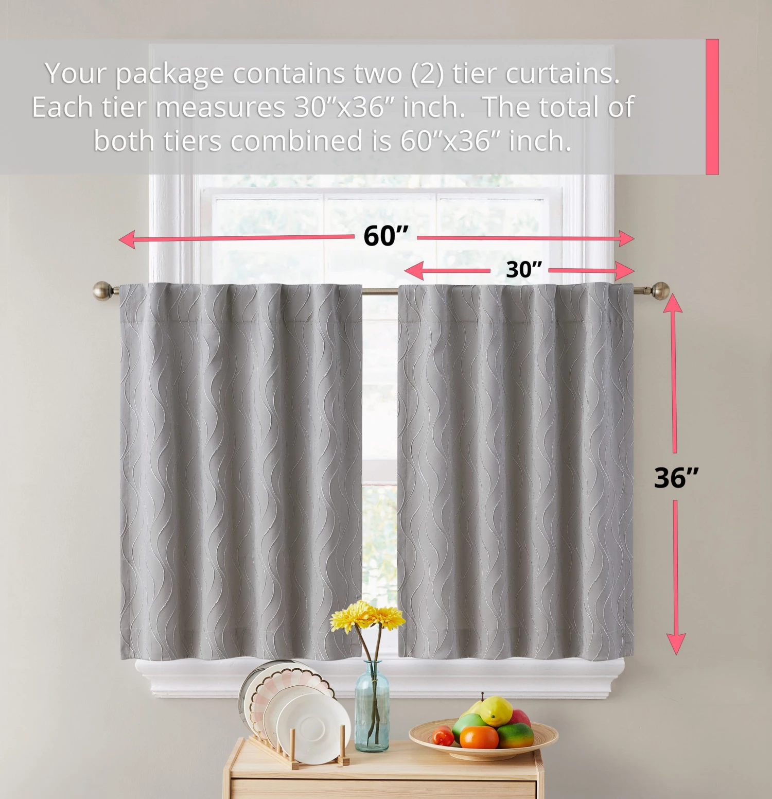 - Each package contains (2) two blackout back tab rod pocket tiers