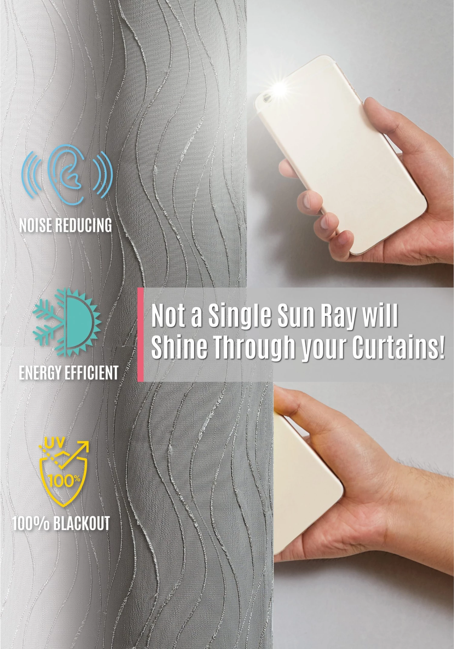 HLC.ME Faux Linen Curtains Camden Jacquard 100% Blackout Grommet Patio Door Panel – Charcoal Grey