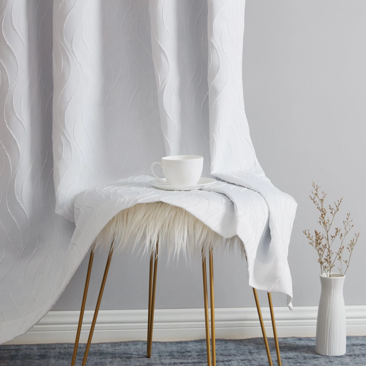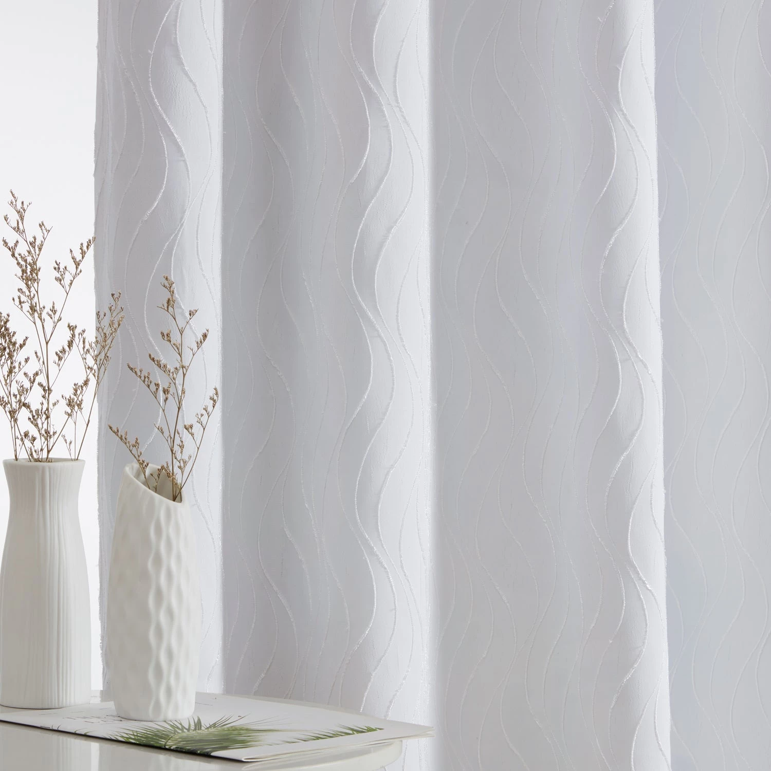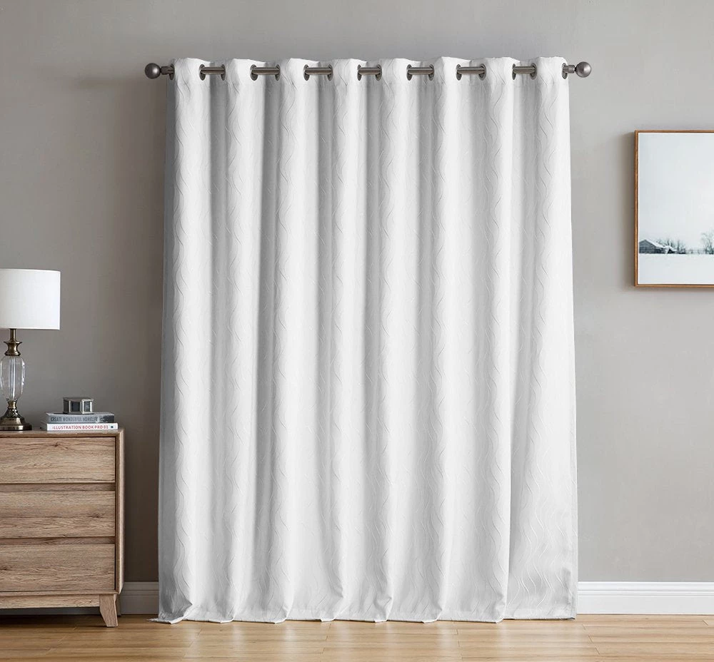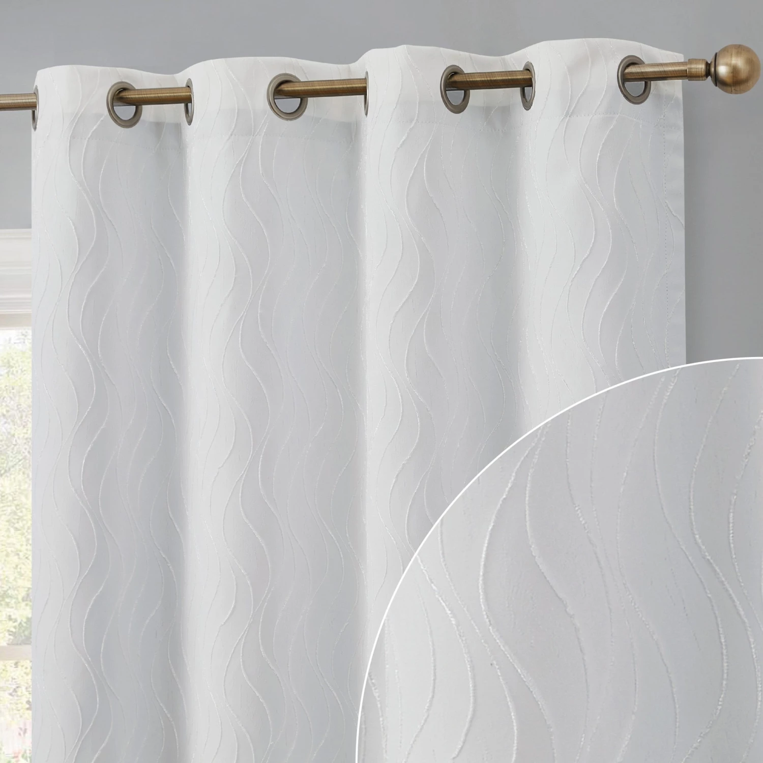 HLC.ME Faux Linen Curtains Camden Jacquard 100% Blackout Grommet Patio Door Panel – White
