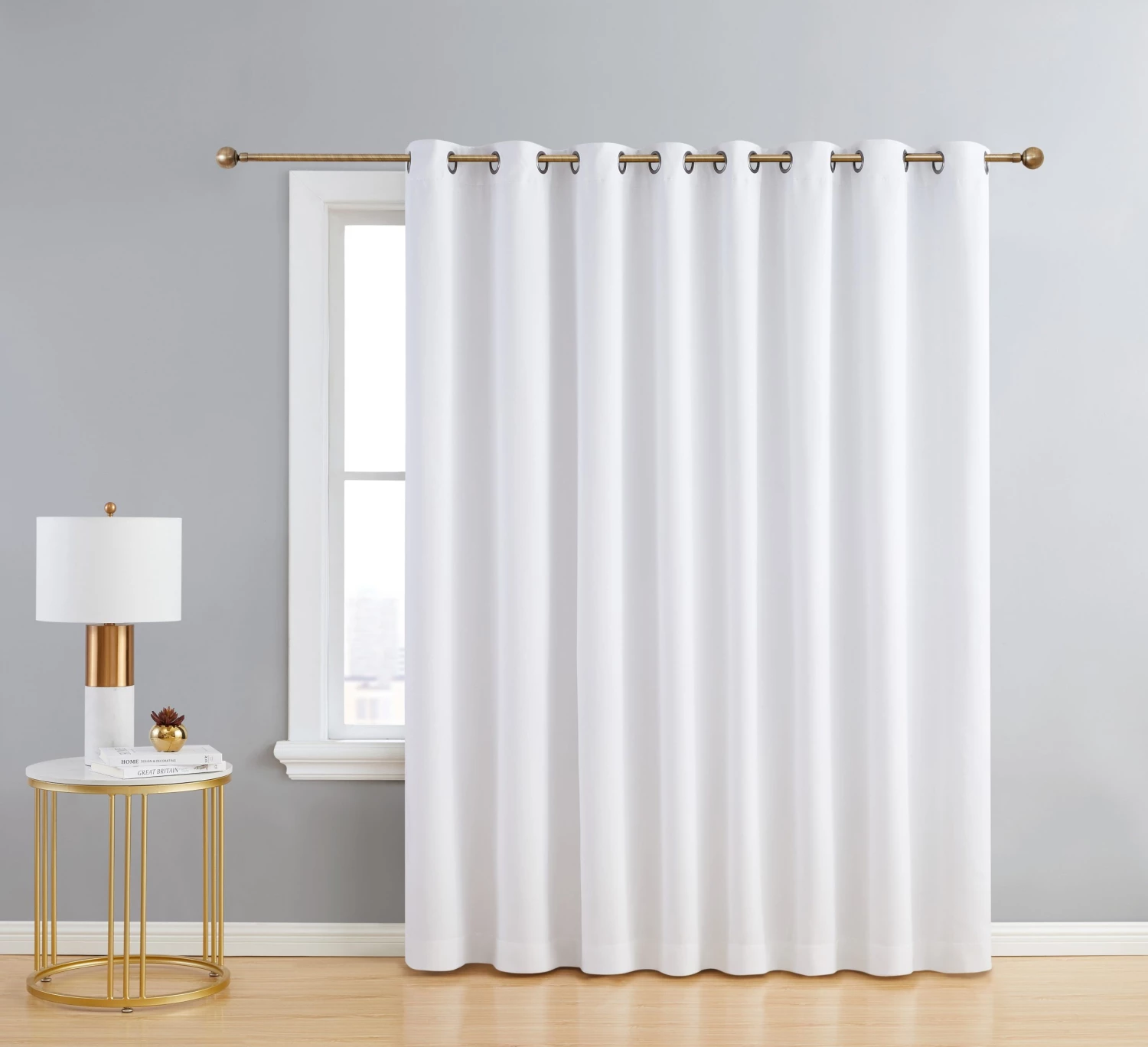 HLC.ME Faux Linen Curtains Dakota 100% Blackout Grommet Patio Door Panel – White