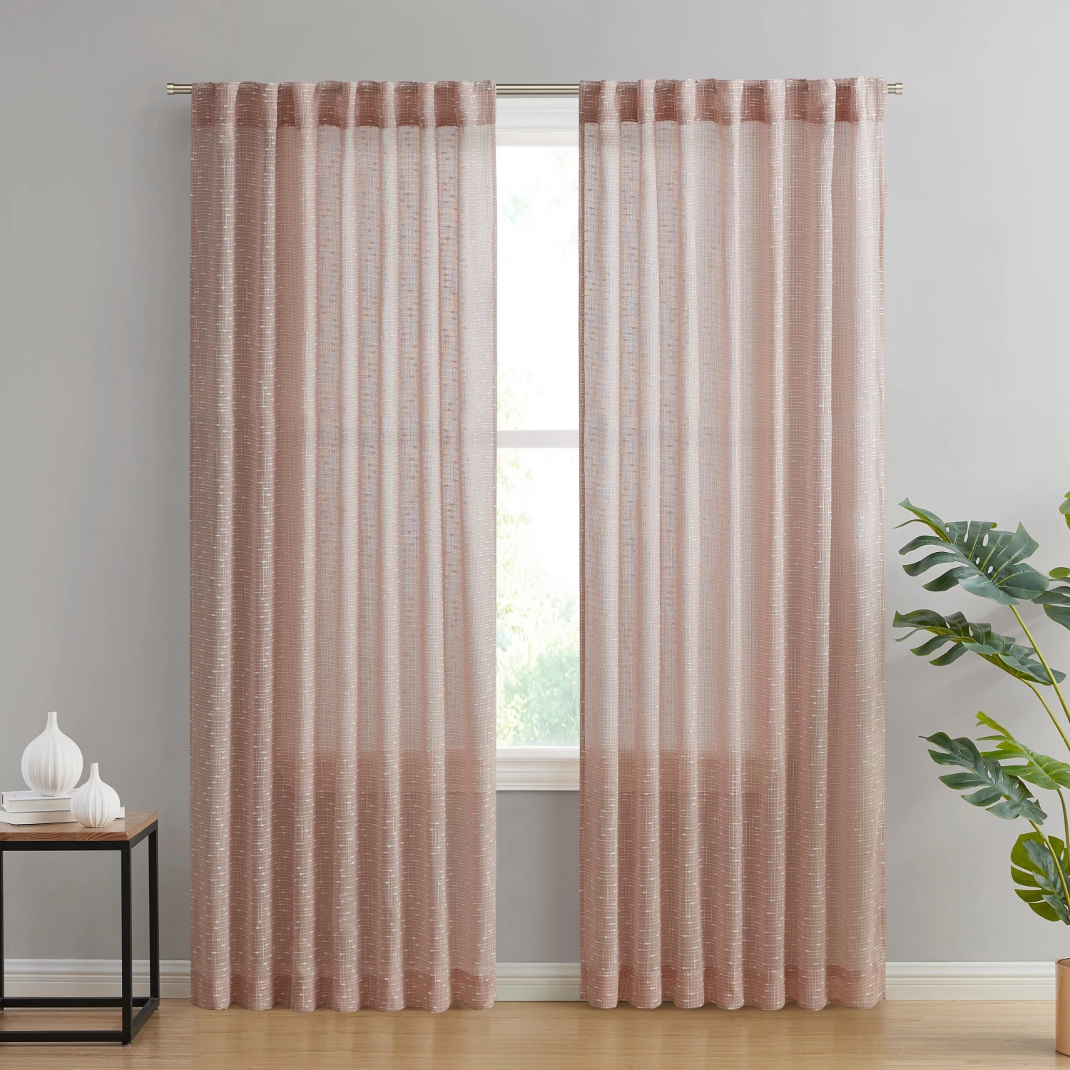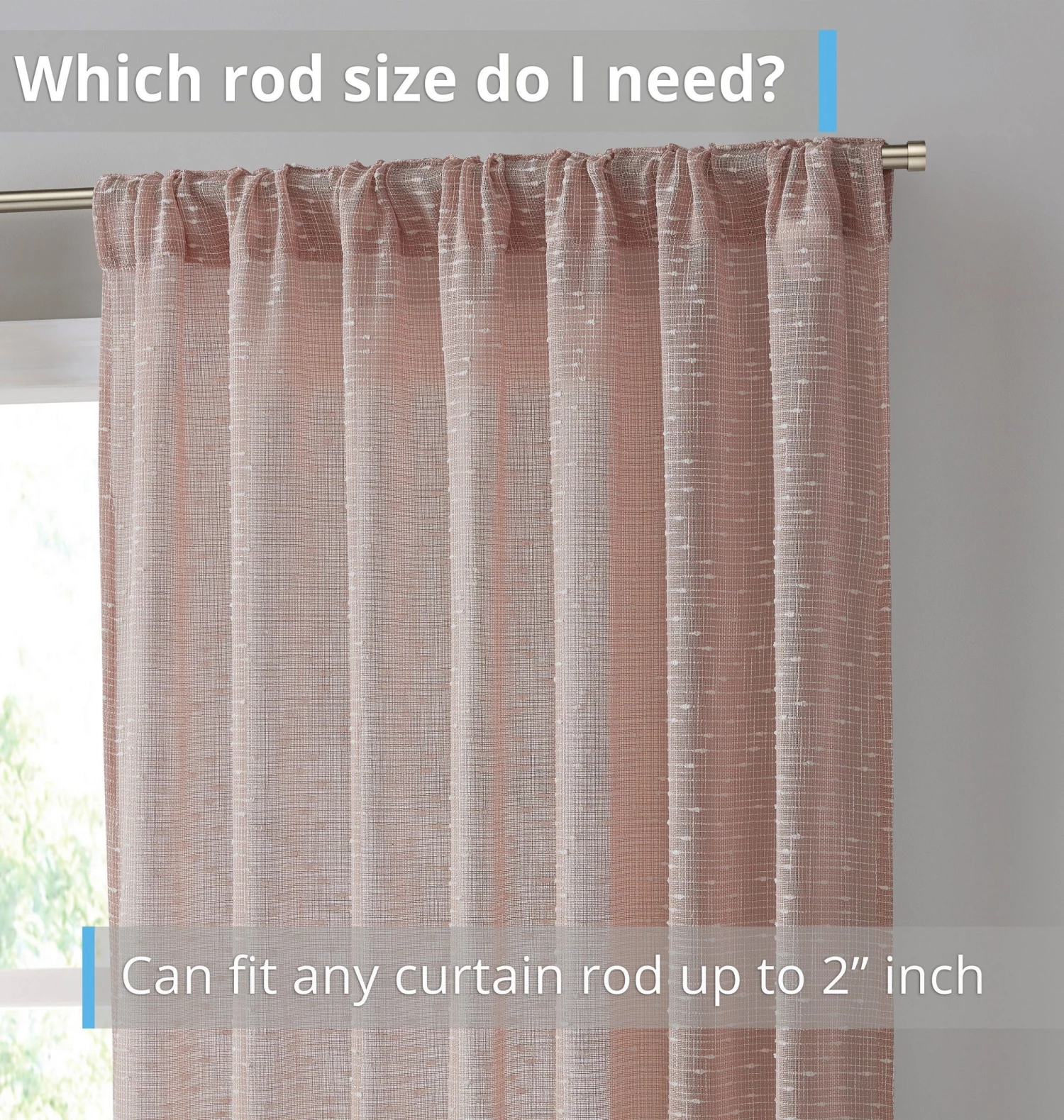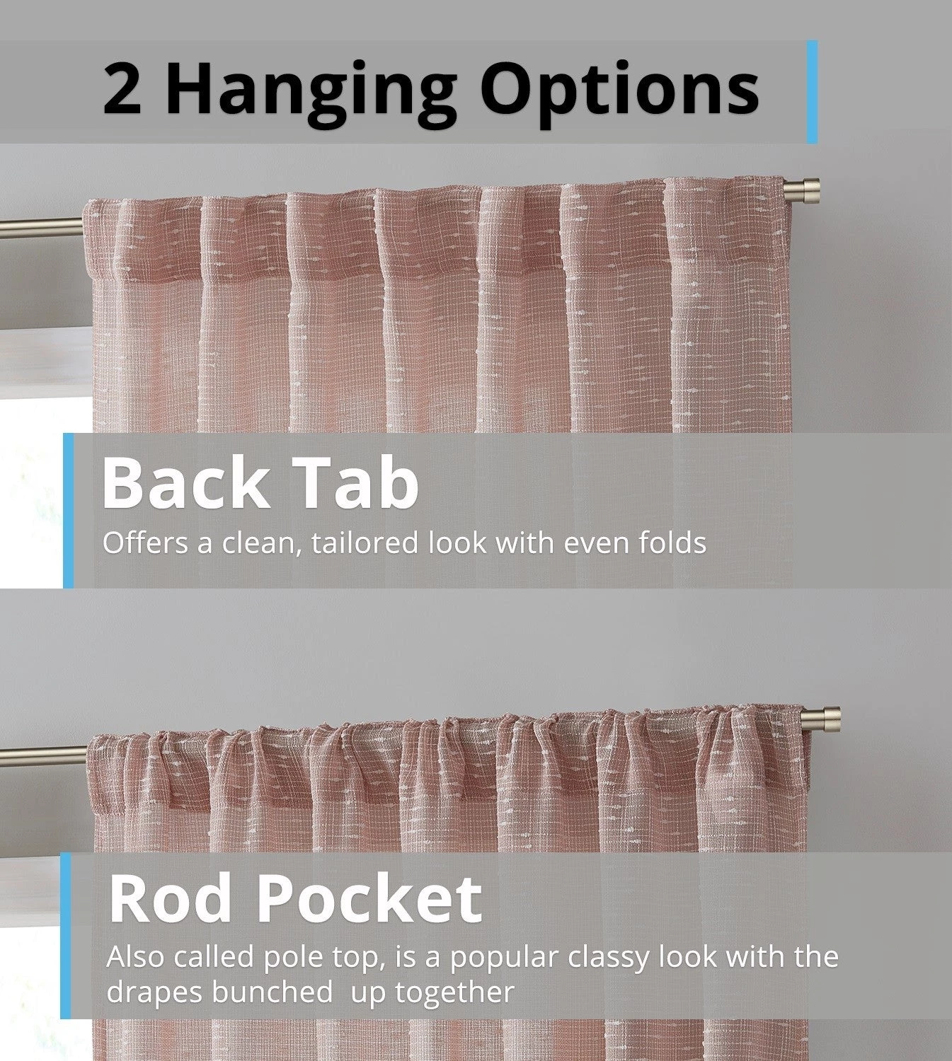 Sub look faux linen semi sheer curtains give a light, romantic and airy look to a room by allowing sunlight to pass through the curtains. The fabric of faux linen curtains makes a unique window treatment that allows you to see outside but still allowing for privacy. For most home owners this is a great feature of semi sheer curtains. Light weight faux linen curtains are a very effective decorating tool. Because of the lightness to the fabric allow light to enter the room while still providing privacy. They can be used for in many other ways as well. One of the great qualities to faux linen sheer curtains is that they come in a wide variety of colors and are generally inexpensive. This allows your to use them in every room of the house without breaking your budget. These curtains are very easy to install and make them a great addition to any room as you can create a designer look with little effort. Each curtain panel can fit a curtain rod up to 2 inch. Fiber Content: 100% Polyester. Package contains two (2) faux linen sheer window curtain panels. Care Instructions: Machine wash cold, Gentle Cycle. Use only non-chlorine. Bleach as needed. Tumble Dry Low. Iron on lowest setting as needed.