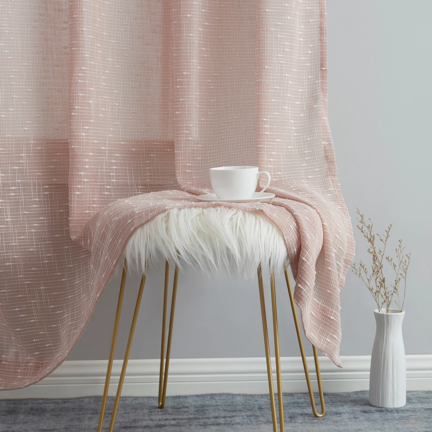 HLC.ME Faux Linen Curtains Emily Faux Linen Grommet Curtain Panels – Blush Pink – Set Of 2