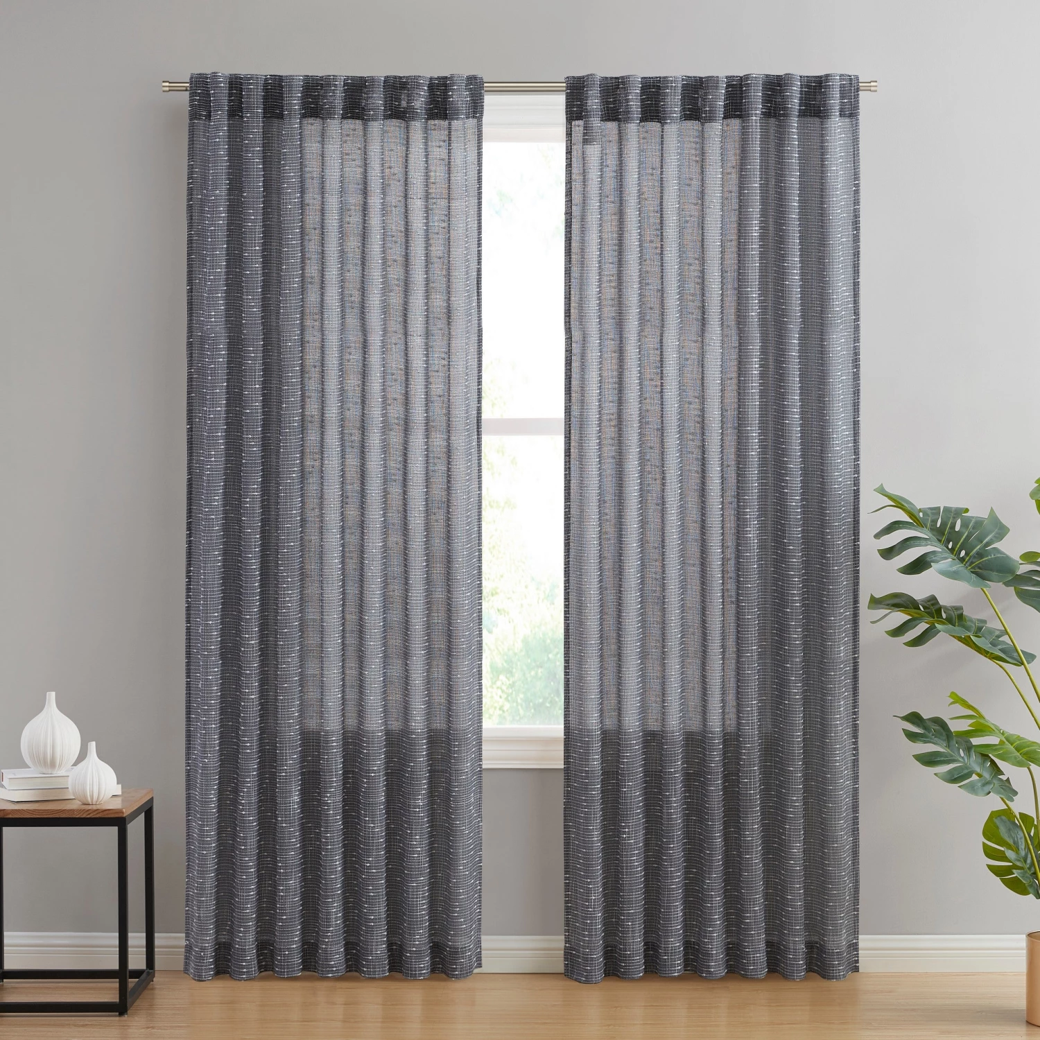Sub look faux linen semi sheer curtains give a light, romantic and airy look to a room by allowing sunlight to pass through the curtains. The fabric of faux linen curtains makes a unique window treatment that allows you to see outside but still allowing for privacy. For most home owners this is a great feature of semi sheer curtains. Light weight faux linen curtains are a very effective decorating tool. Because of the lightness to the fabric allow light to enter the room while still providing privacy. They can be used for in many other ways as well. One of the great qualities to faux linen sheer curtains is that they come in a wide variety of colors and are generally inexpensive. This allows your to use them in every room of the house without breaking your budget. These curtains are very easy to install and make them a great addition to any room as you can create a designer look with little effort. Each curtain panel can fit a curtain rod up to 2 inch. Fiber Content: 100% Polyester. Package contains two (2) faux linen sheer window curtain panels. Care Instructions: Machine wash cold, Gentle Cycle. Use only non-chlorine. Bleach as needed. Tumble Dry Low. Iron on lowest setting as needed.