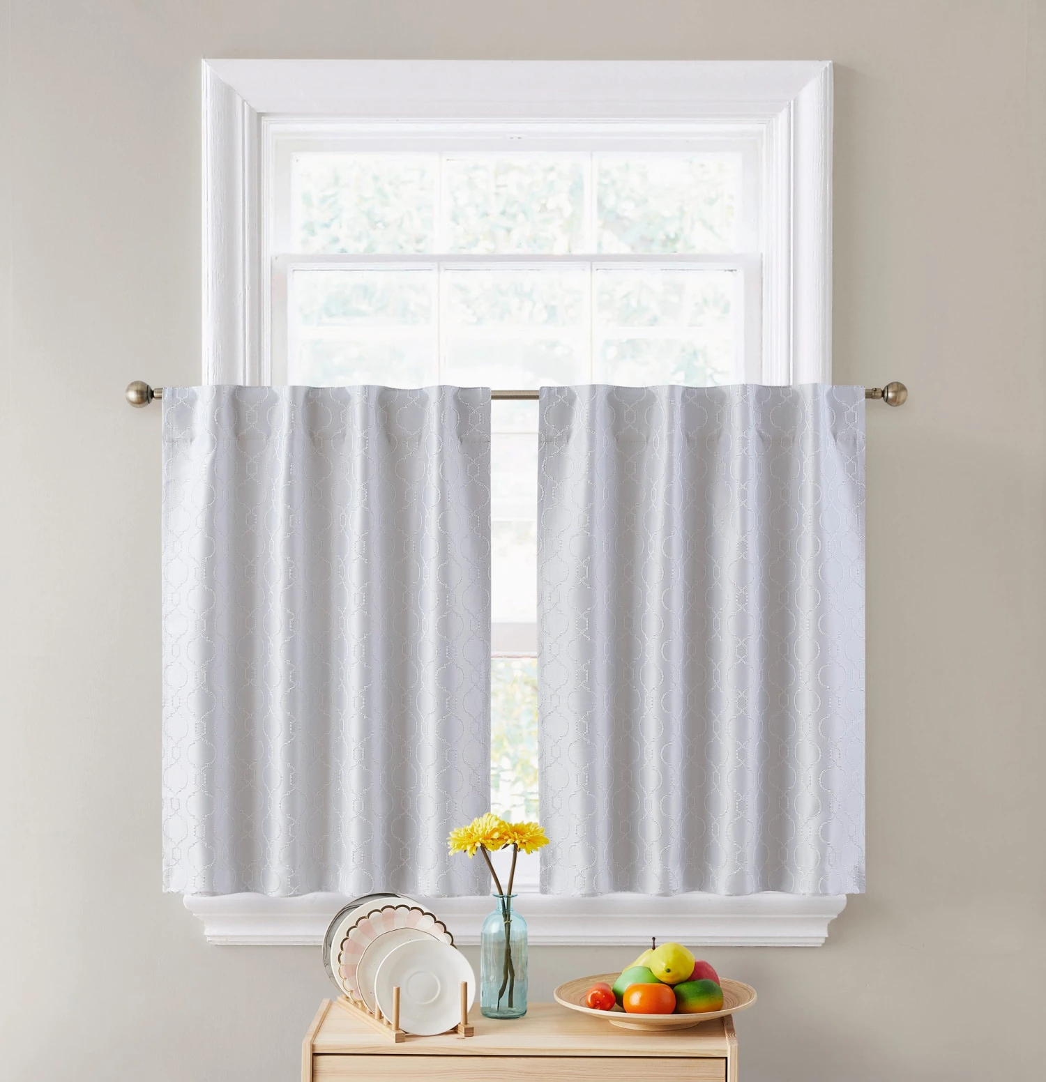 These moroccan geometric blackout tiers are manufactured as a thermal bond technology. A thermal bond technology is a 4 layers bonded and tightly sewn together with black yawns to insulate the heat and cold from entering and to achieve its blackout capabilities. The blackout curtain tiers blocks out 100% of light for a great night sleep. A great add to a living room, bedroom, childs room, playroom and workplace.